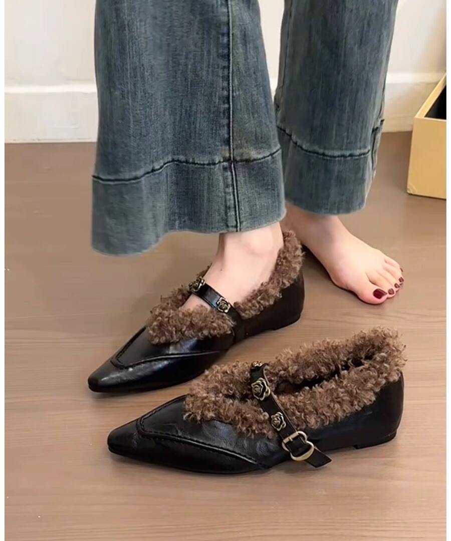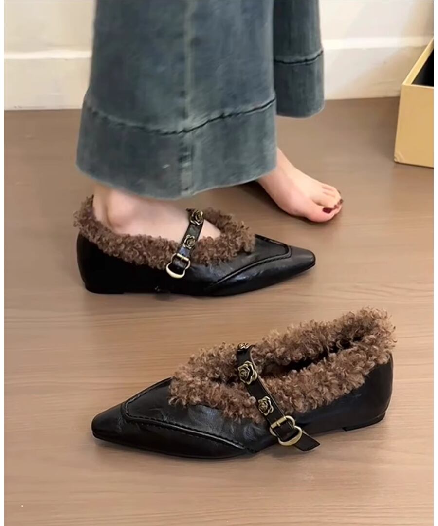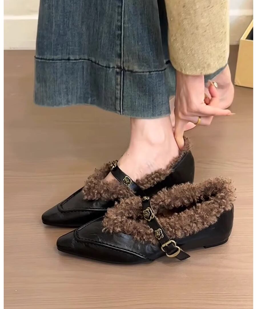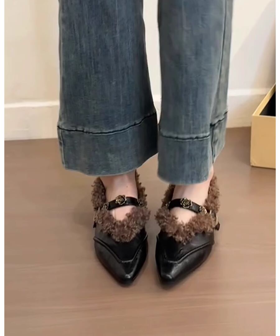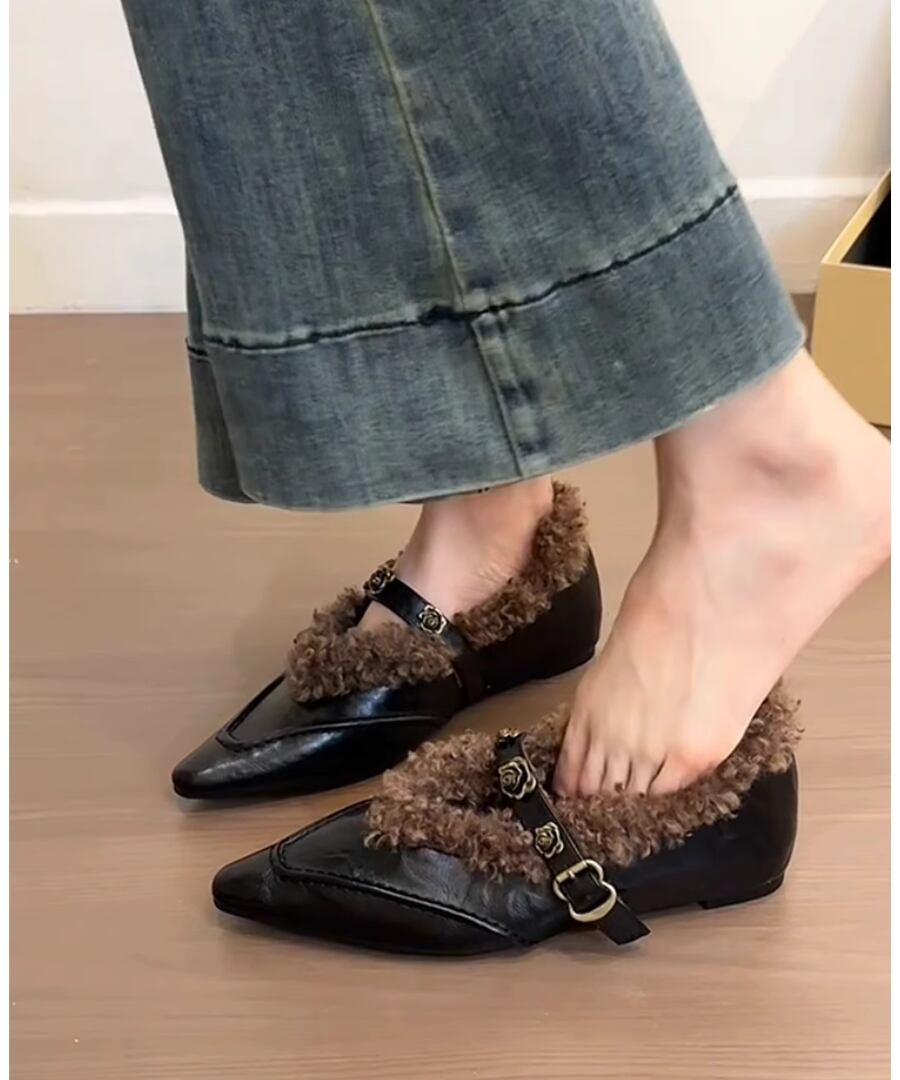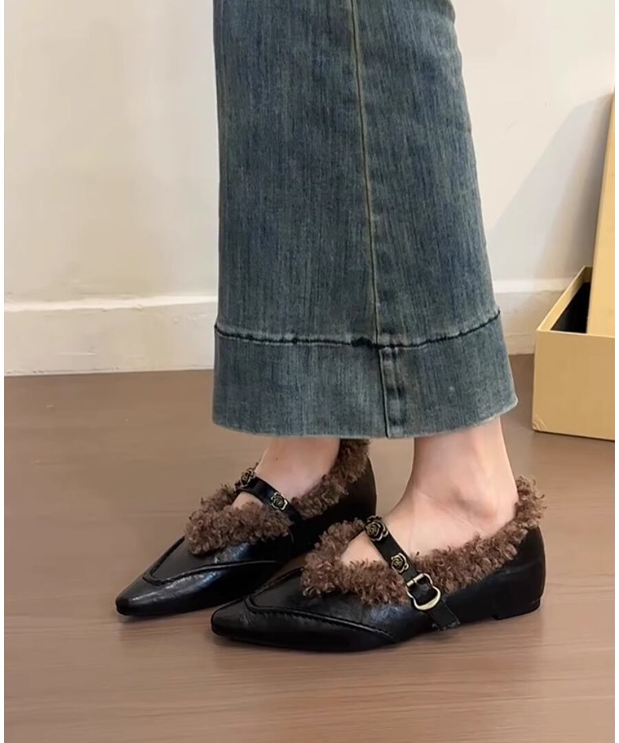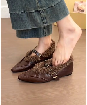 ポインテッドトゥ◆ラムウールレザーパンプス【e-70905】