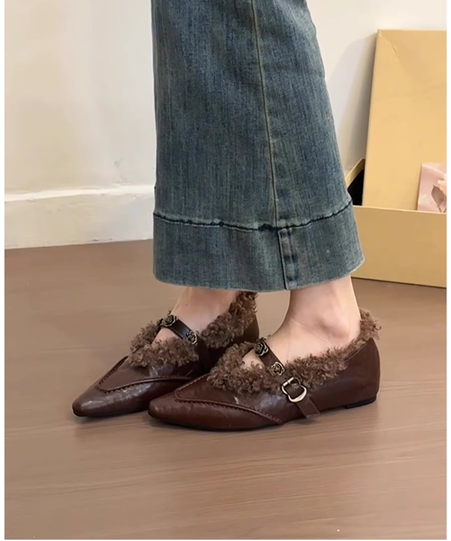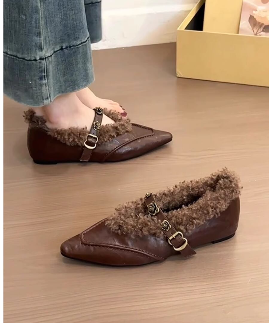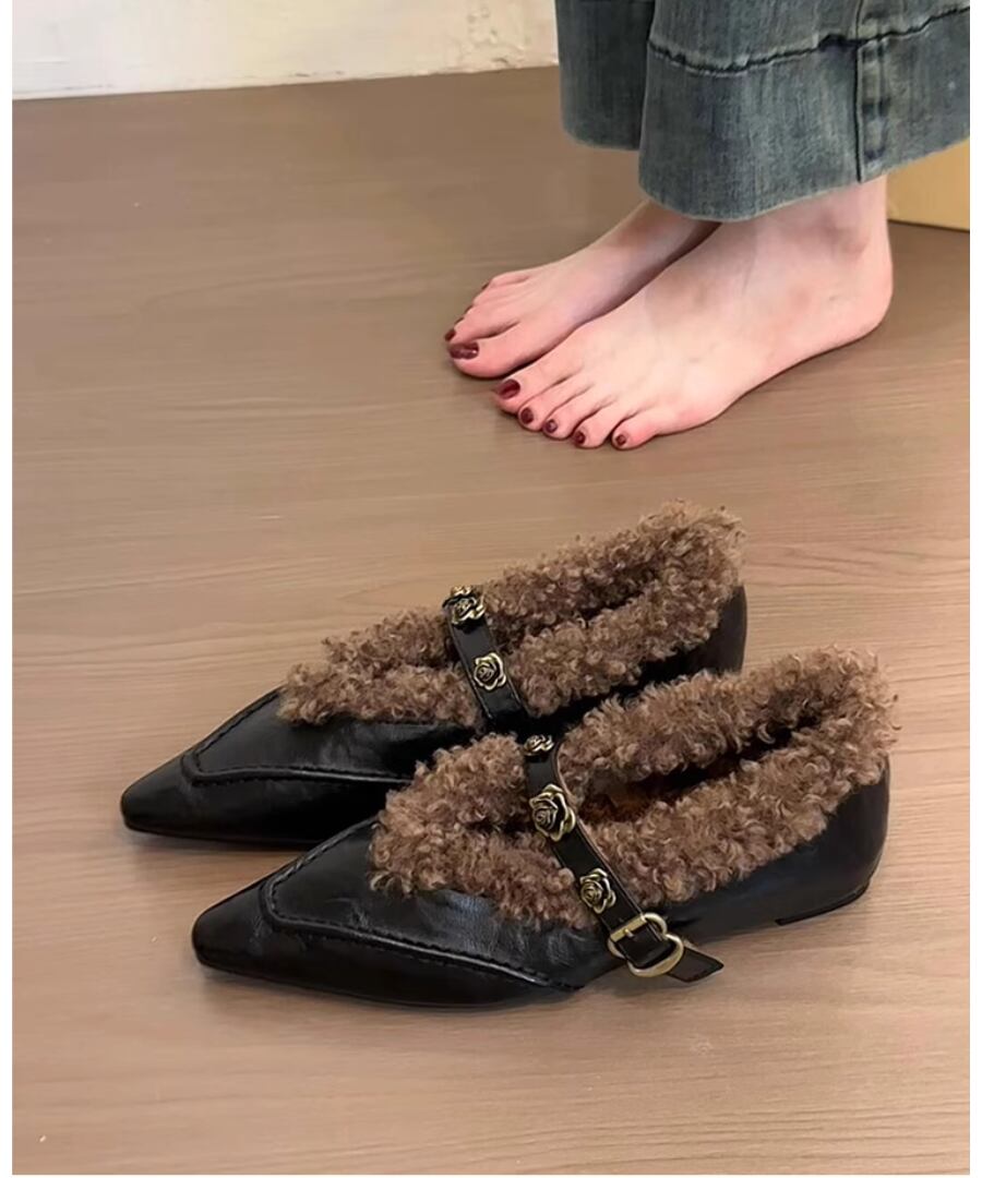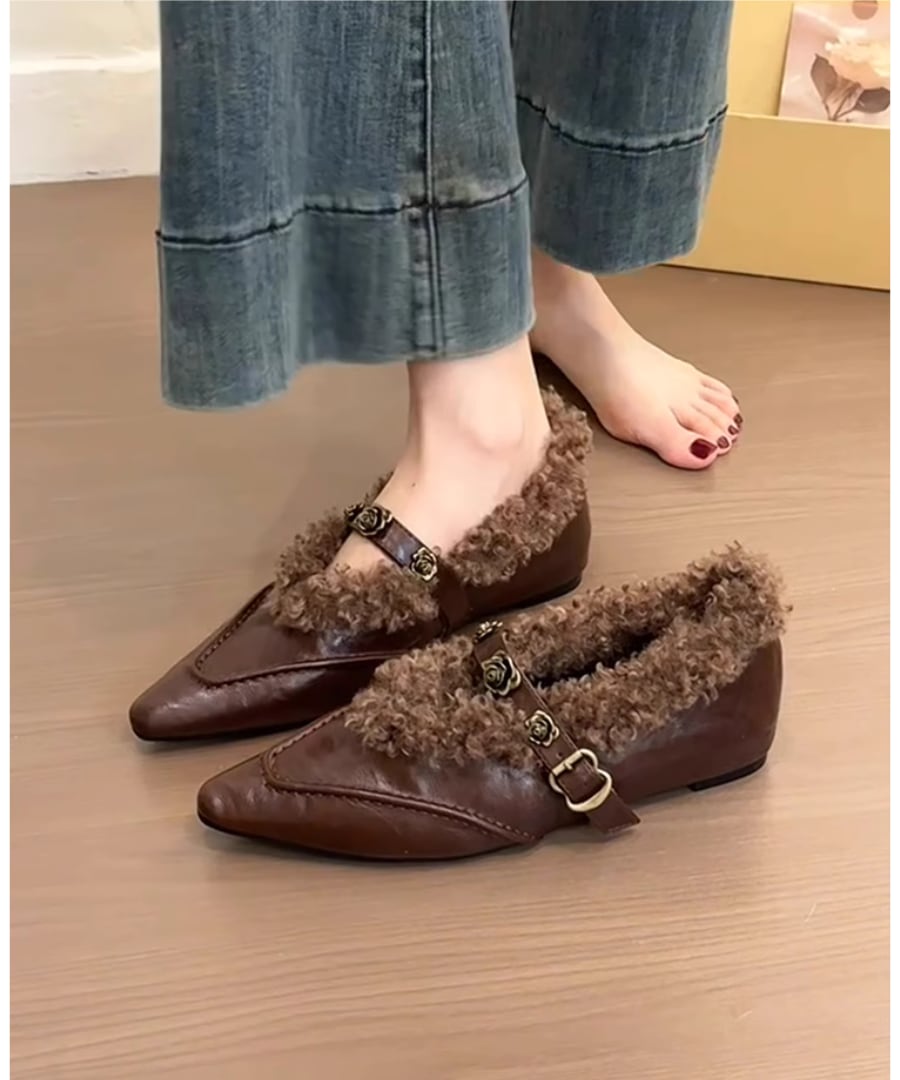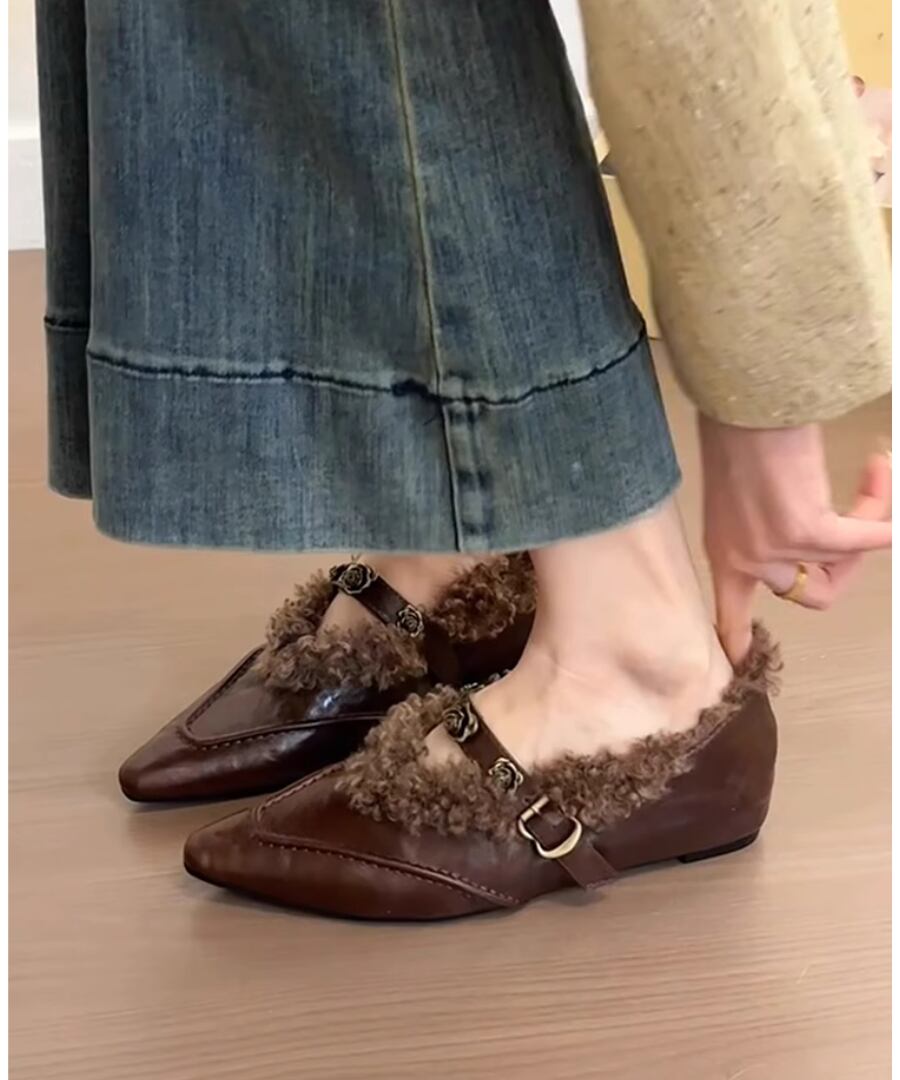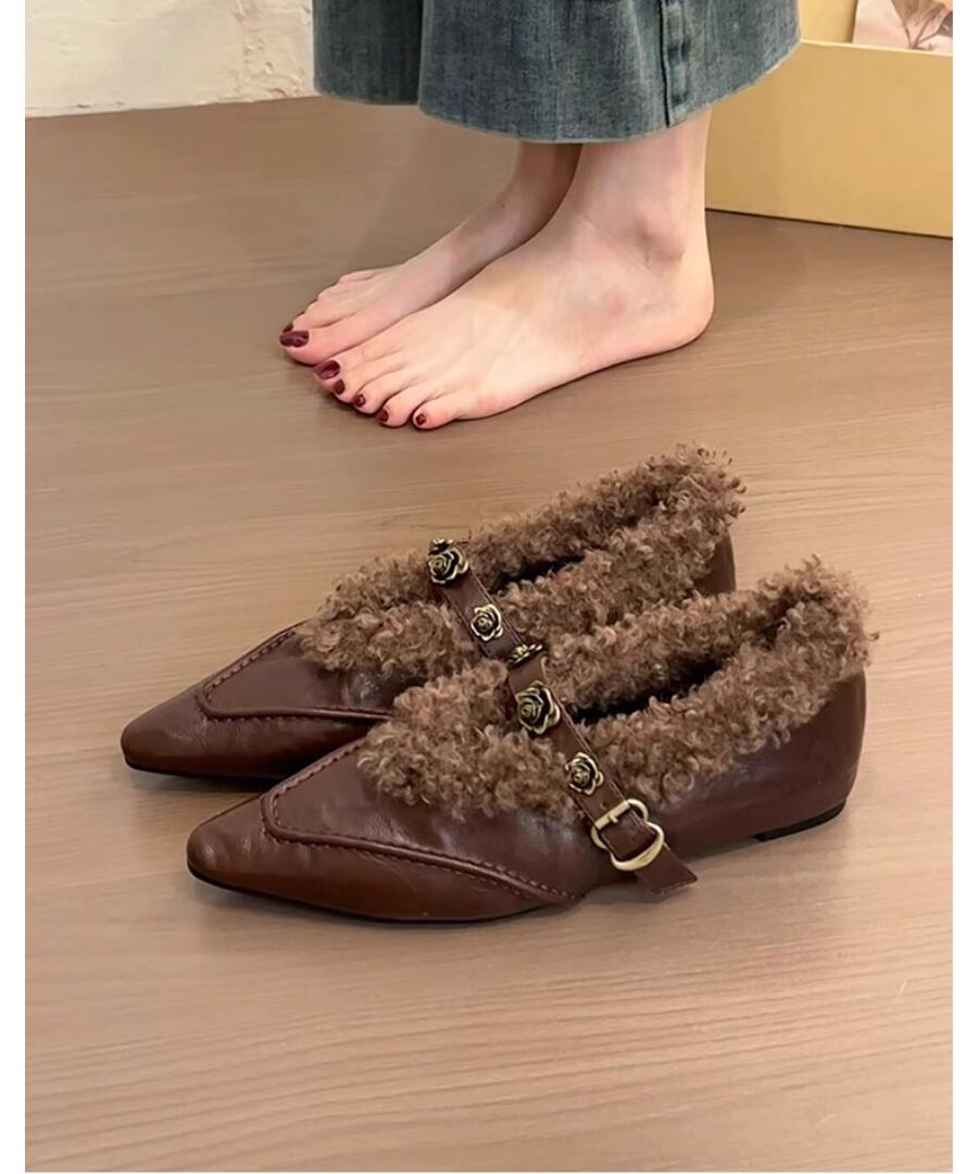 ポインテッドトゥ◆ラムウールレザーパンプス【e-70905】