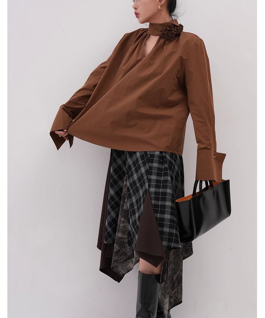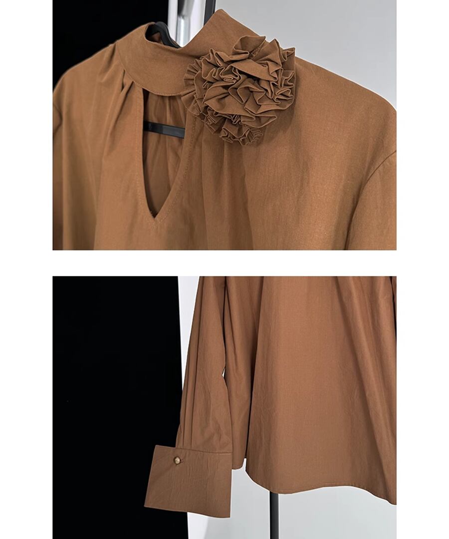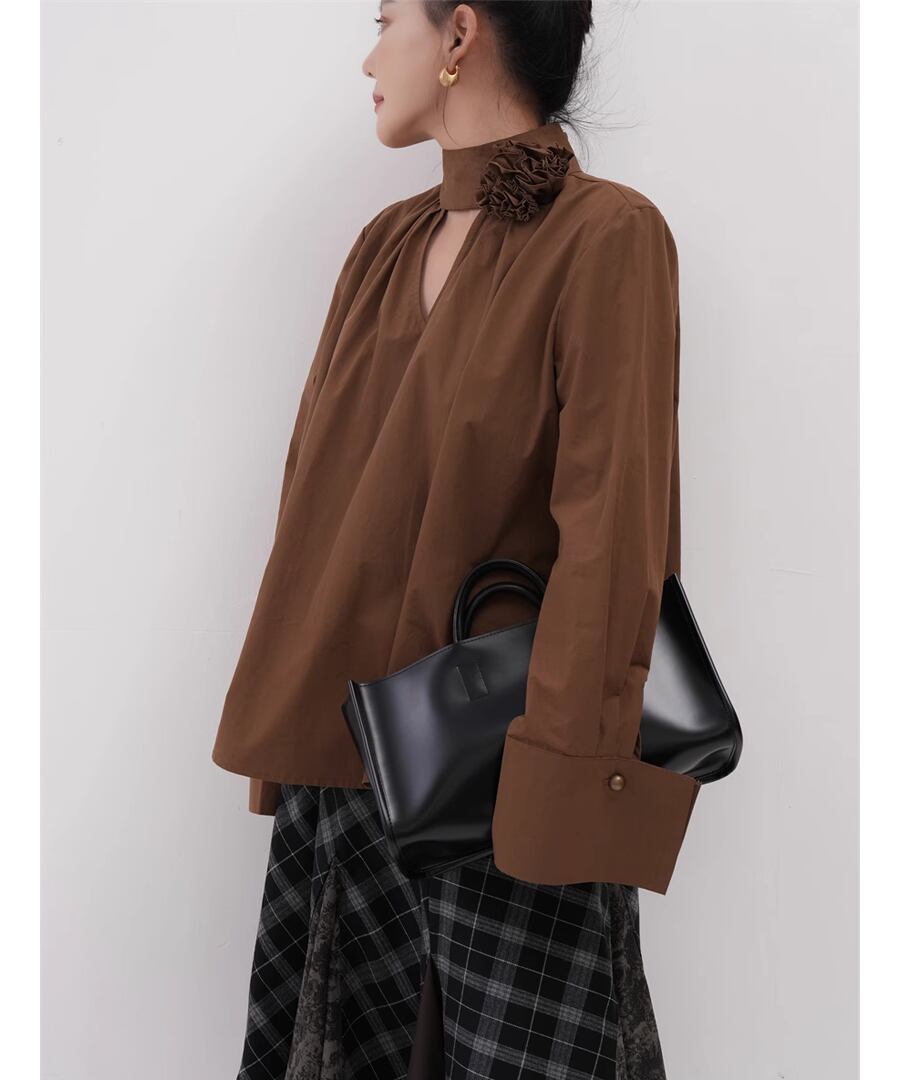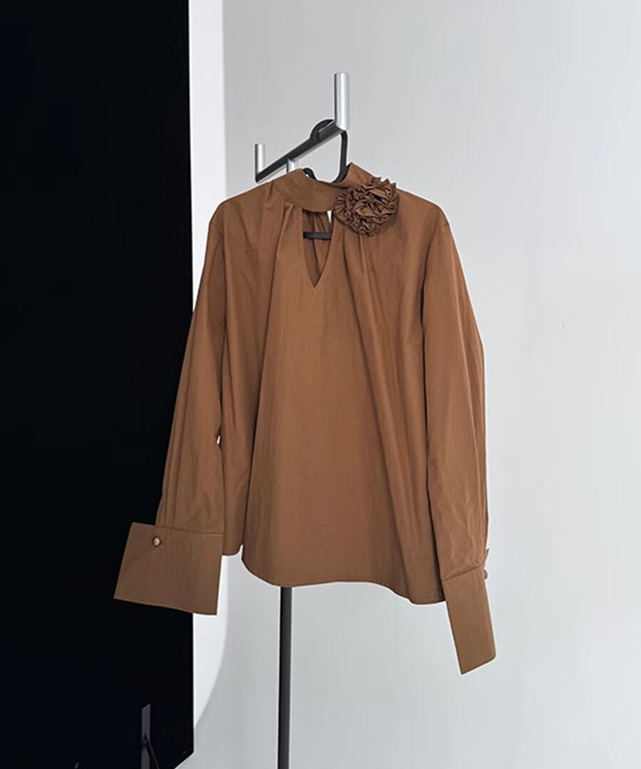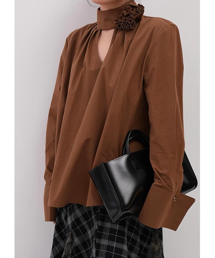 ハイネックフラワーデザイン◆ブラウス【t-10689】