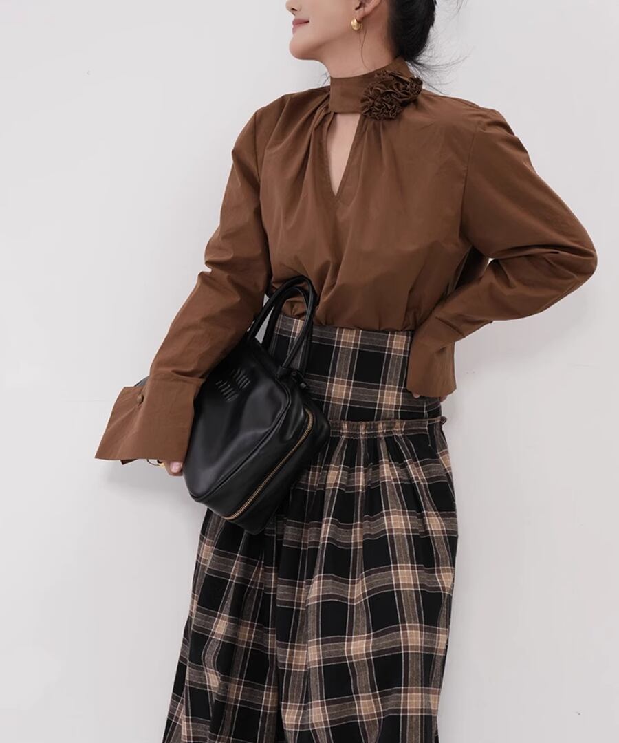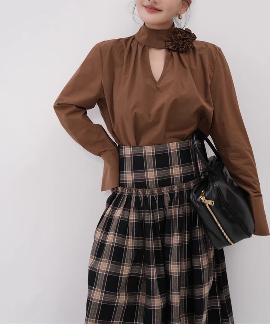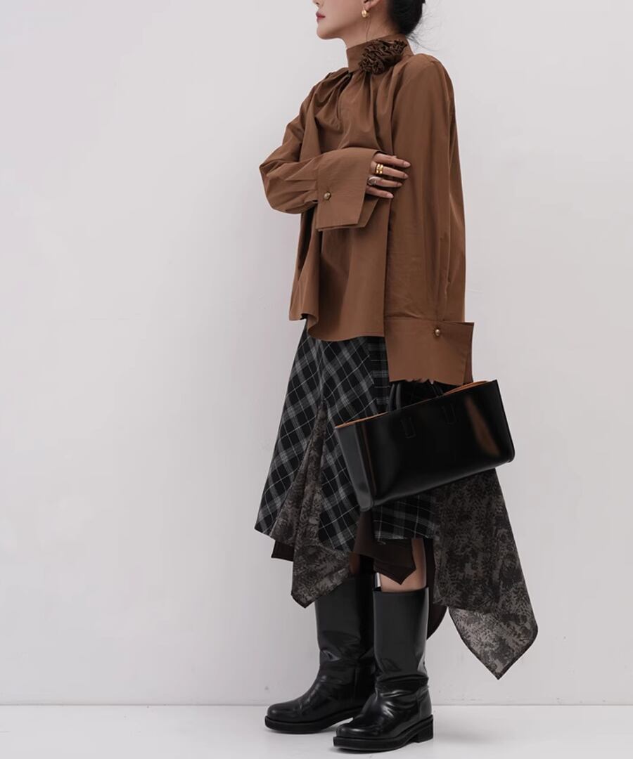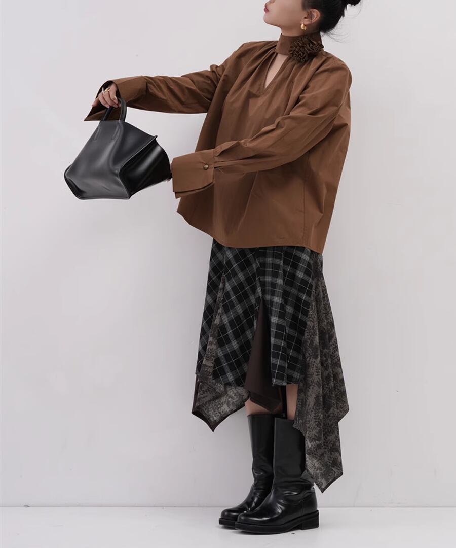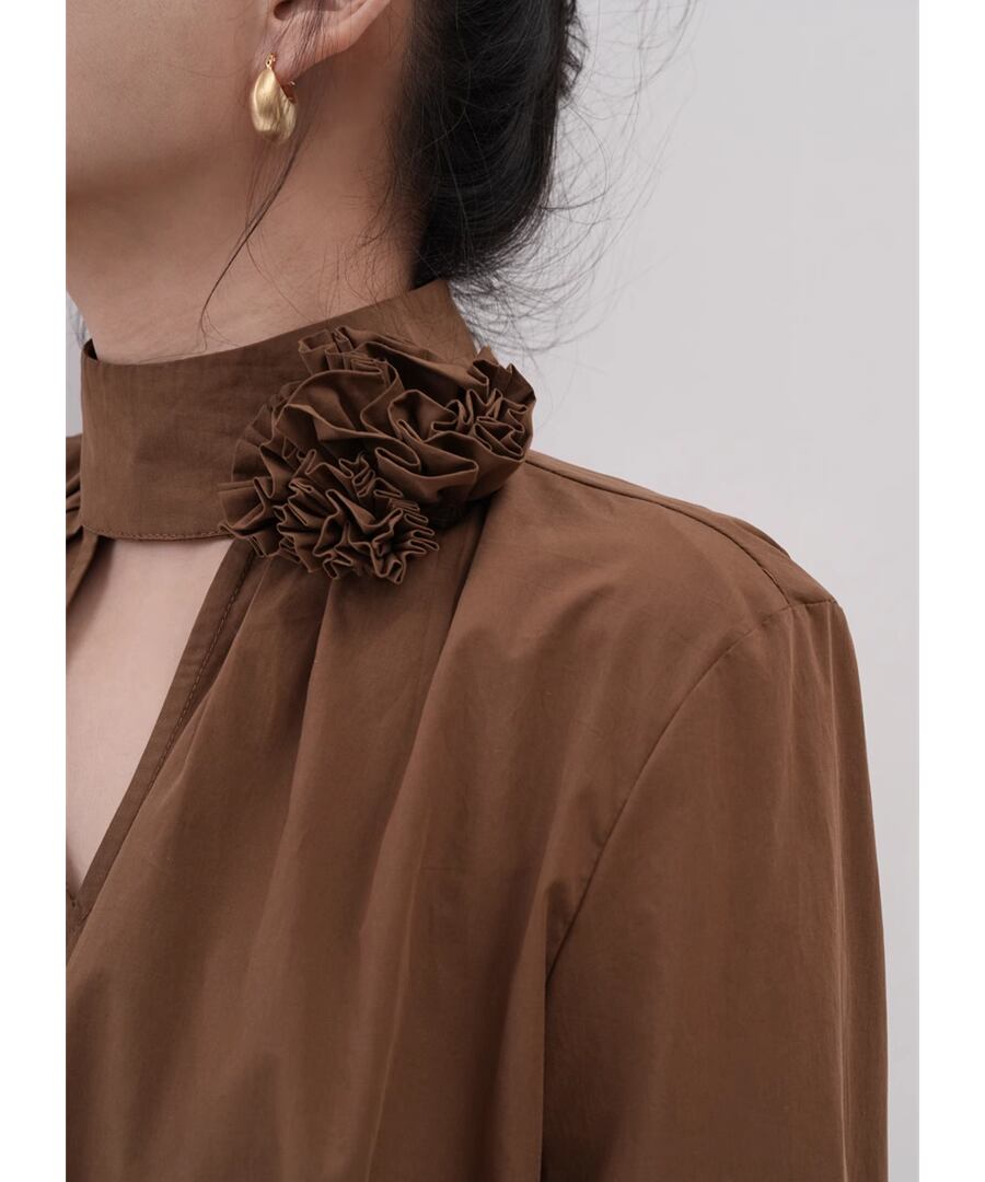 ハイネックフラワーデザイン◆ブラウス【t-10689】