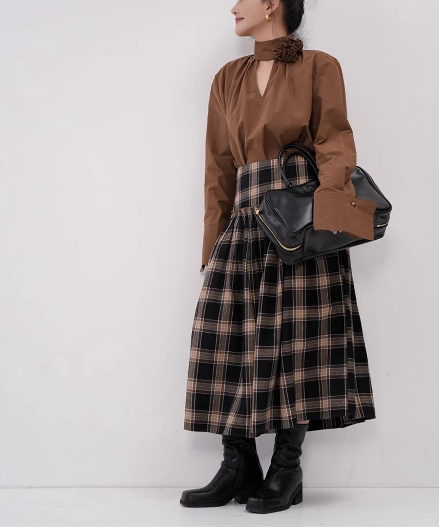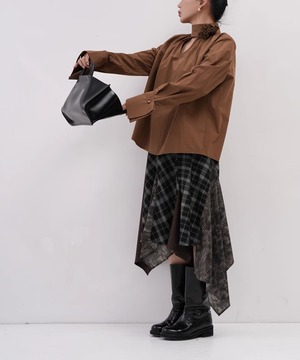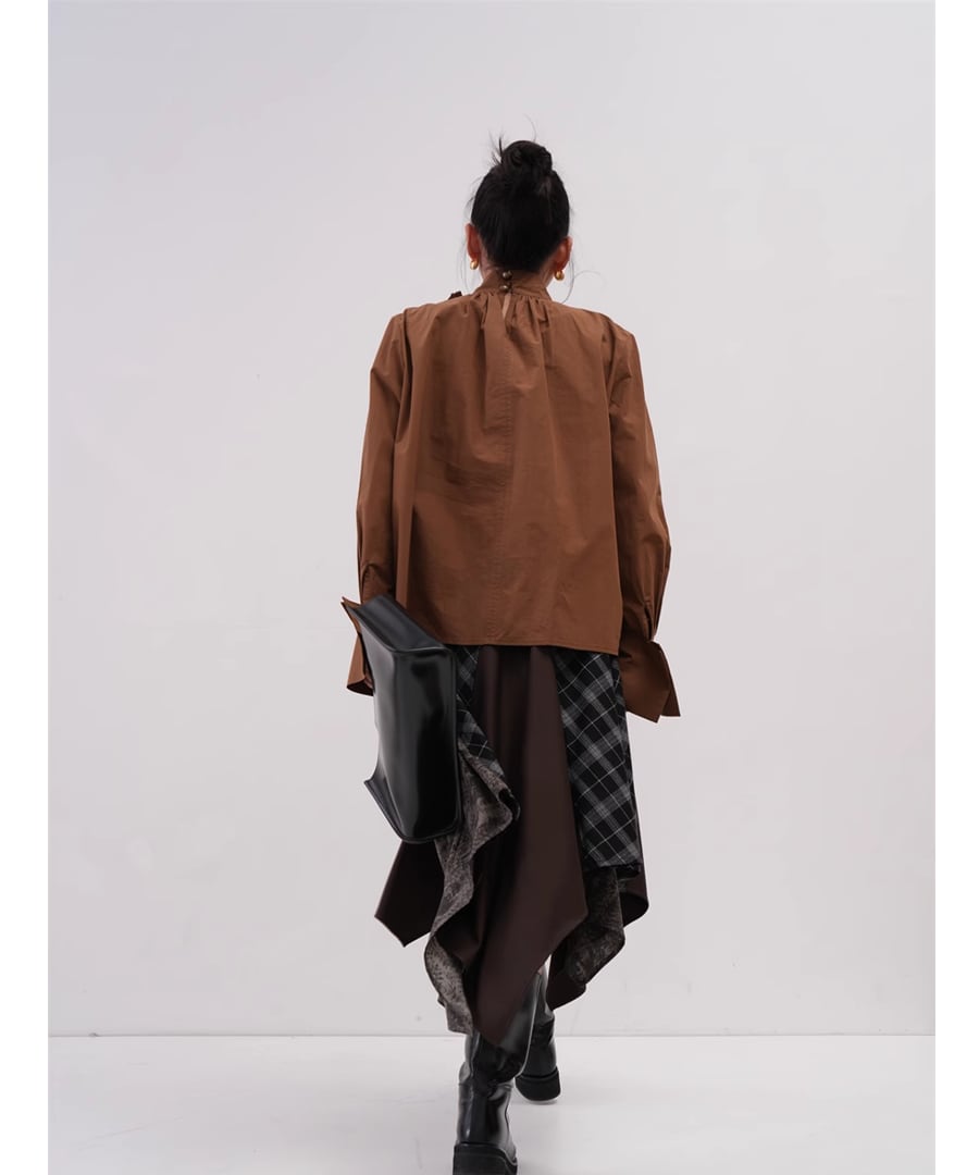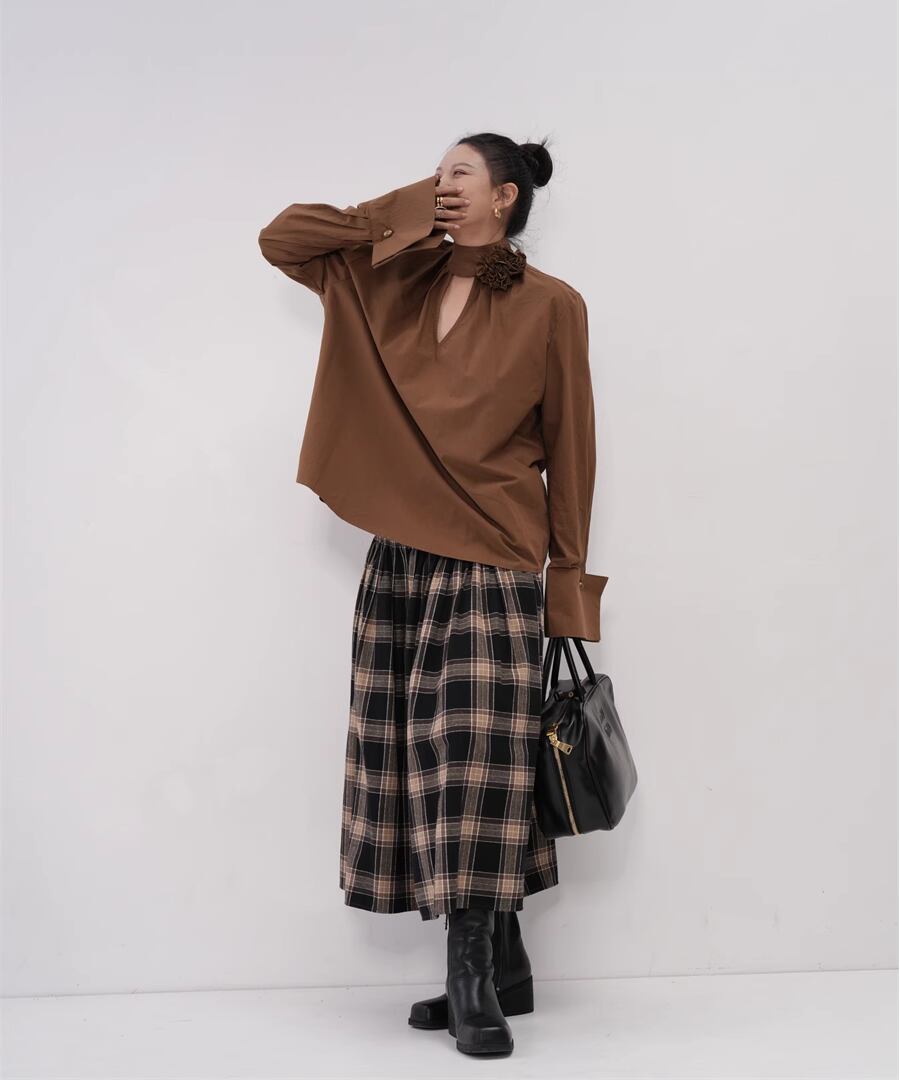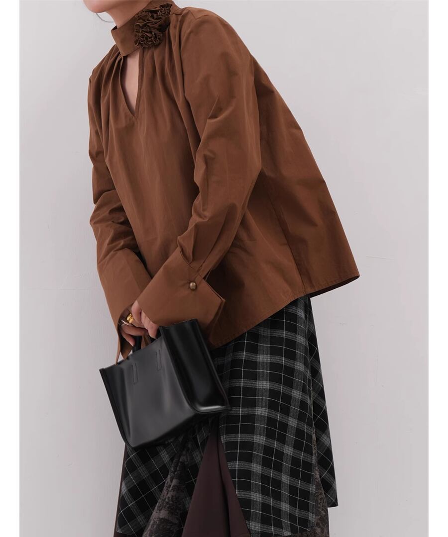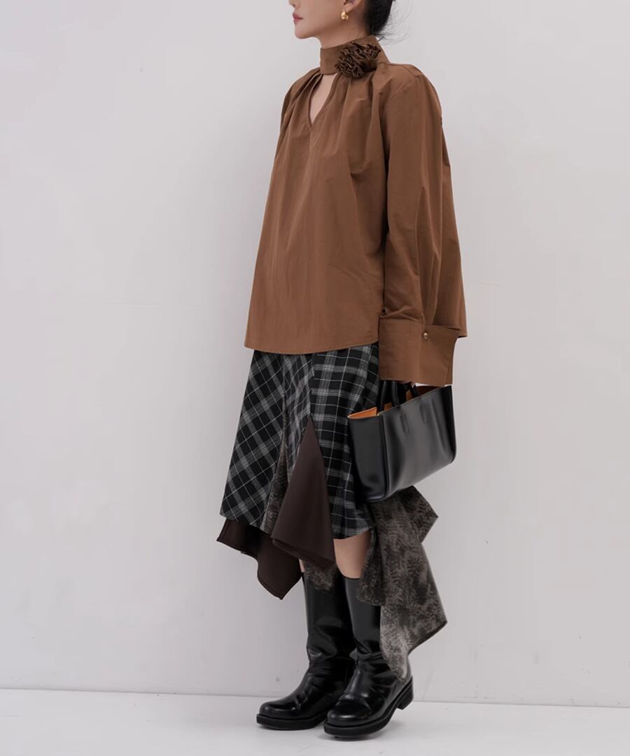 ハイネックフラワーデザイン◆ブラウス【t-10689】