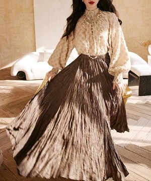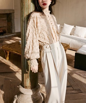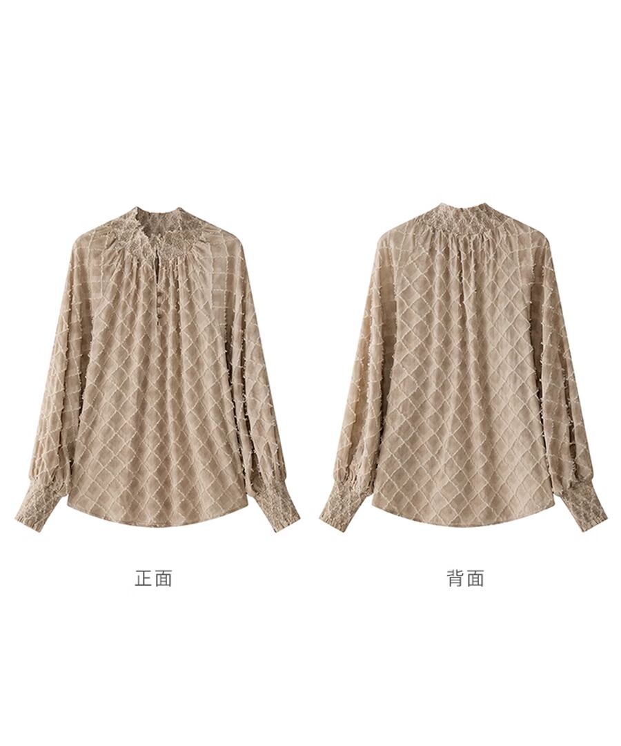 ランタンスリーブ◆チェックデザインブラウス【t-10427】