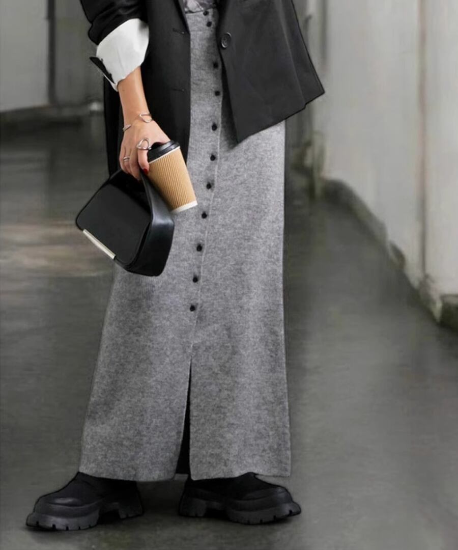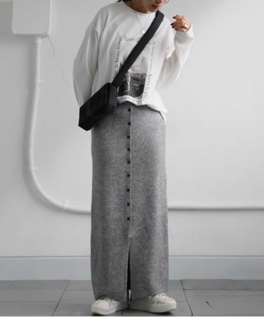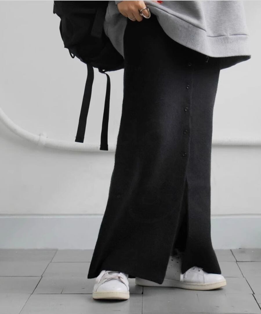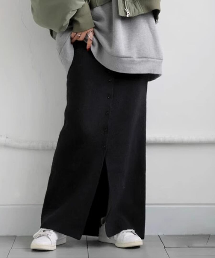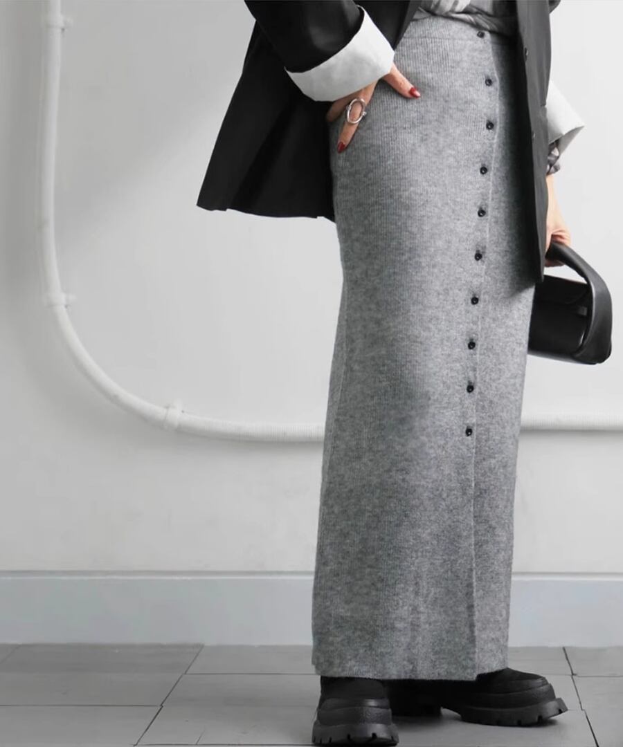 ボタンスリットニットスカート【s-60356】