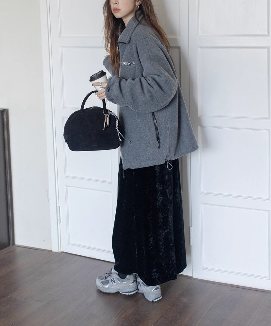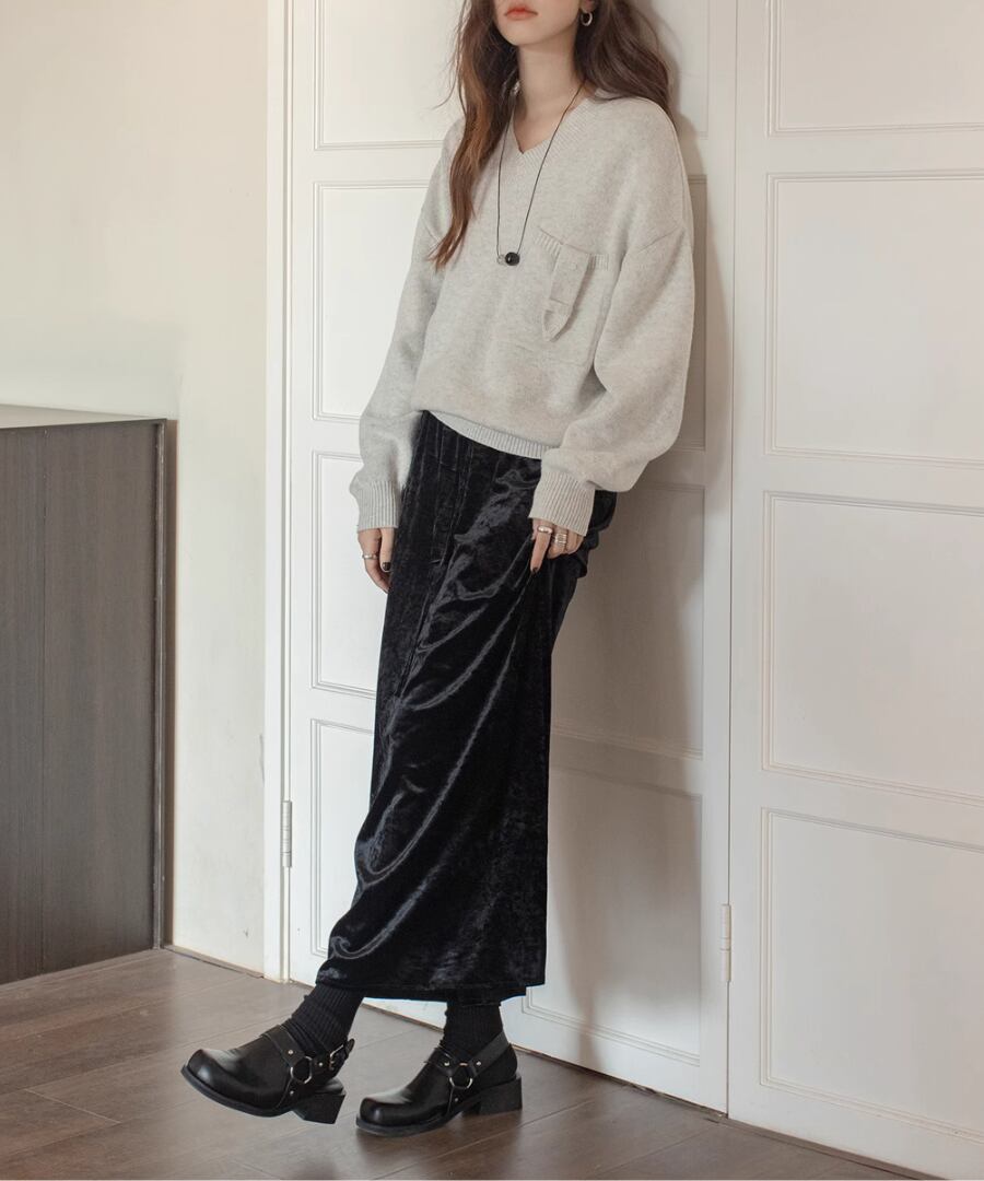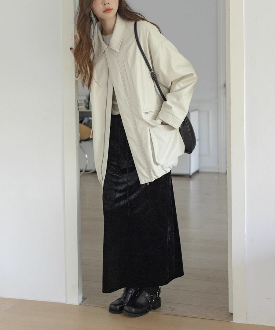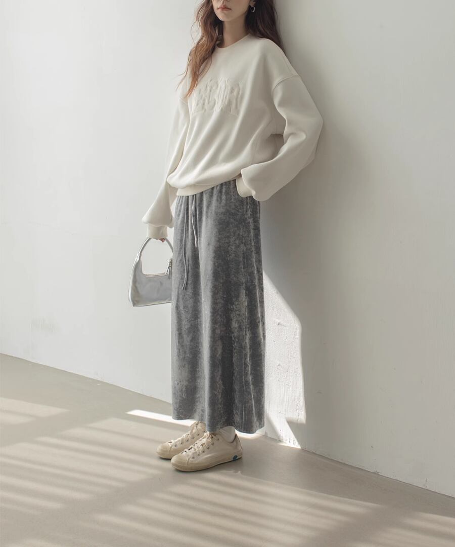 シンプルなトップスやブラウスと合わせることで、さまざまなシーンに対応できるコーディネートが完成します。