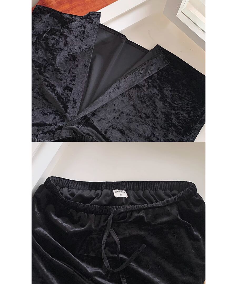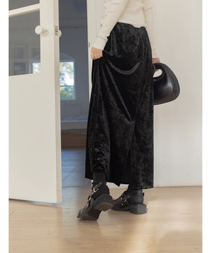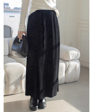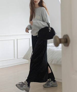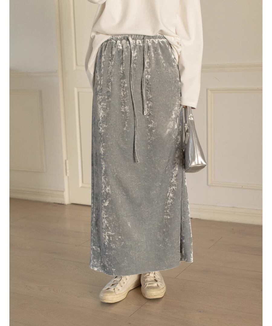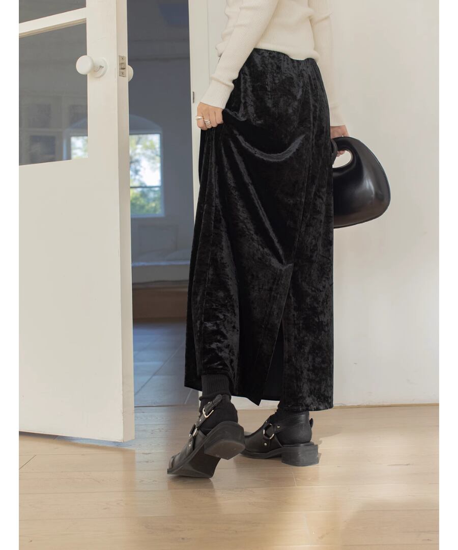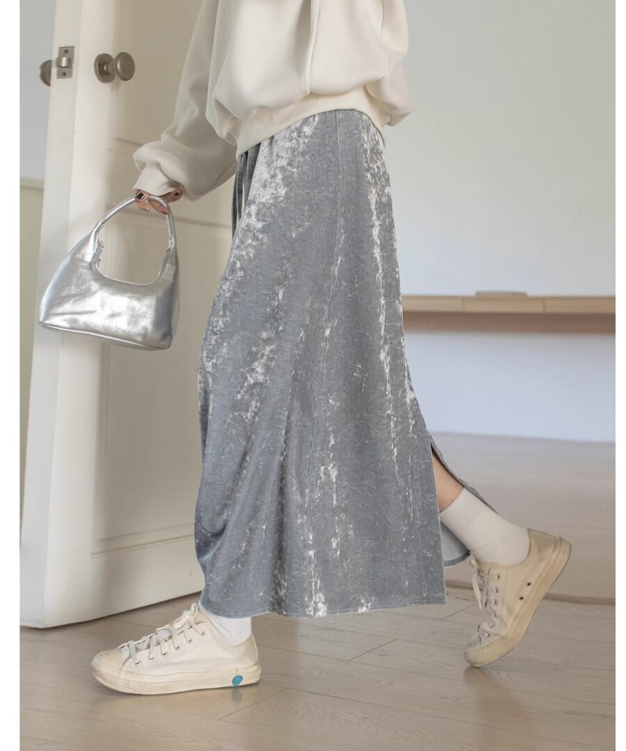 スリットデザインが脚を美しく見せ、動くたびにエレガントな表情を演出。