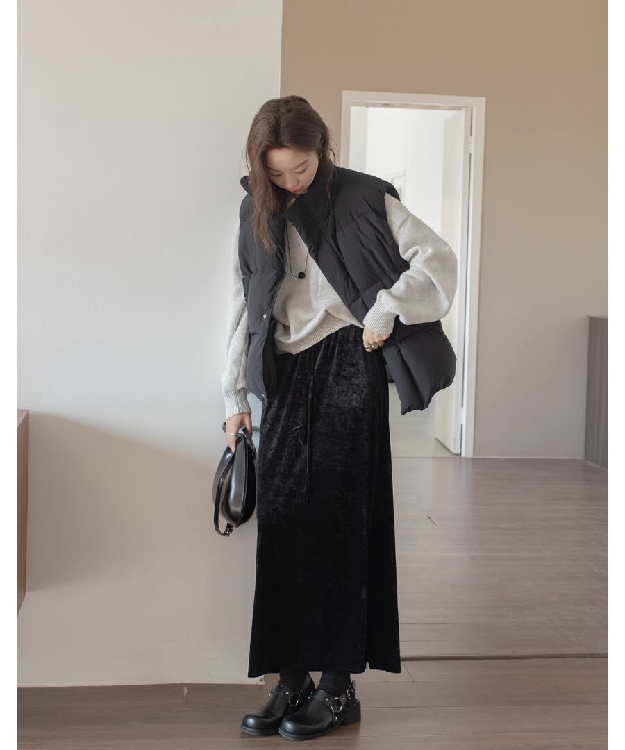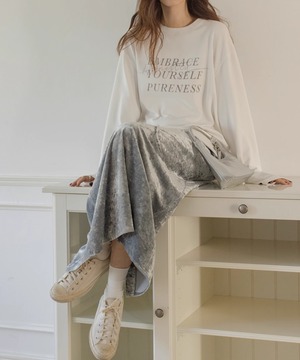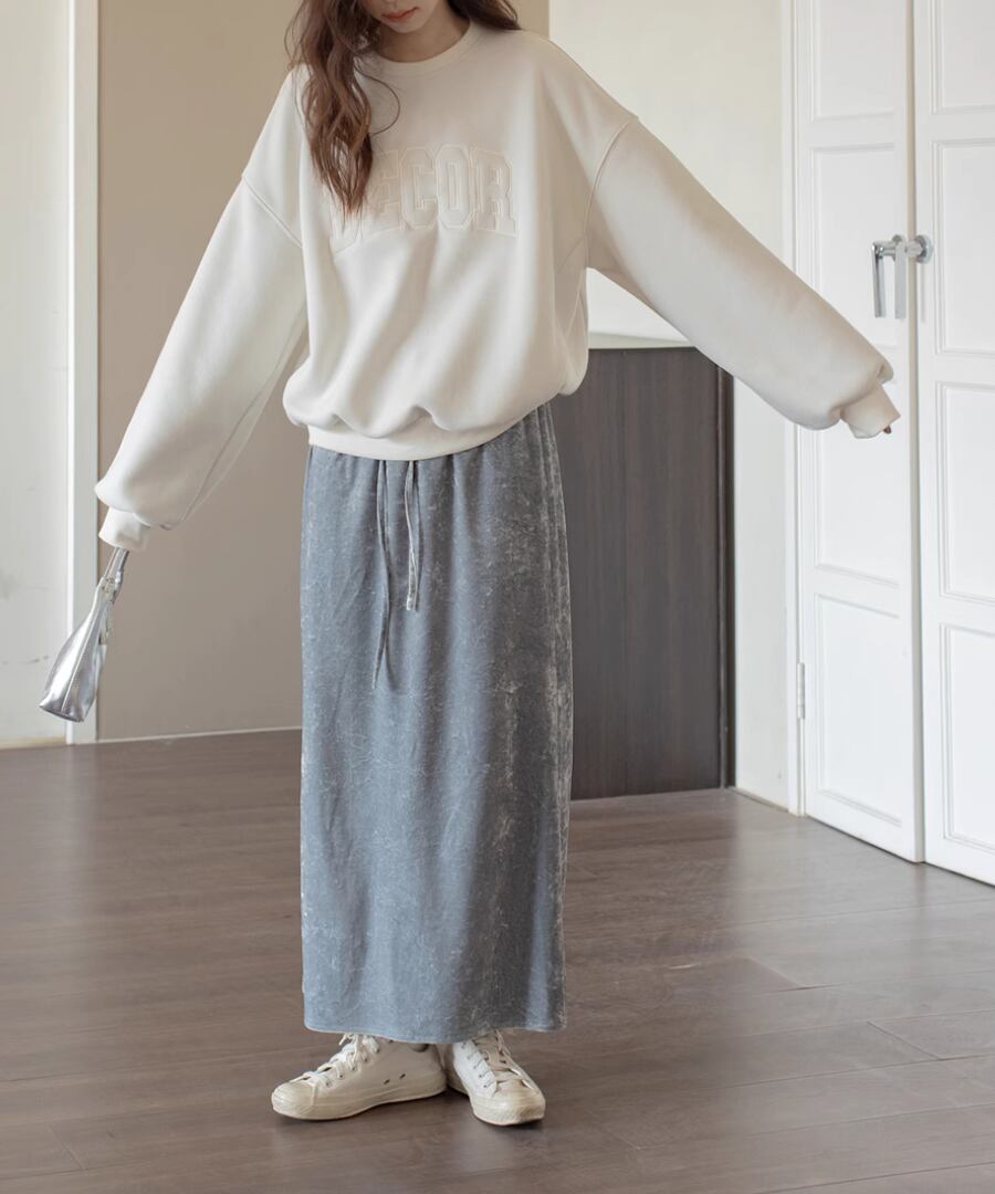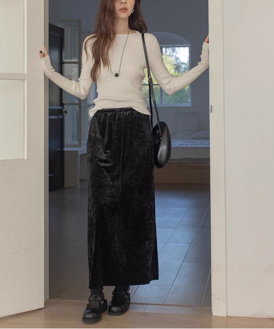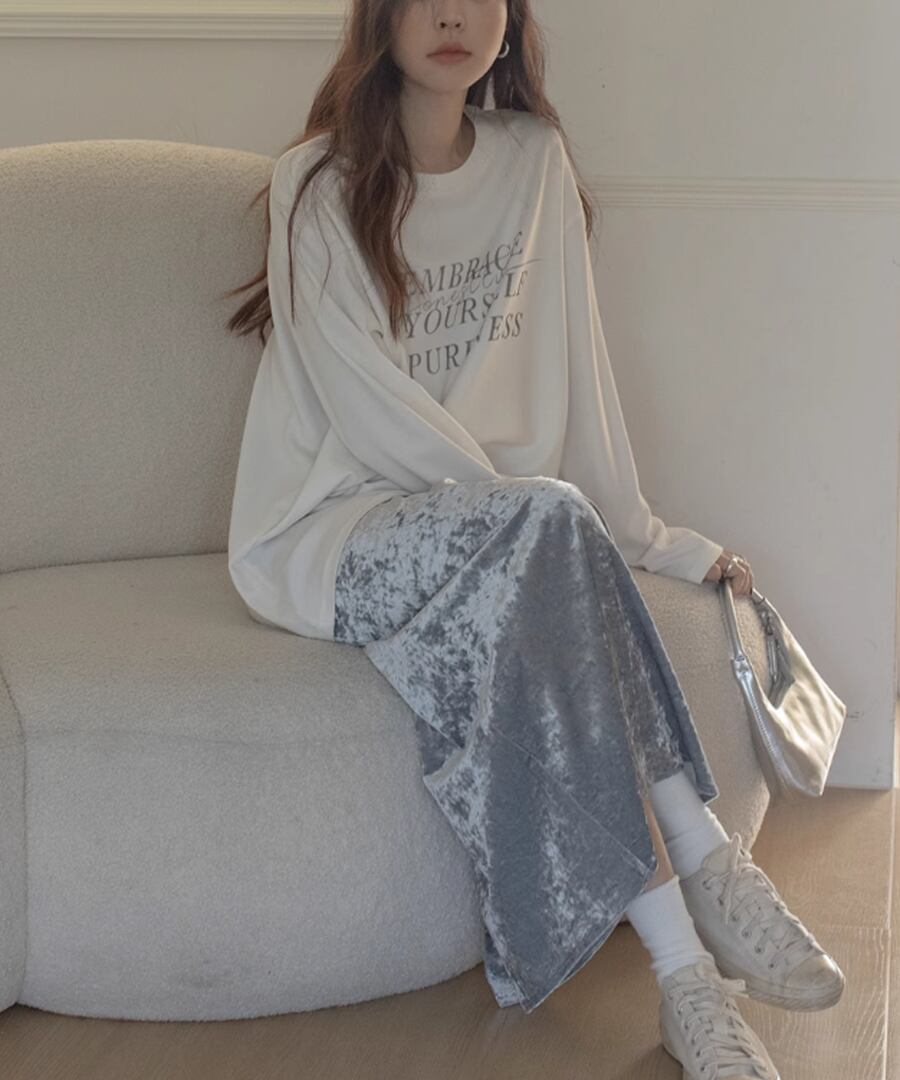 スリットデザインが脚を美しく見せ、動くたびにエレガントな表情を演出。