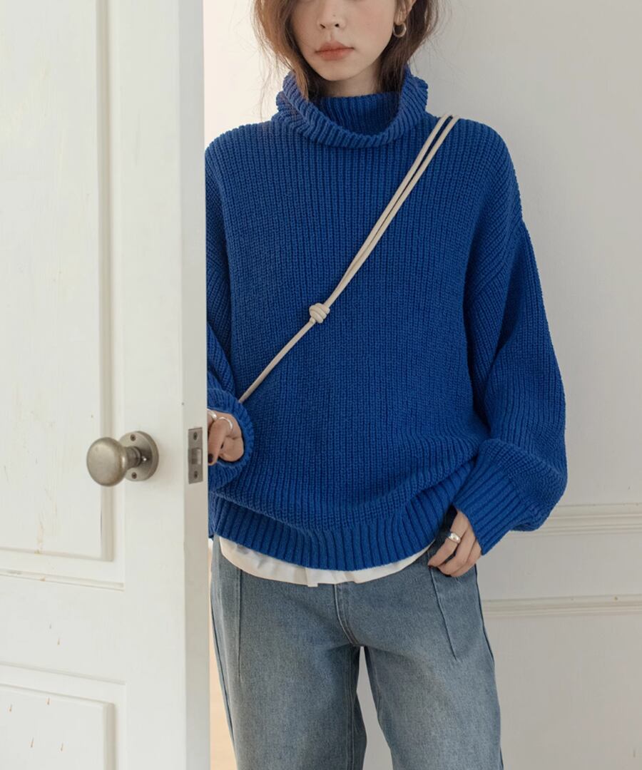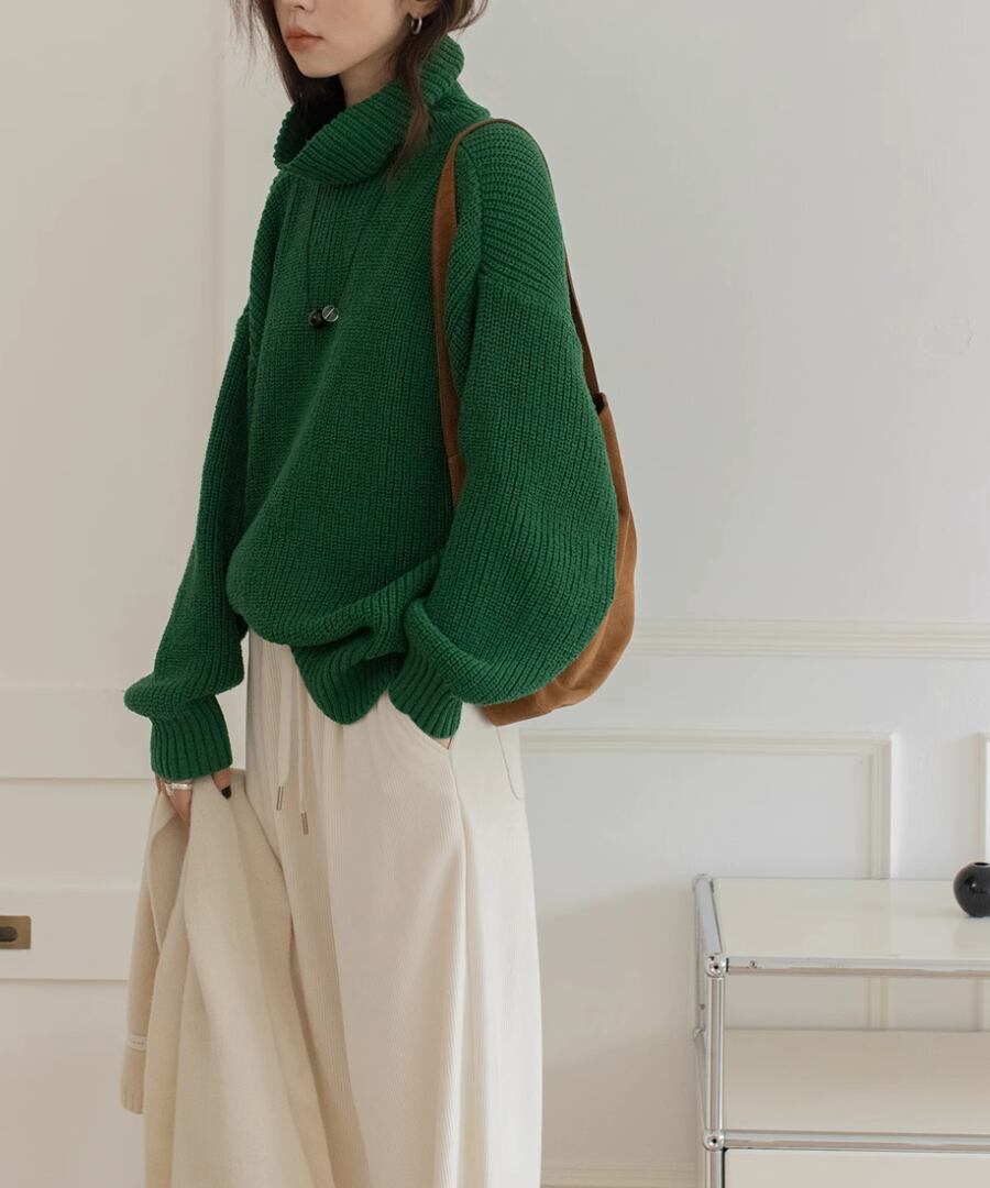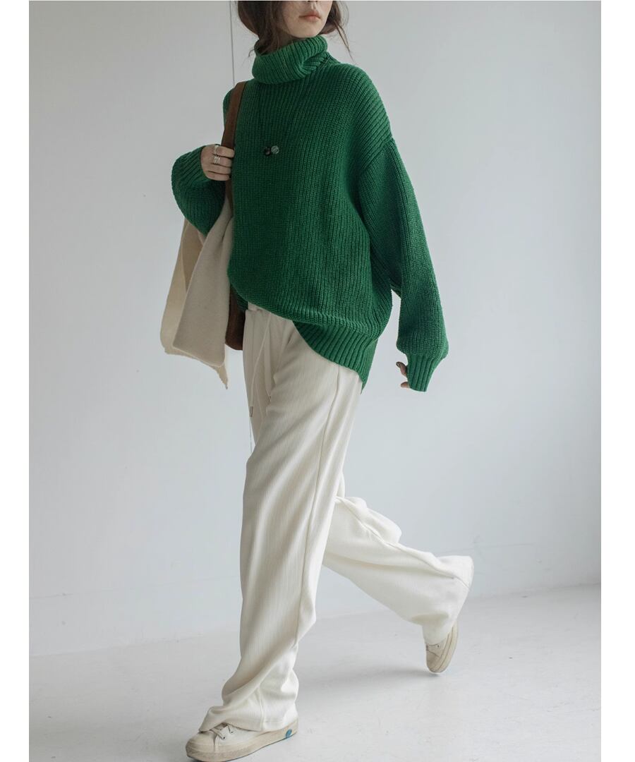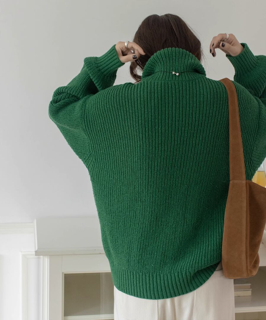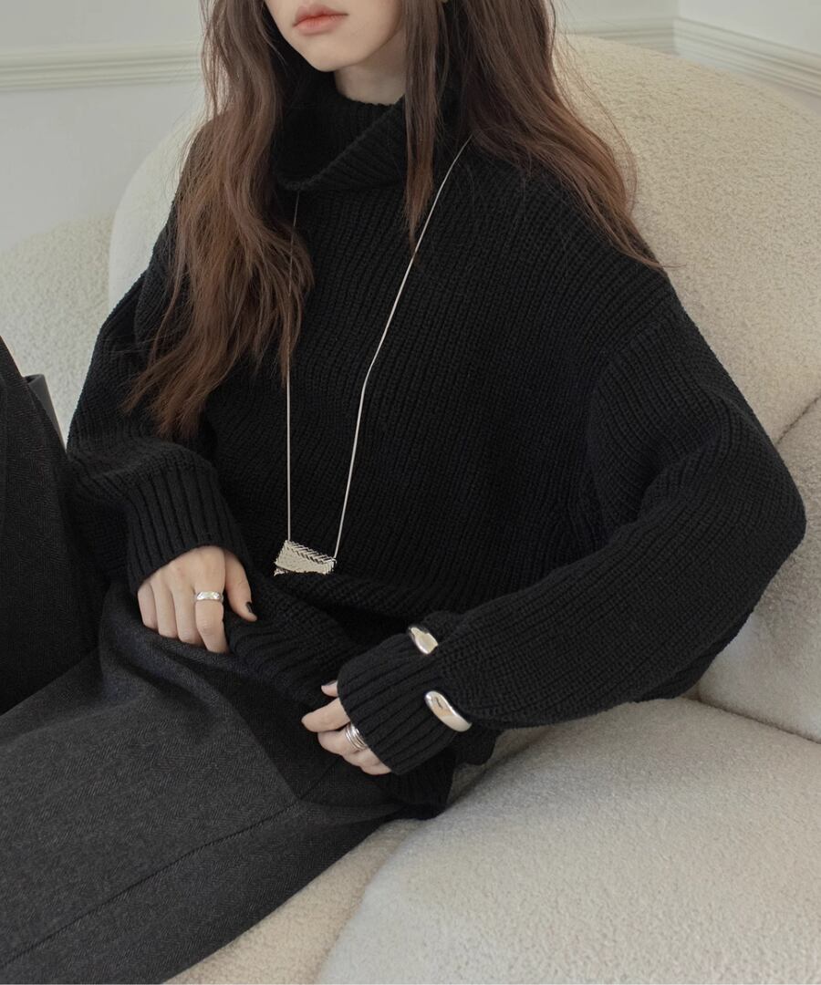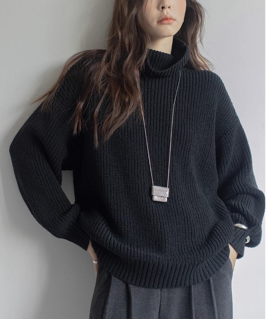 太い針で編まれたニットは厚みがありゆったりとしています。