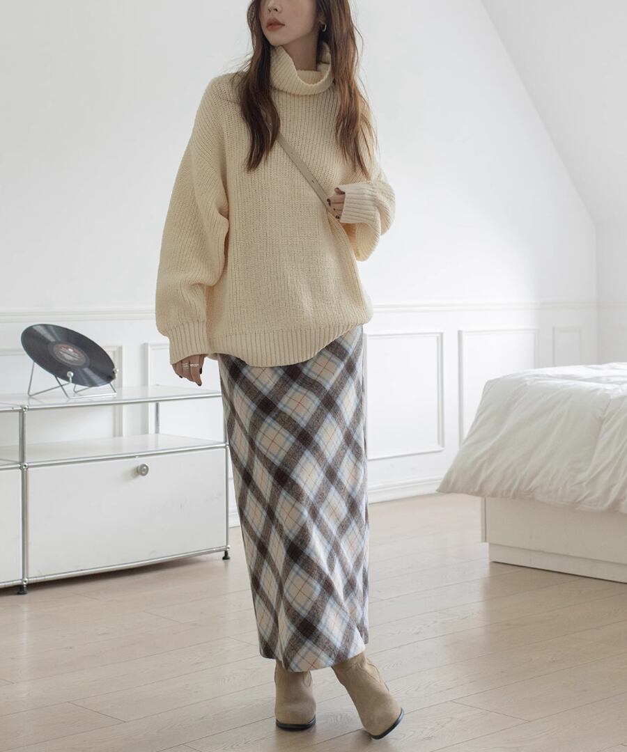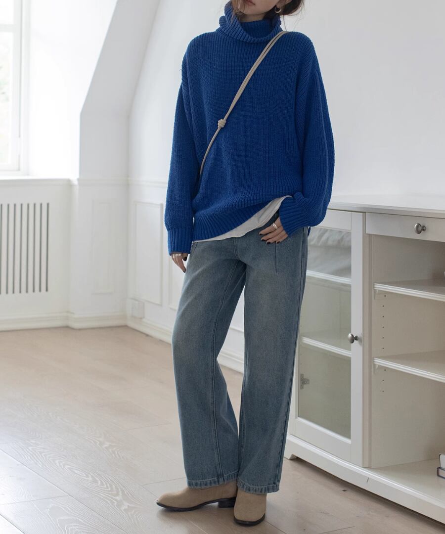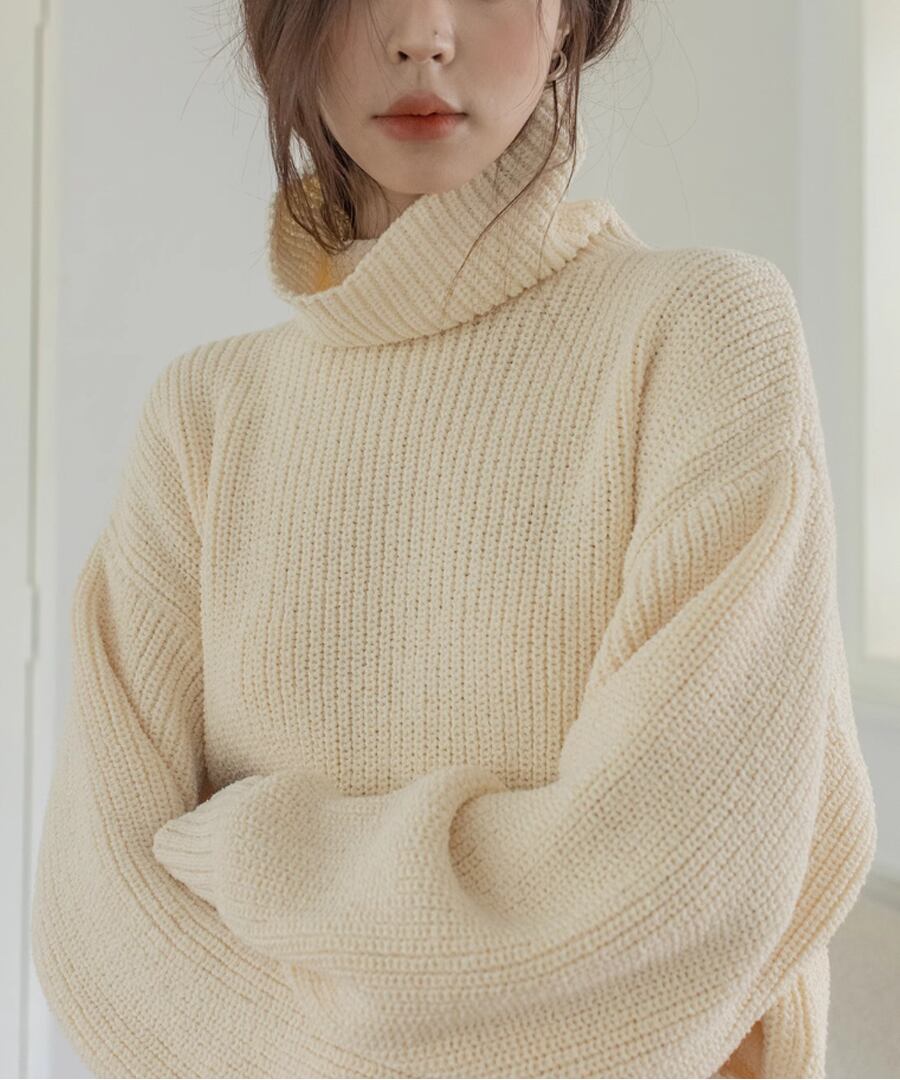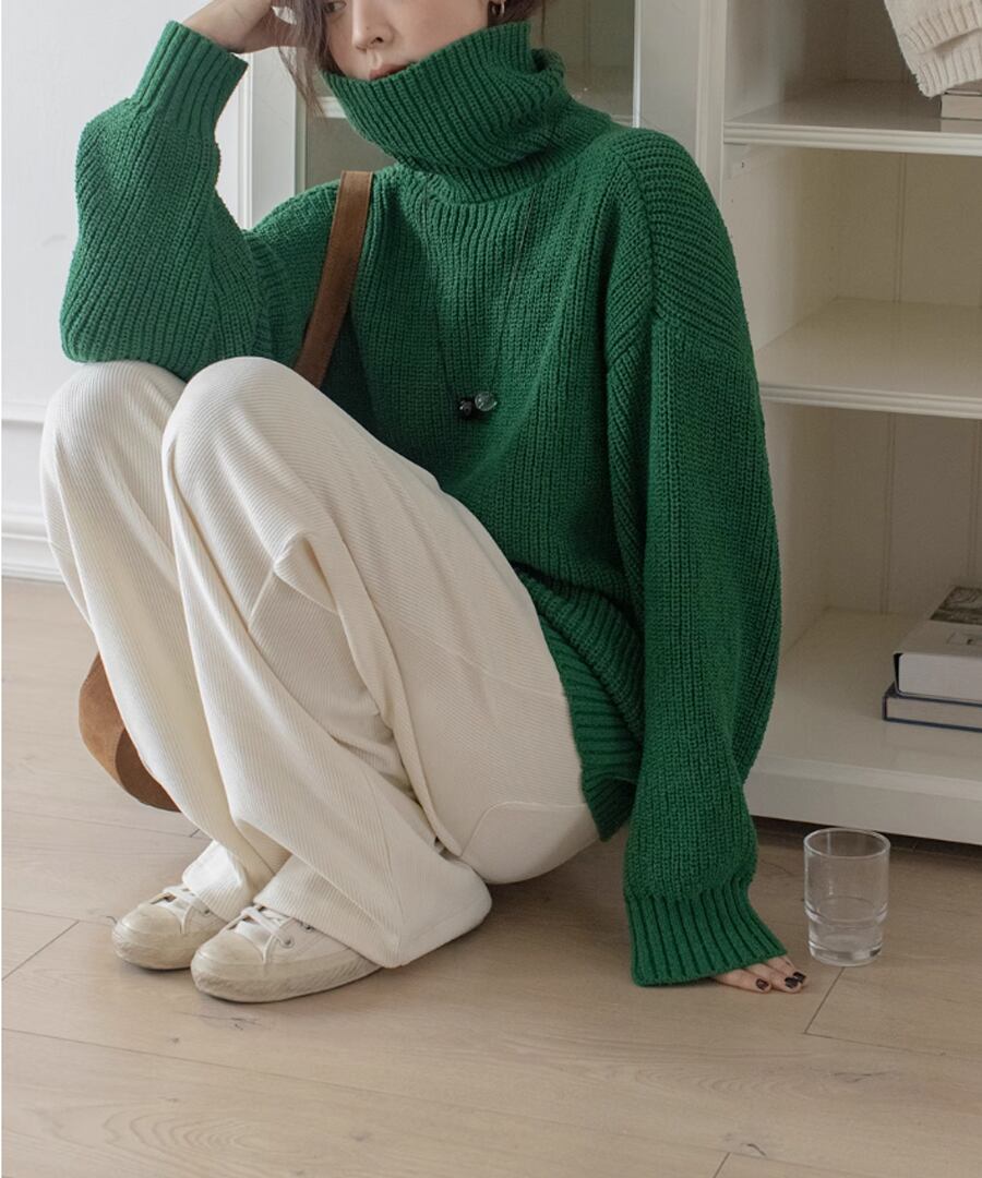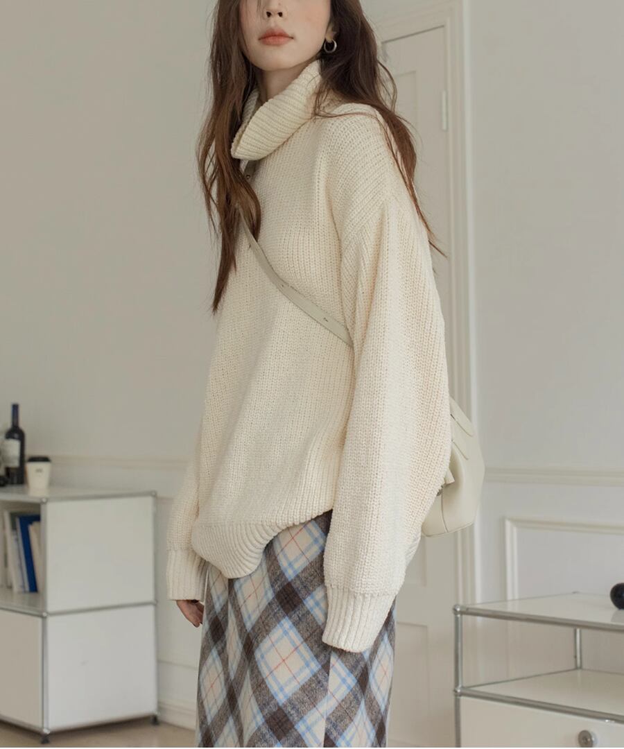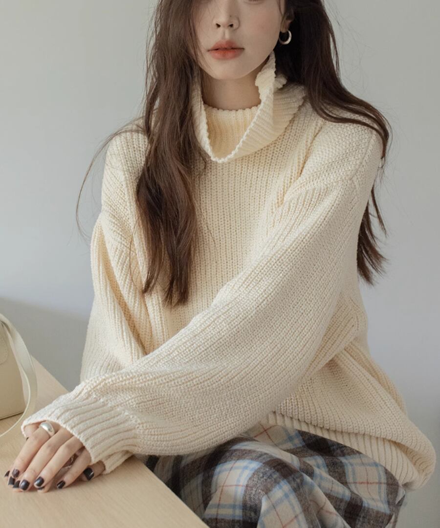 太い針で編まれたニットは厚みがありゆったりとしています。