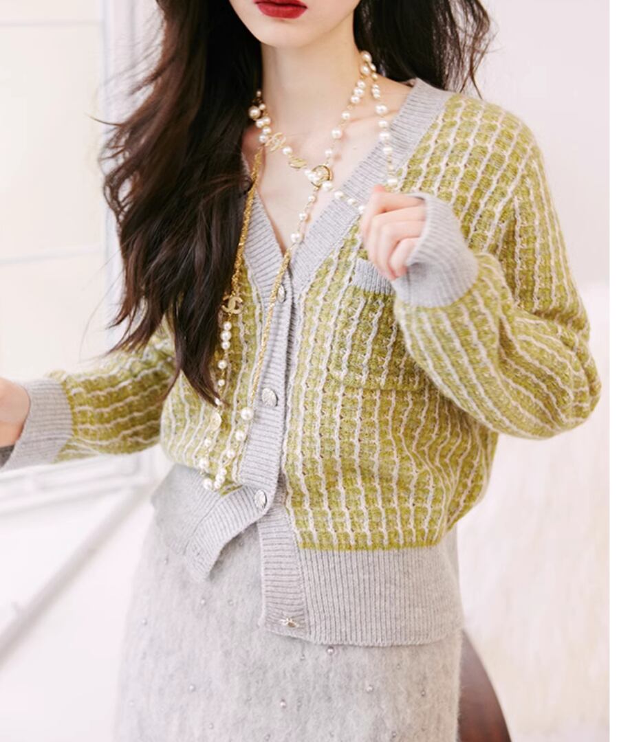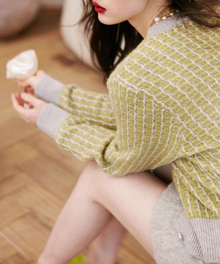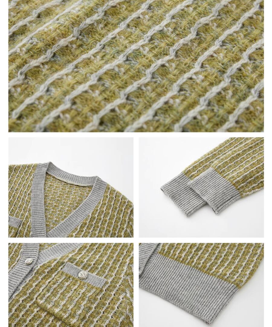 グレー&グリーンカーディガン◆モヘア混【t-10285】