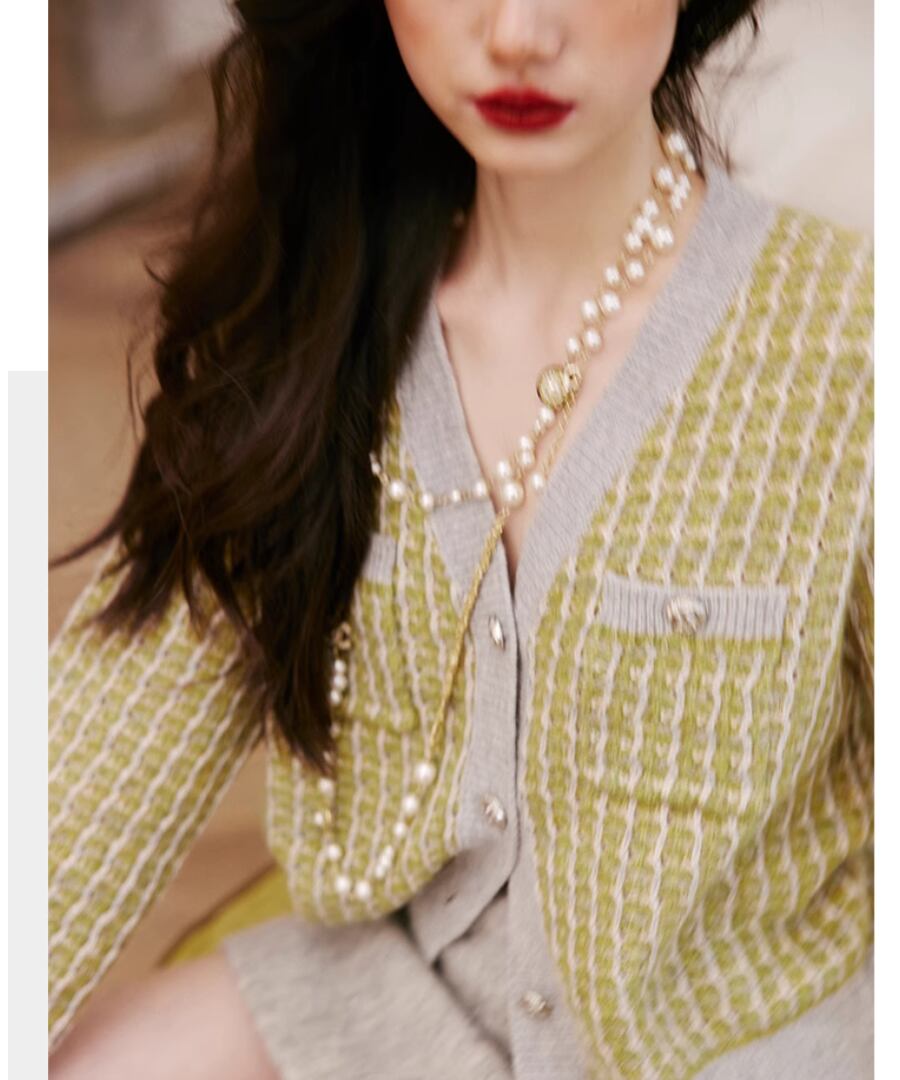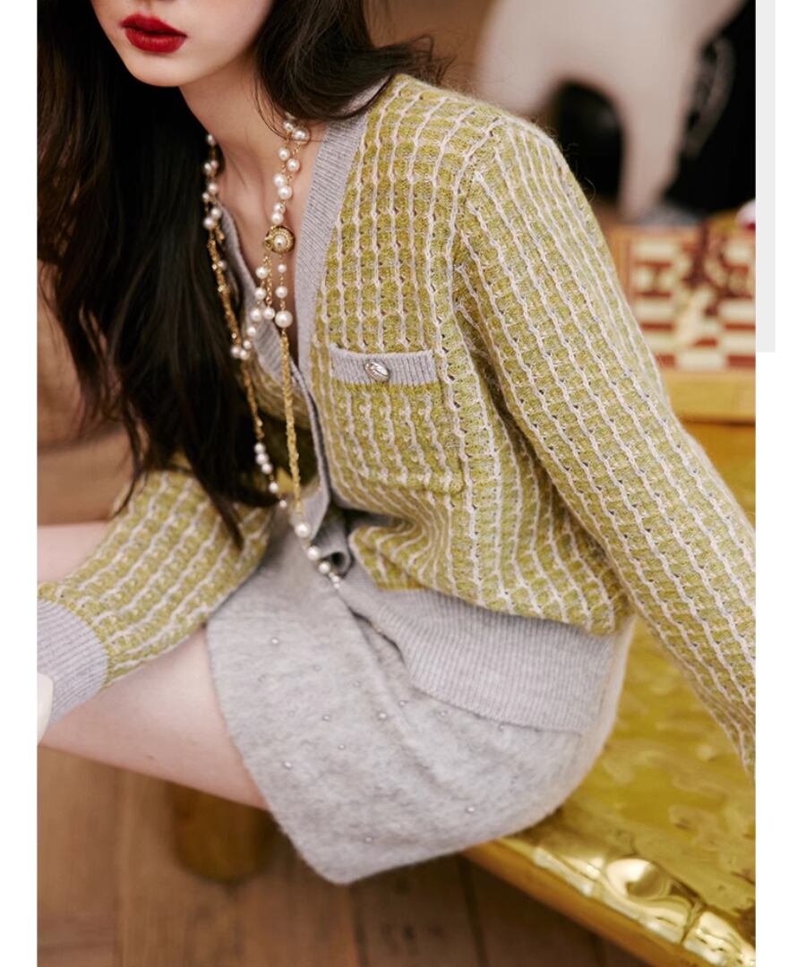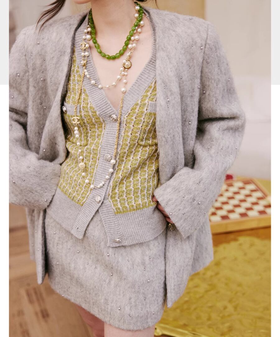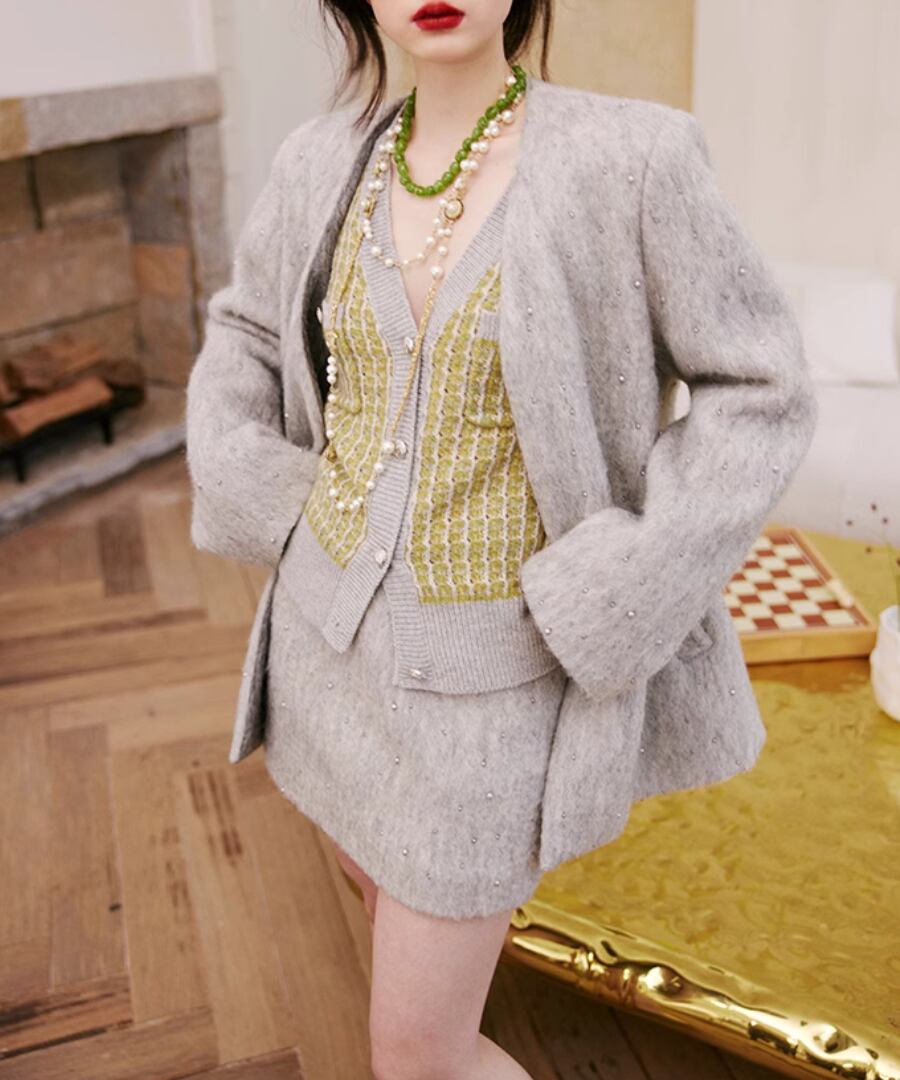 グレー&グリーンカーディガン◆モヘア混【t-10285】