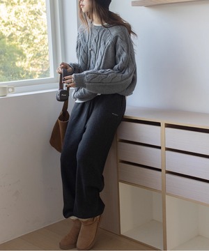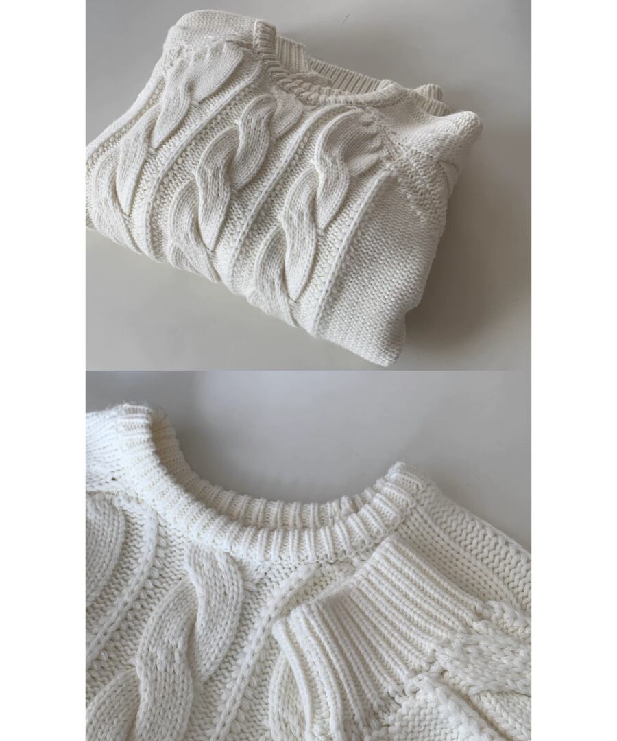 ケーブル編クルーネックニット◆メリノウール混【t-10365】