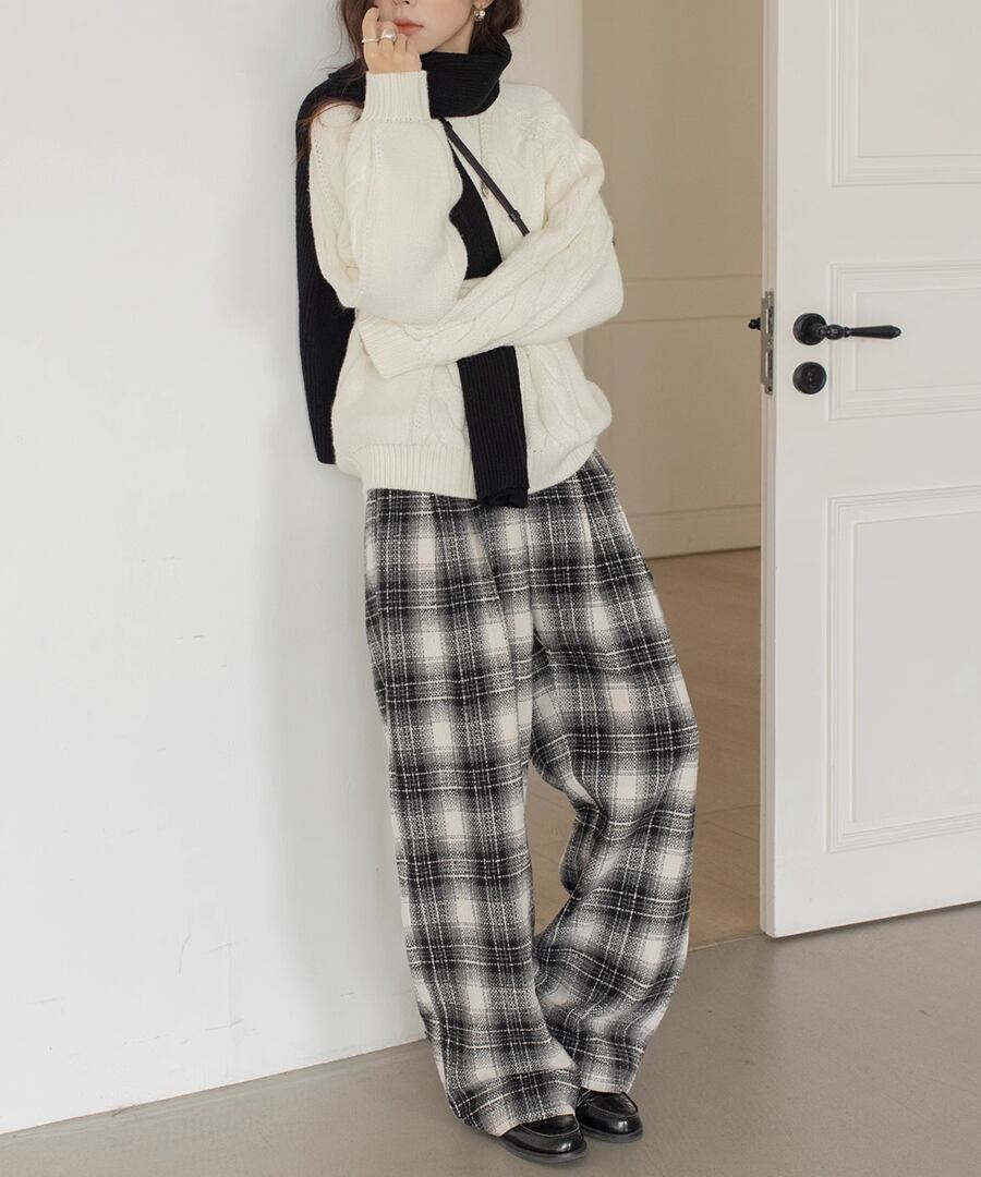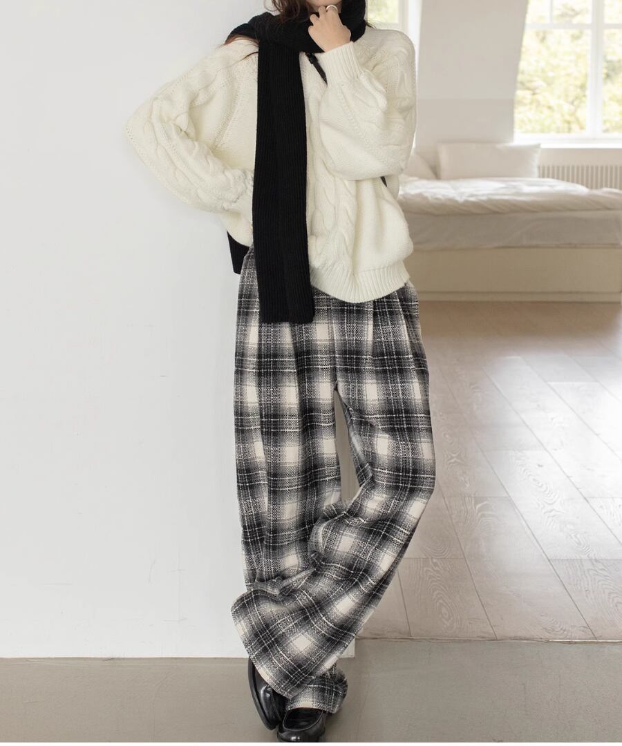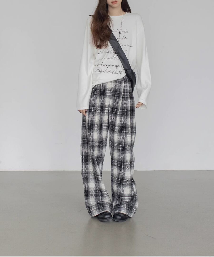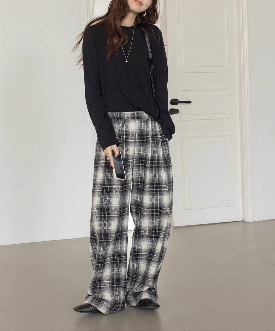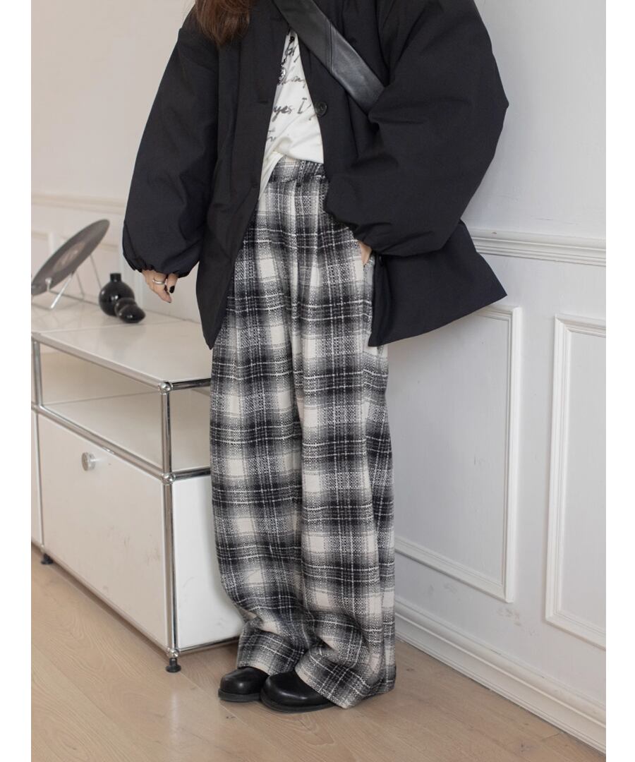 チェック柄◆ワイドレッグパンツ【p-20059】