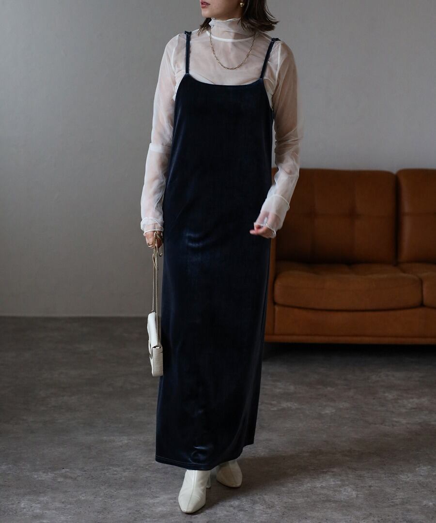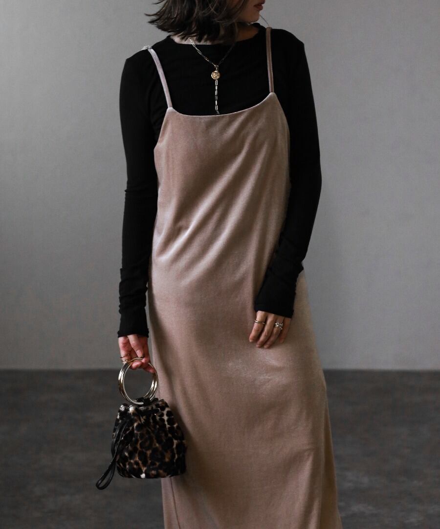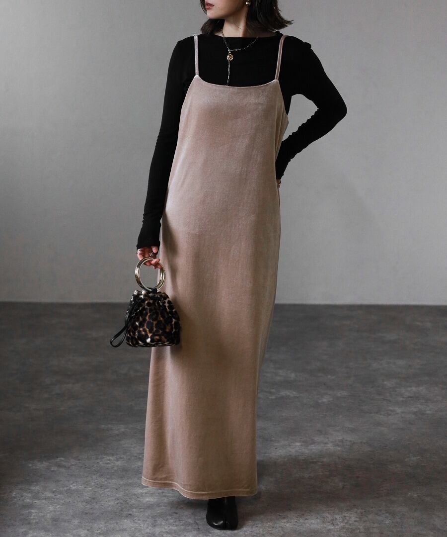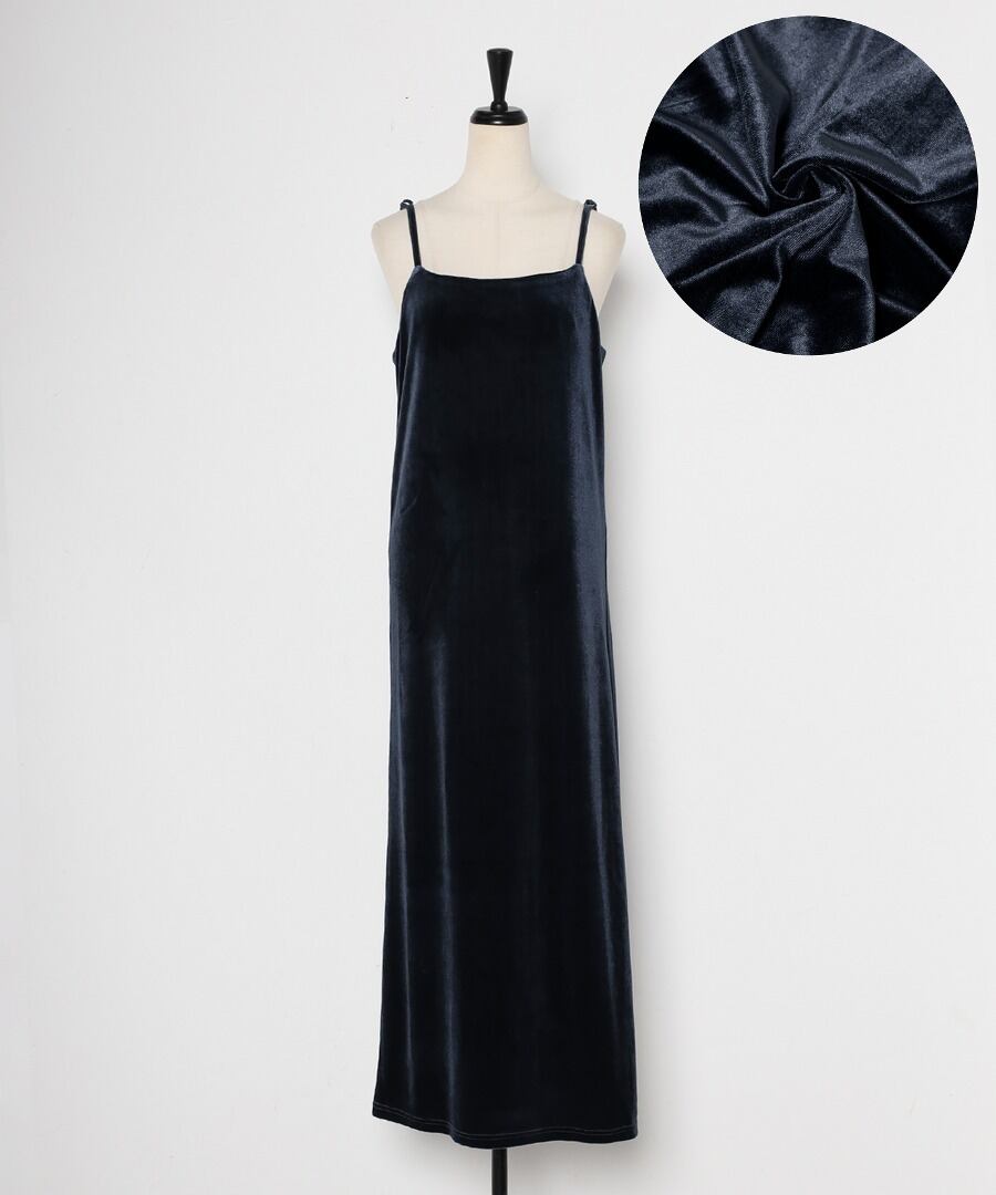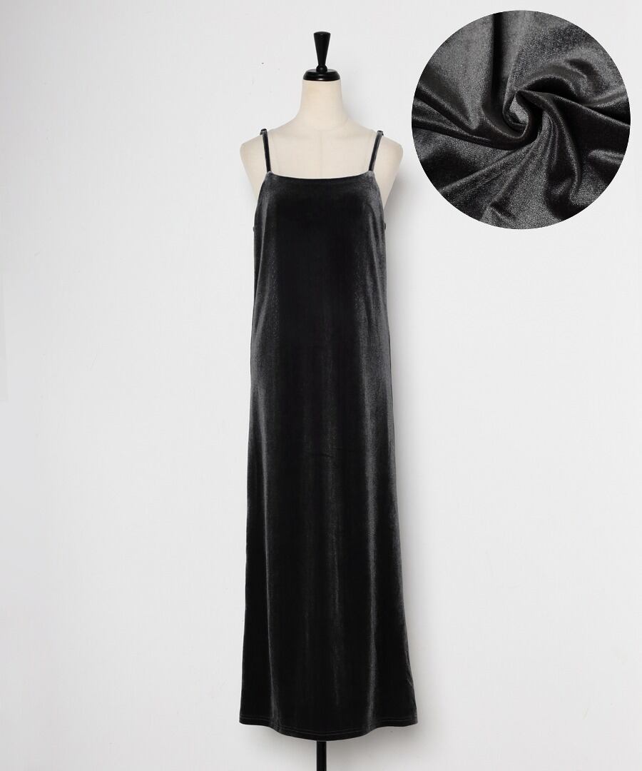 上品な光沢が魅力のベロア素材を使用したキャミワンピース。