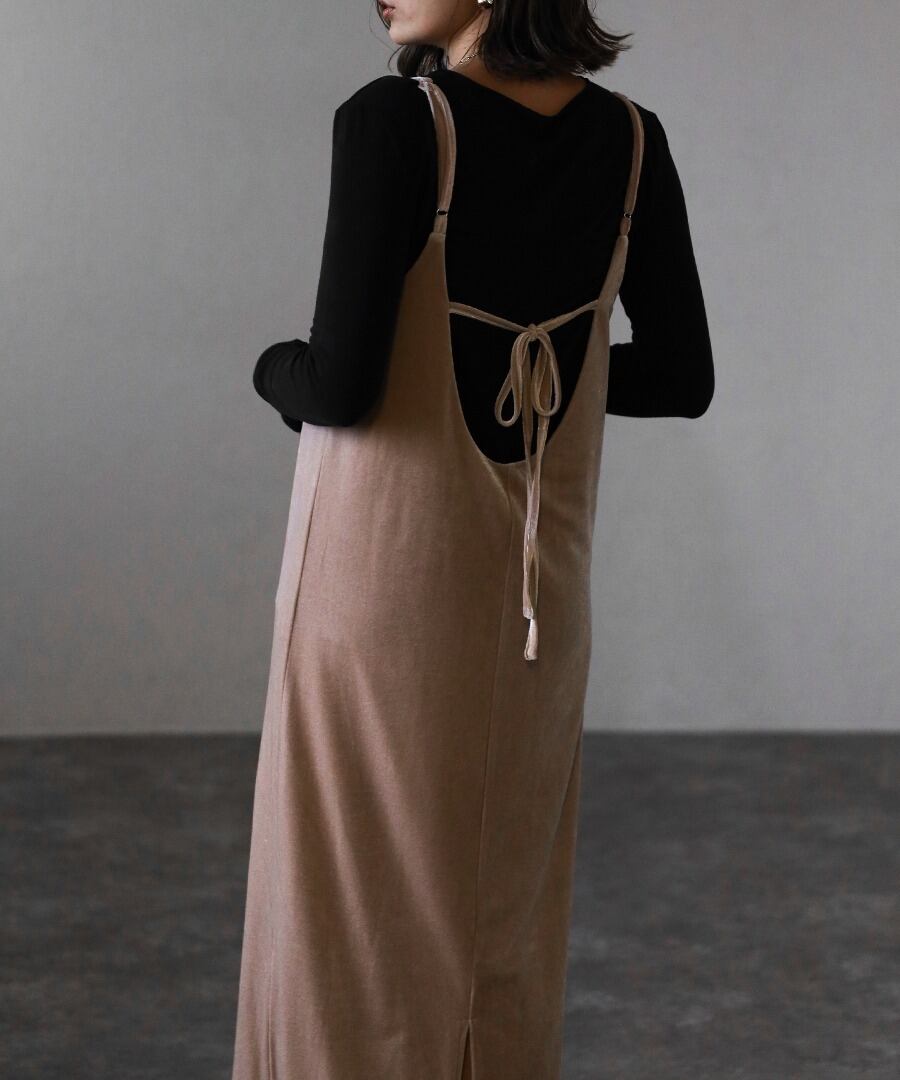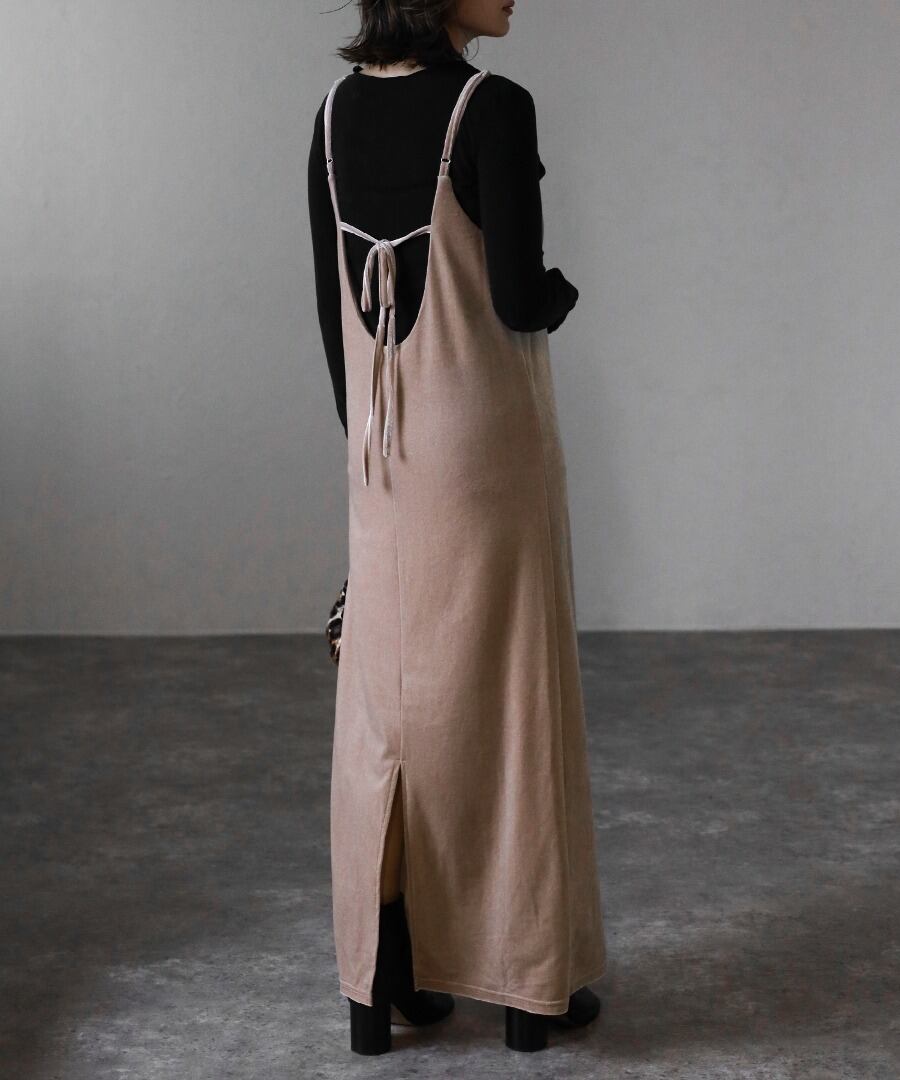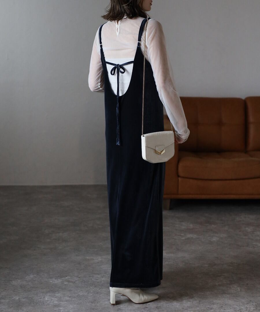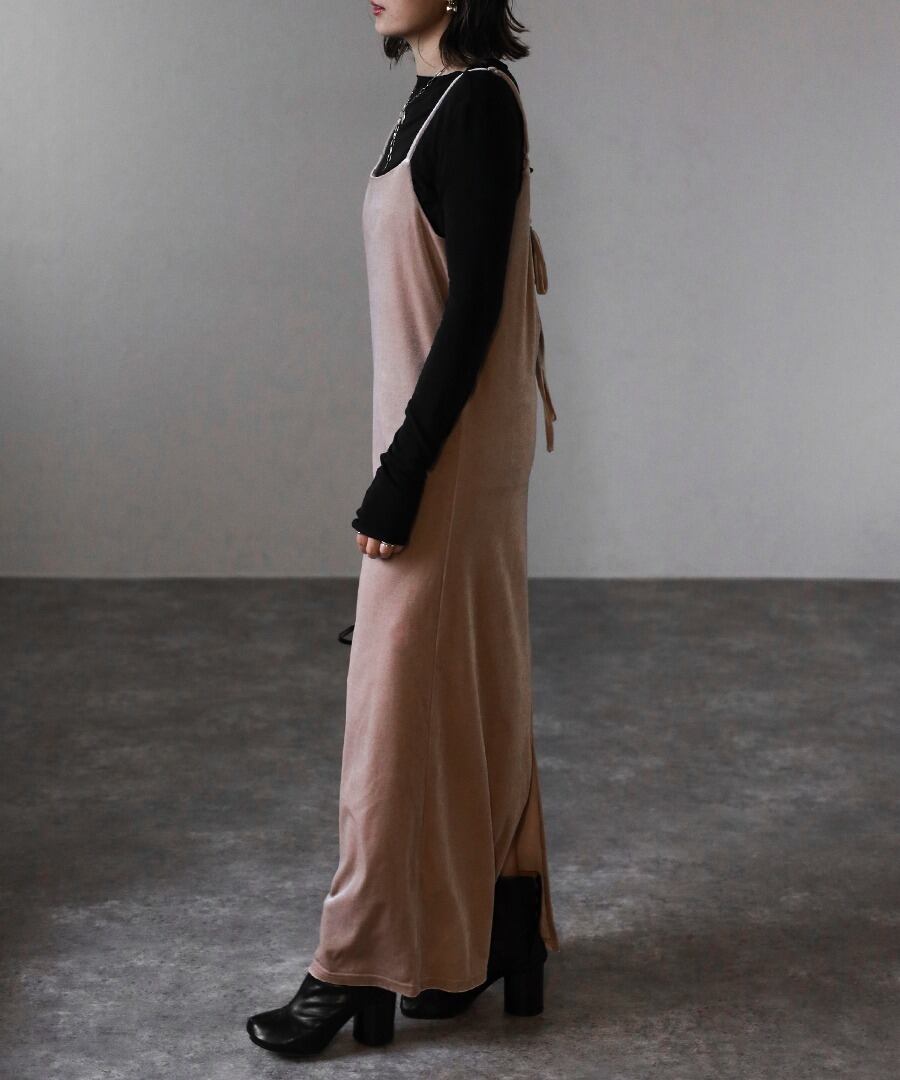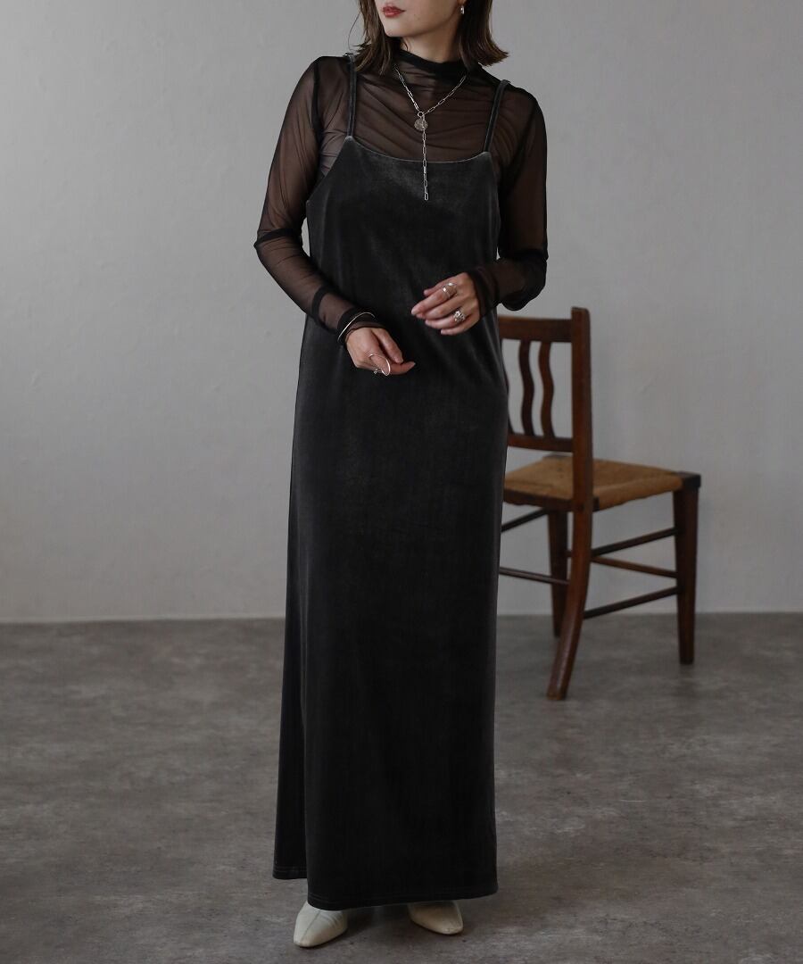 上品な光沢が魅力のベロア素材を使用したキャミワンピース。