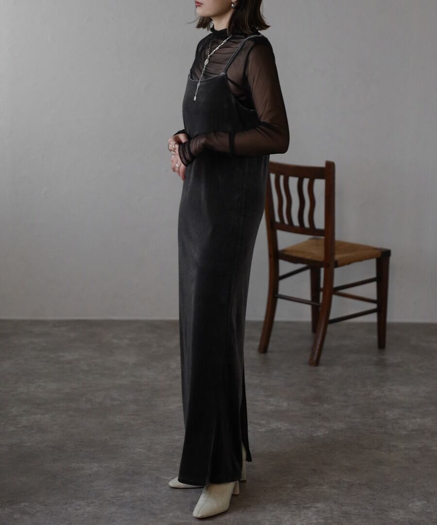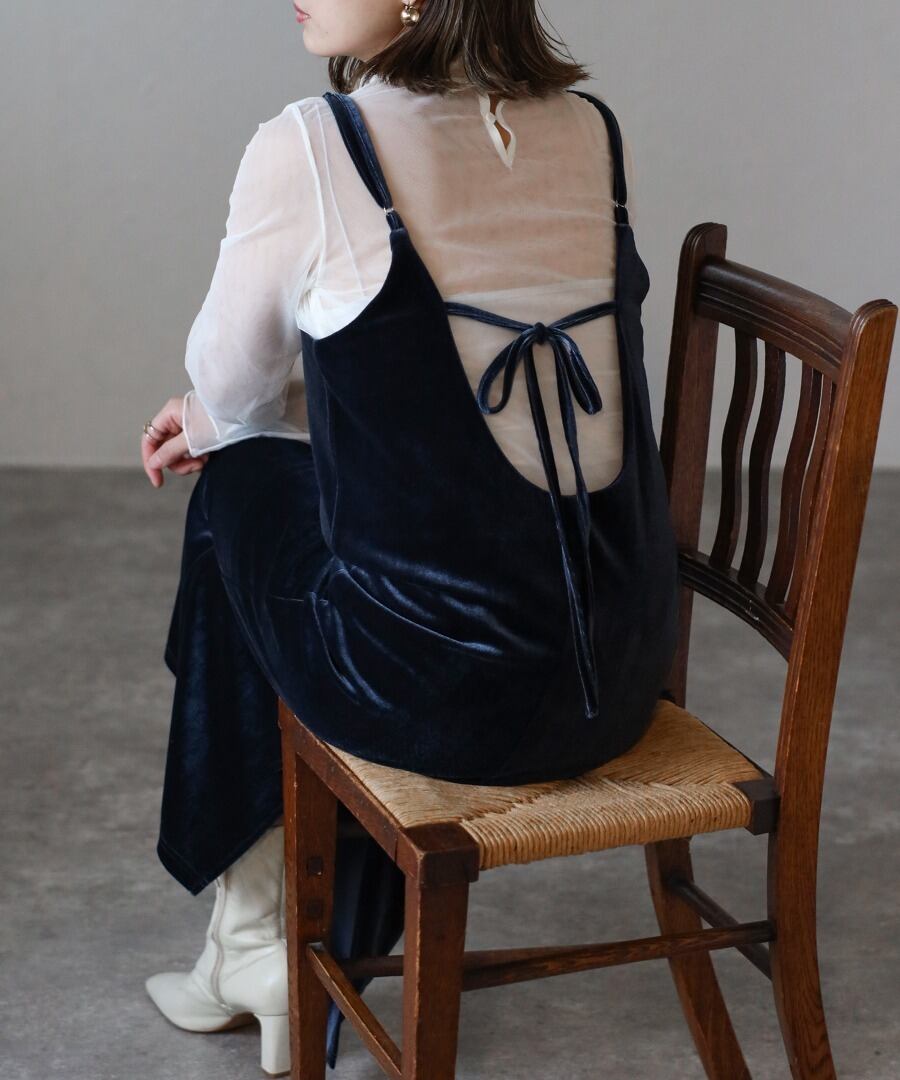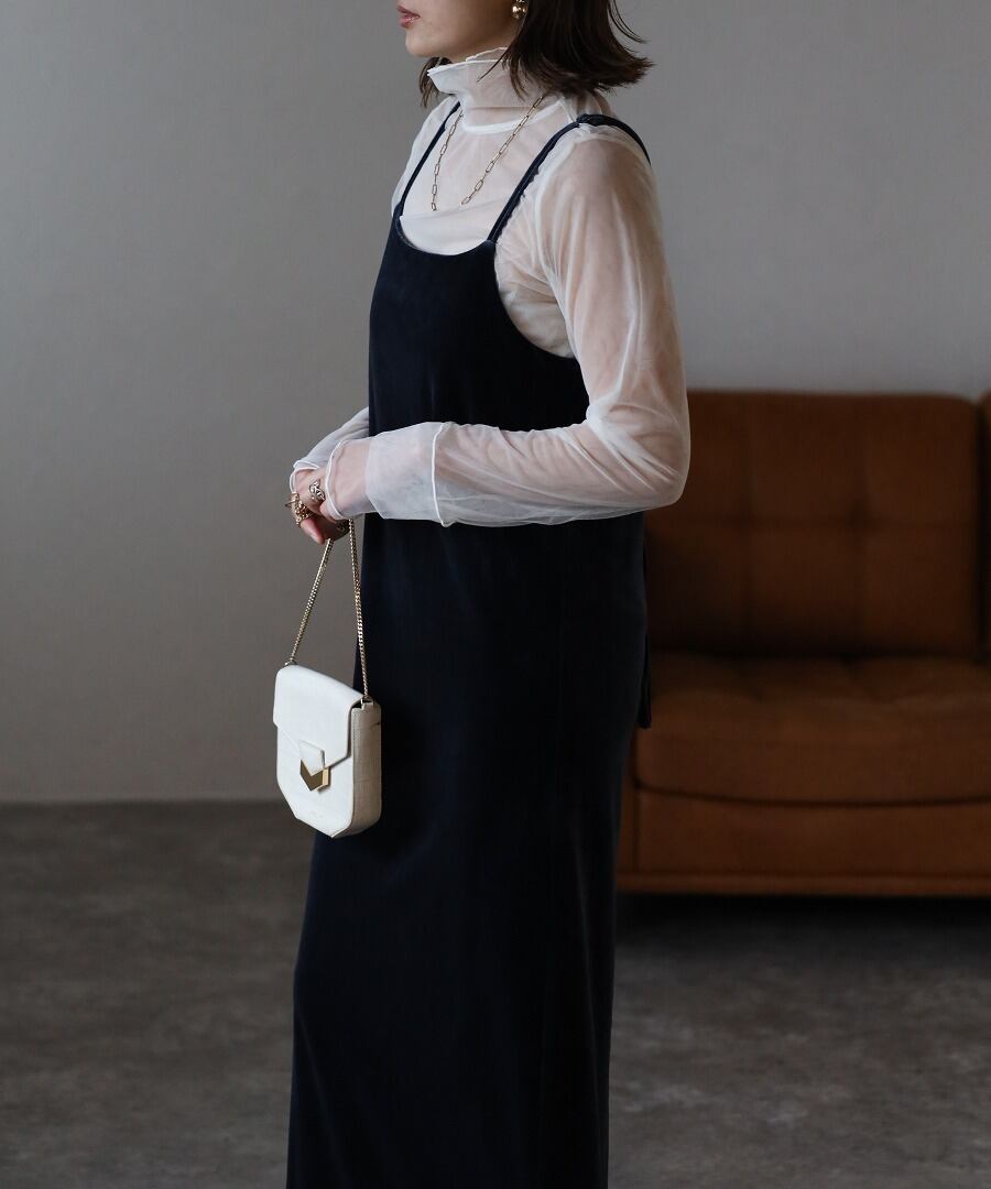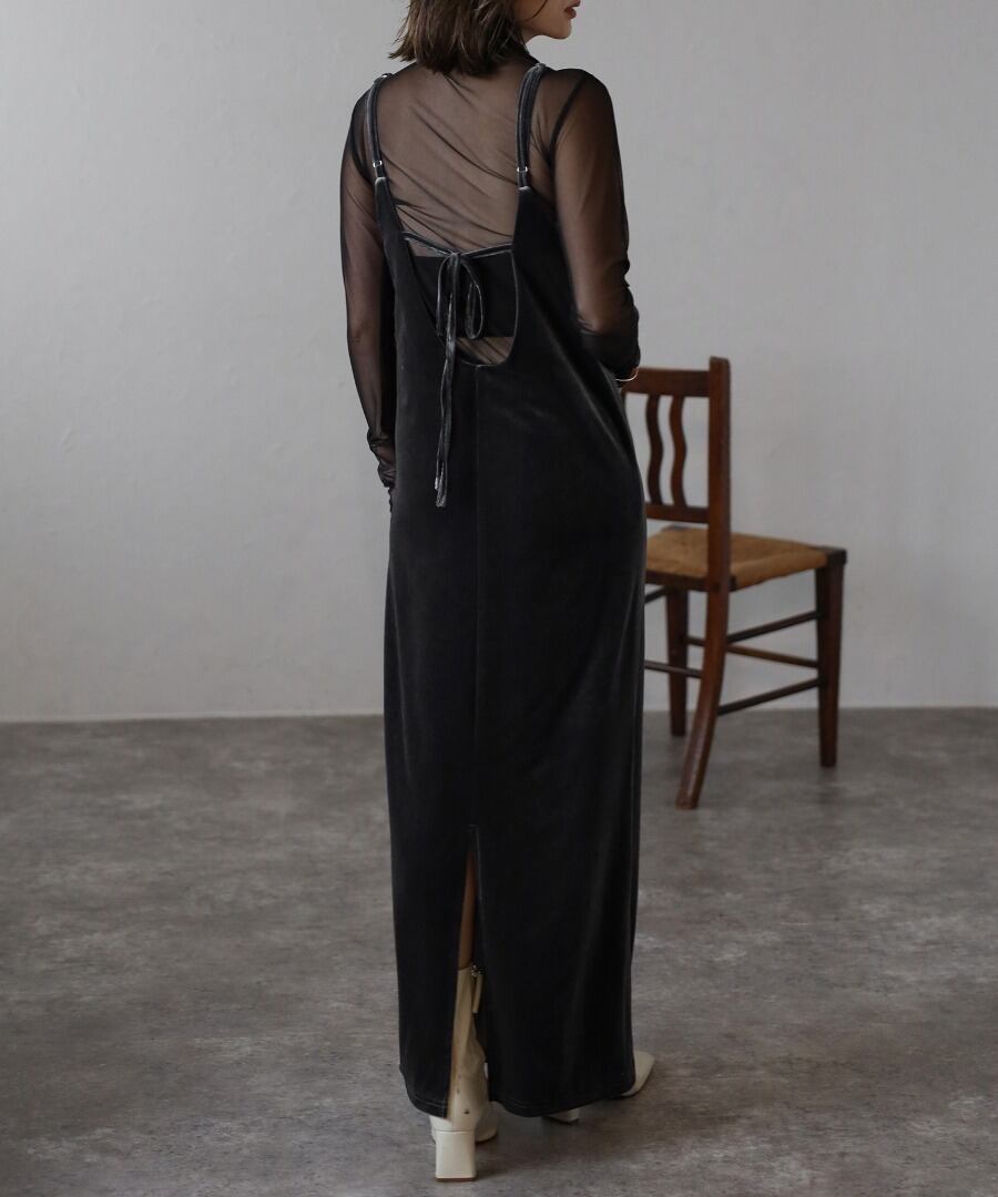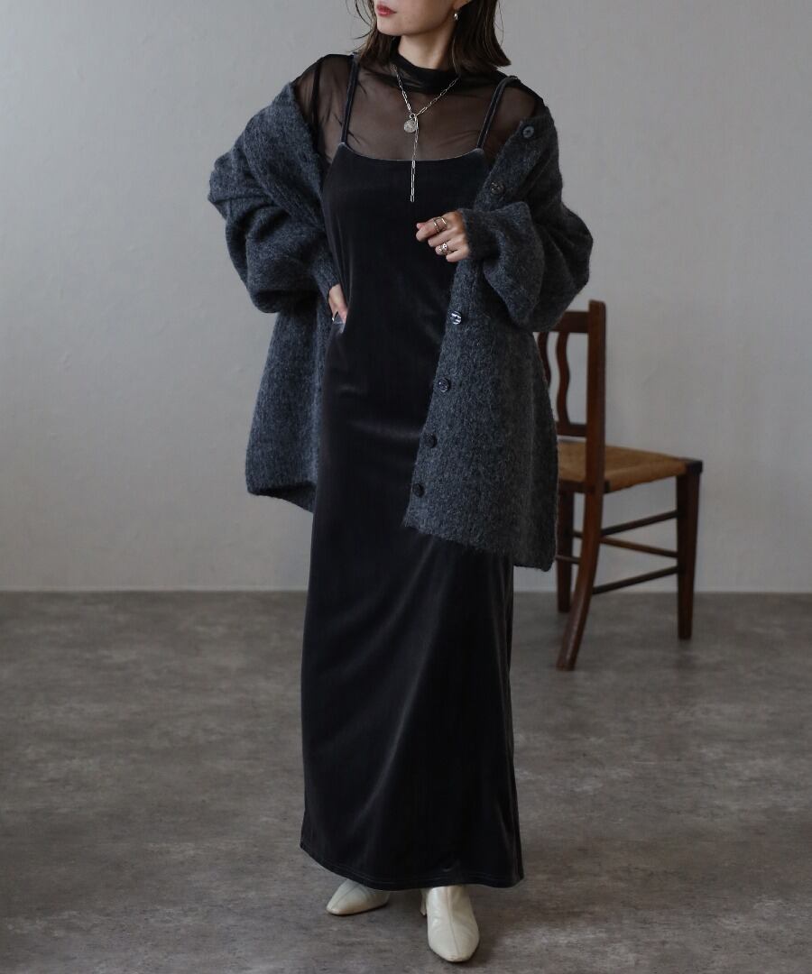 上品な光沢が魅力のベロア素材を使用したキャミワンピース。