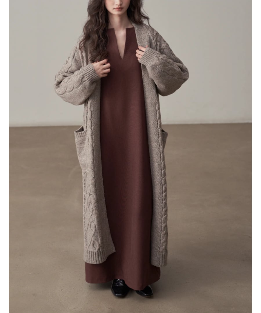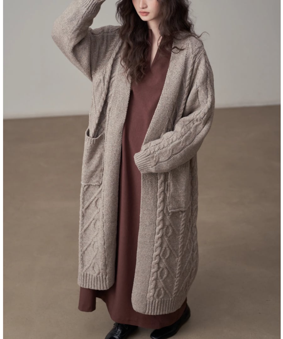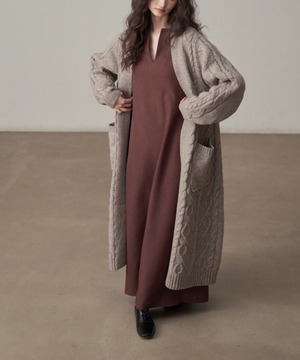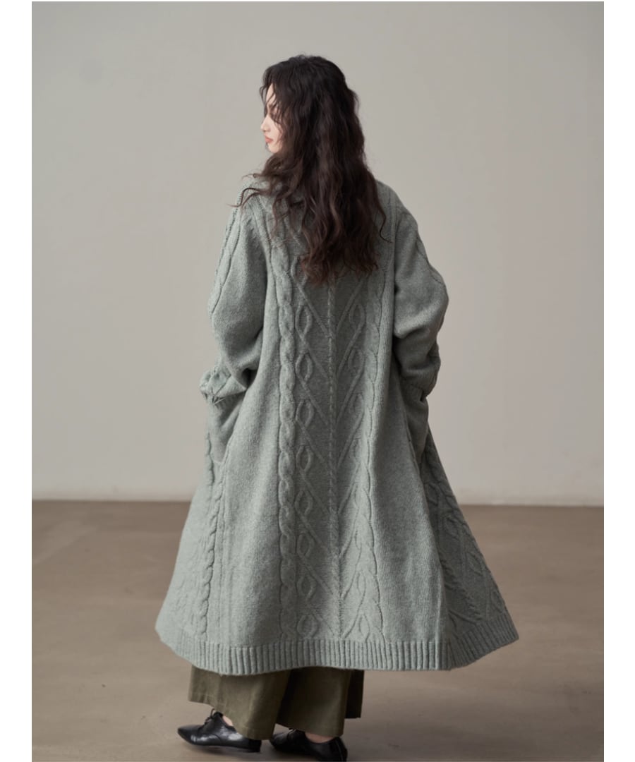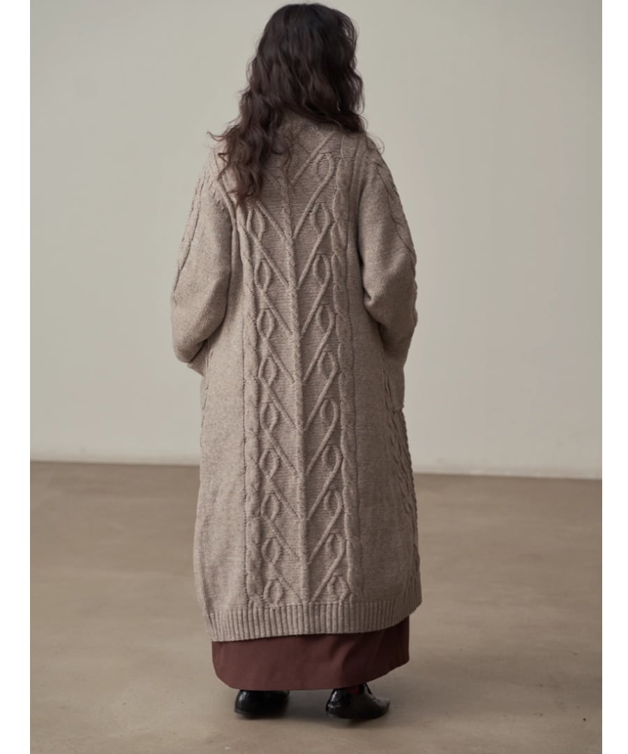 ケーブル編み◆ロングカーデ3Collar【a-50077】