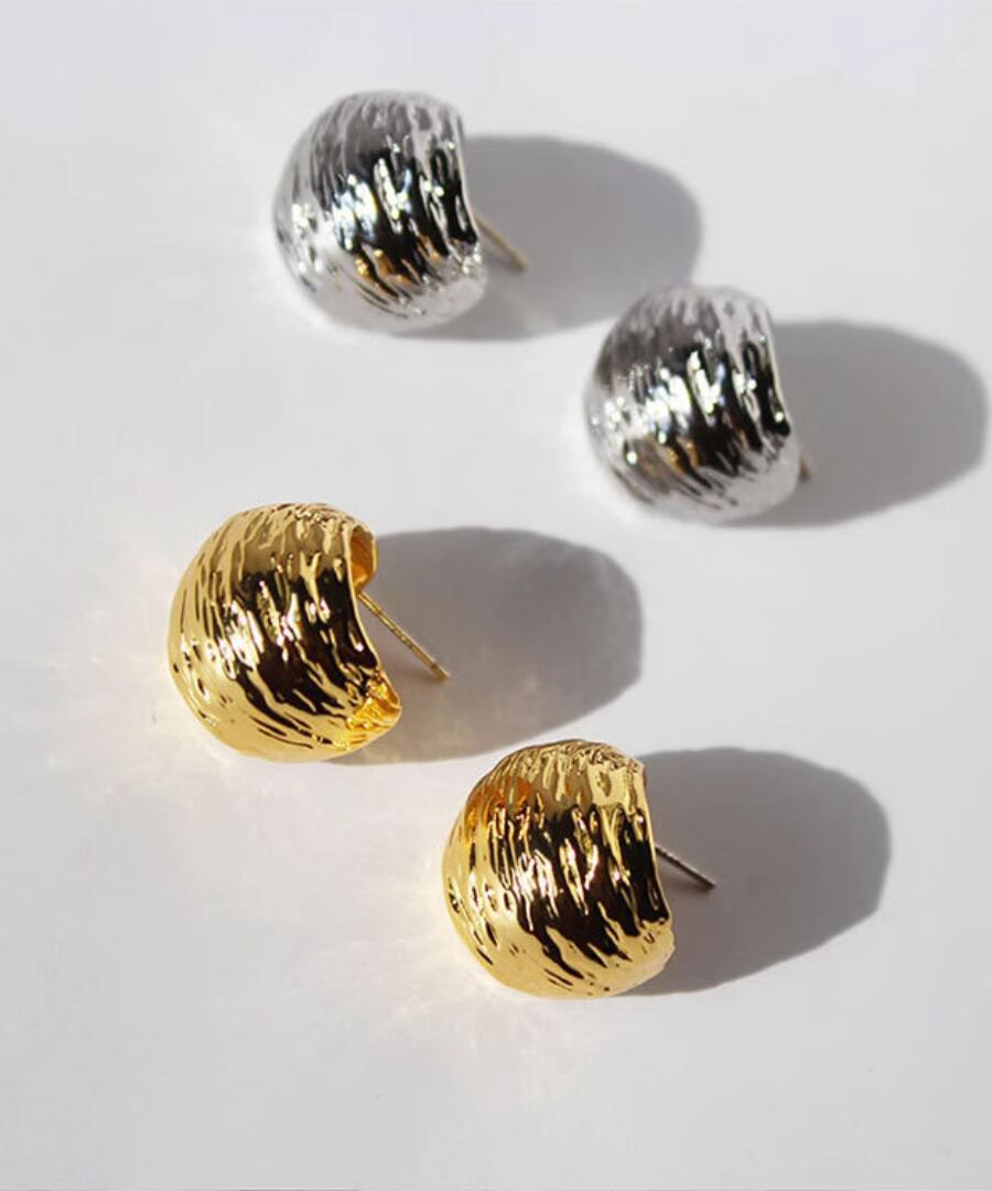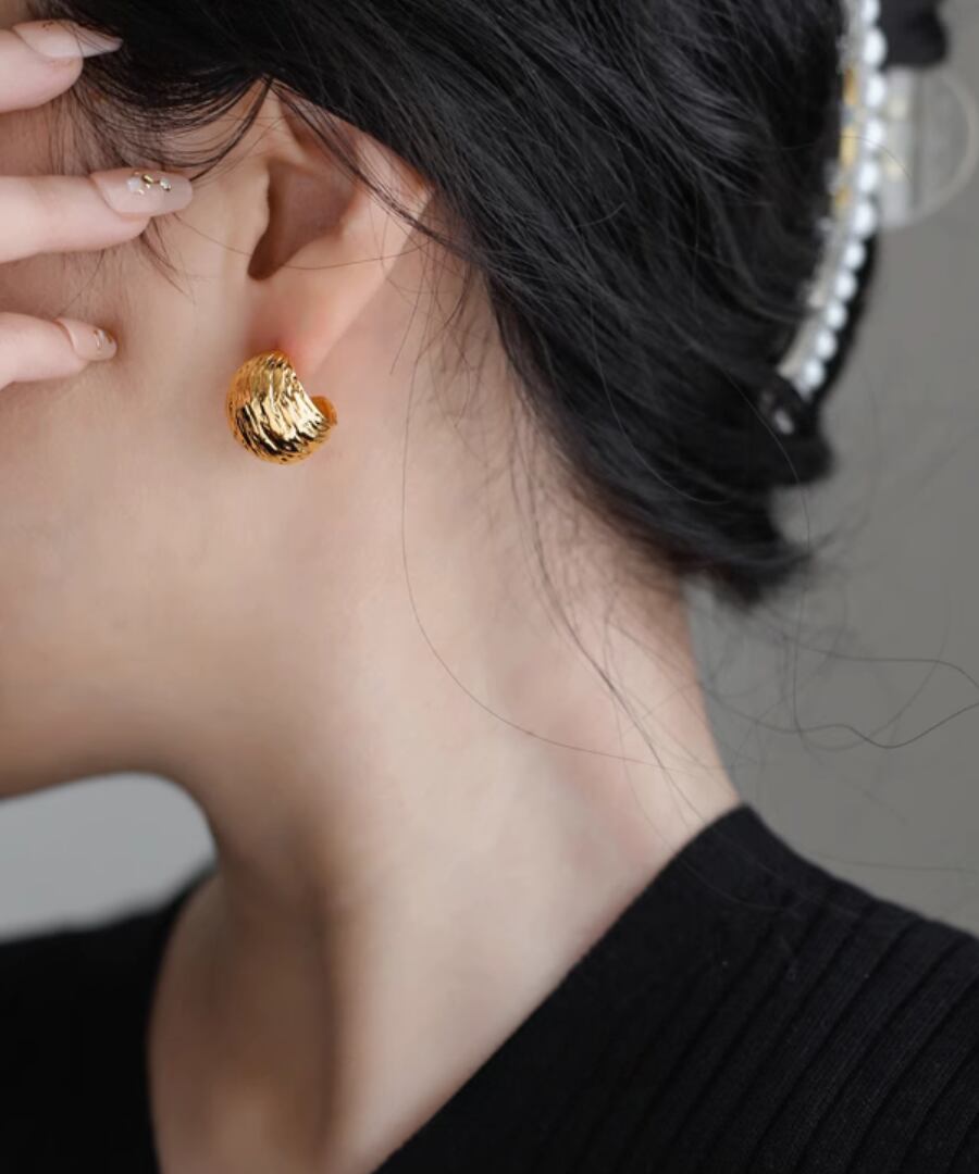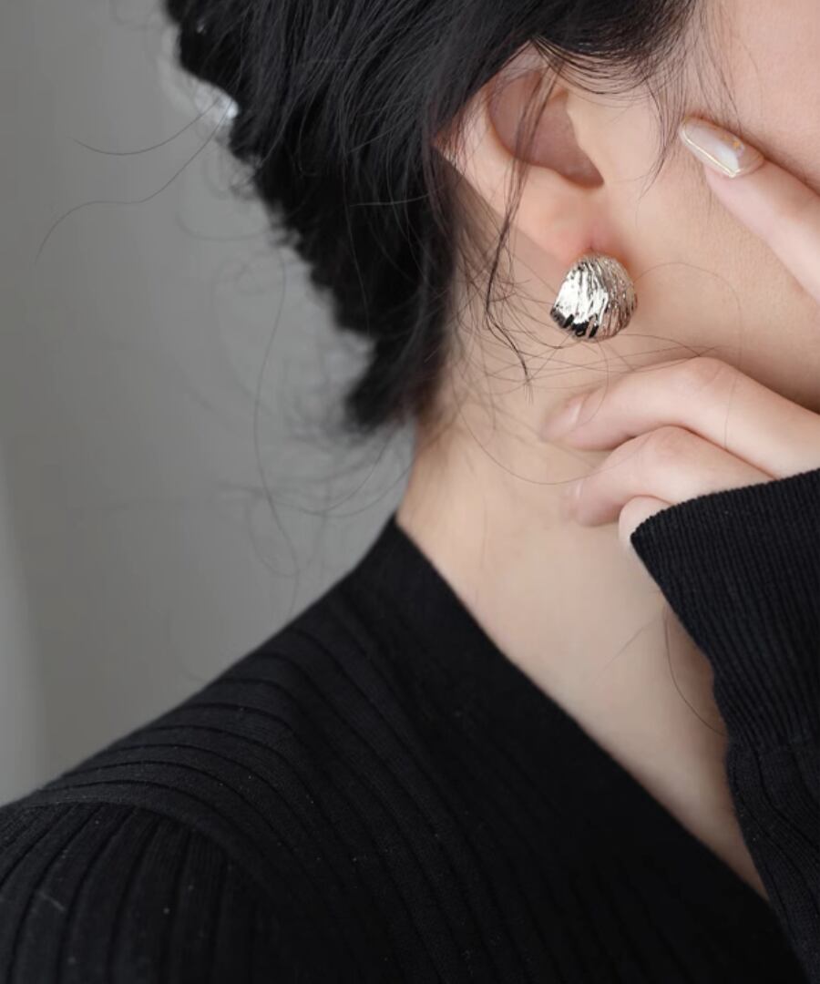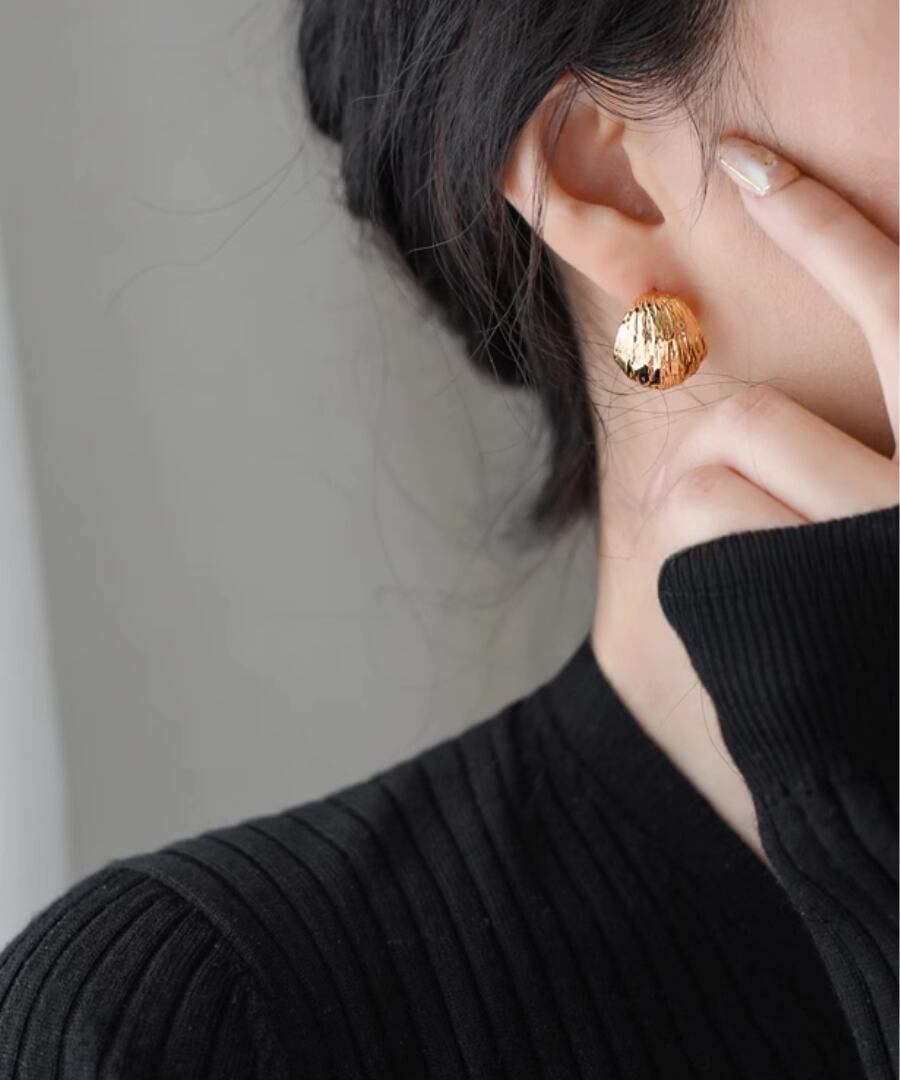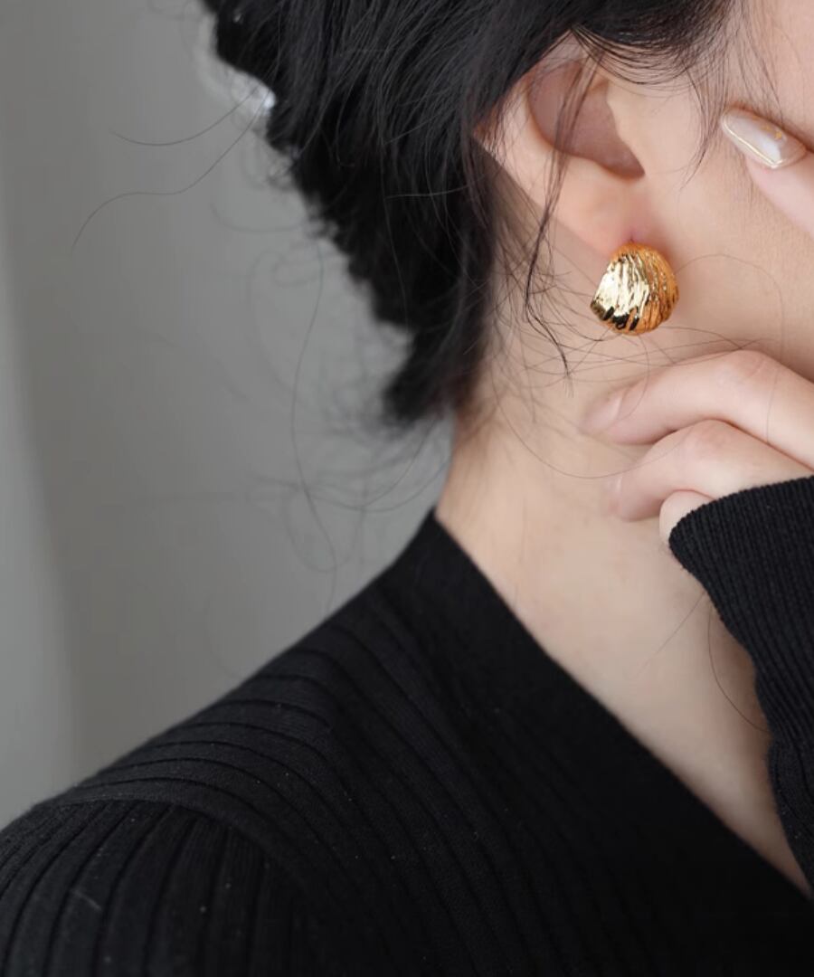 半円形のC字型が施されたスタイリッシュなデザインのピアス。