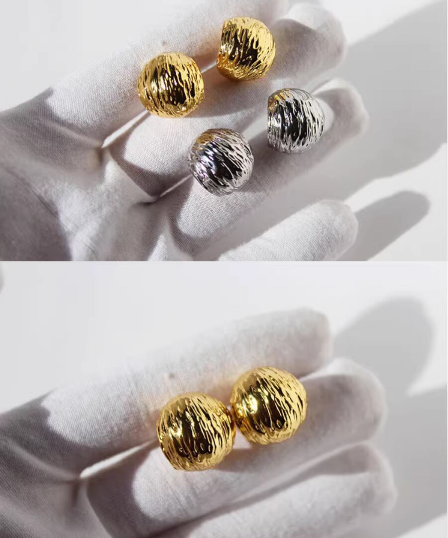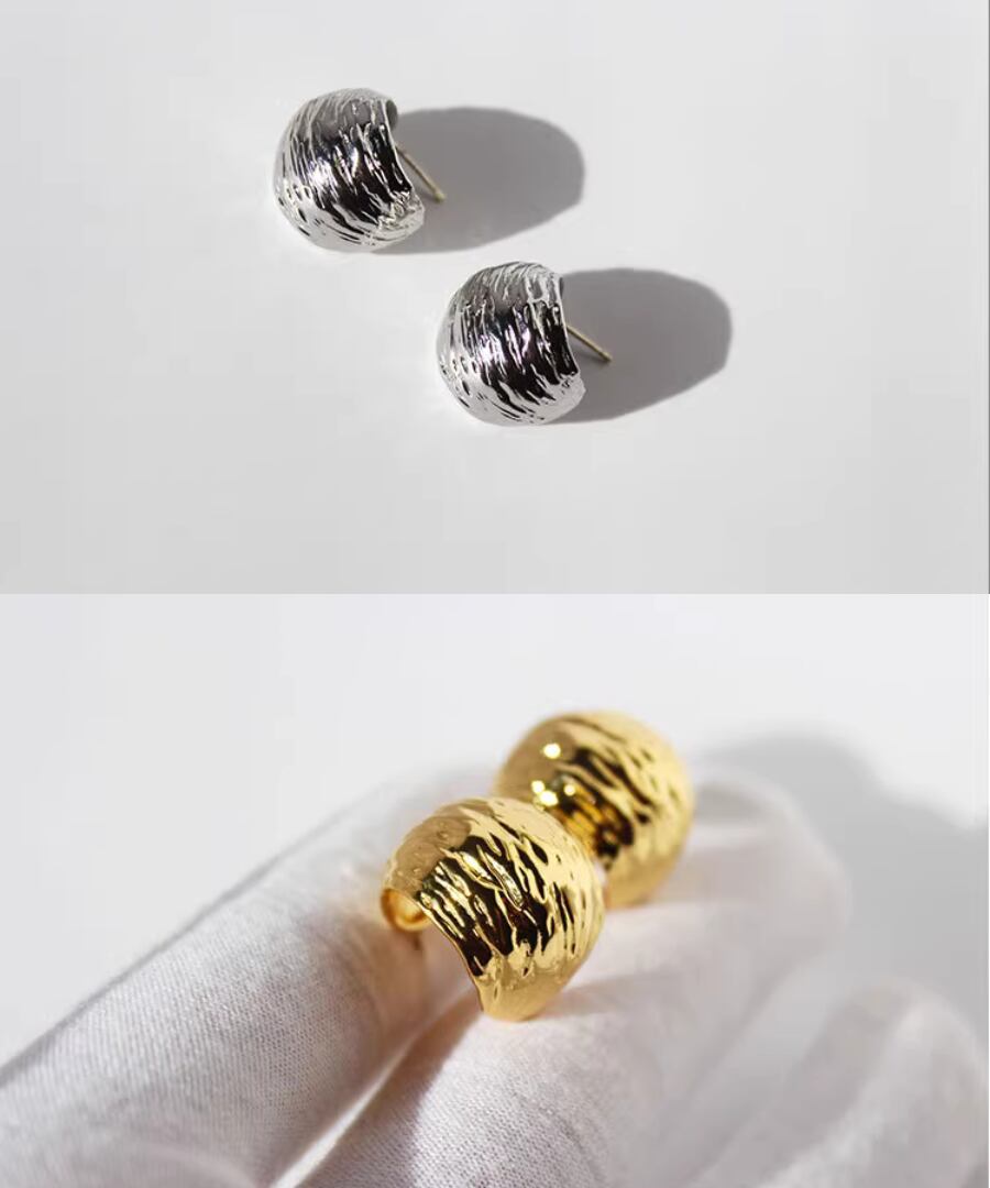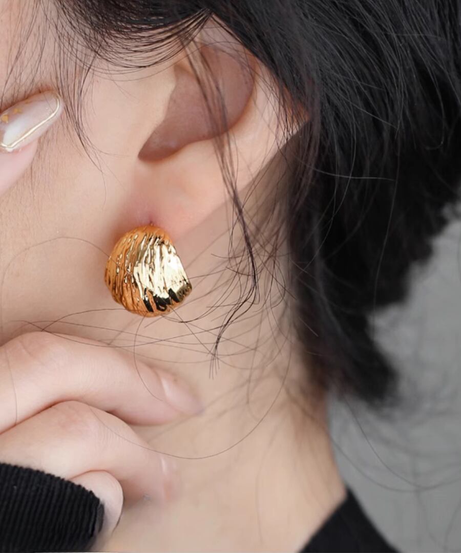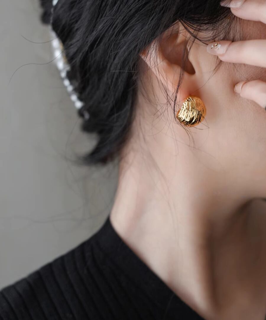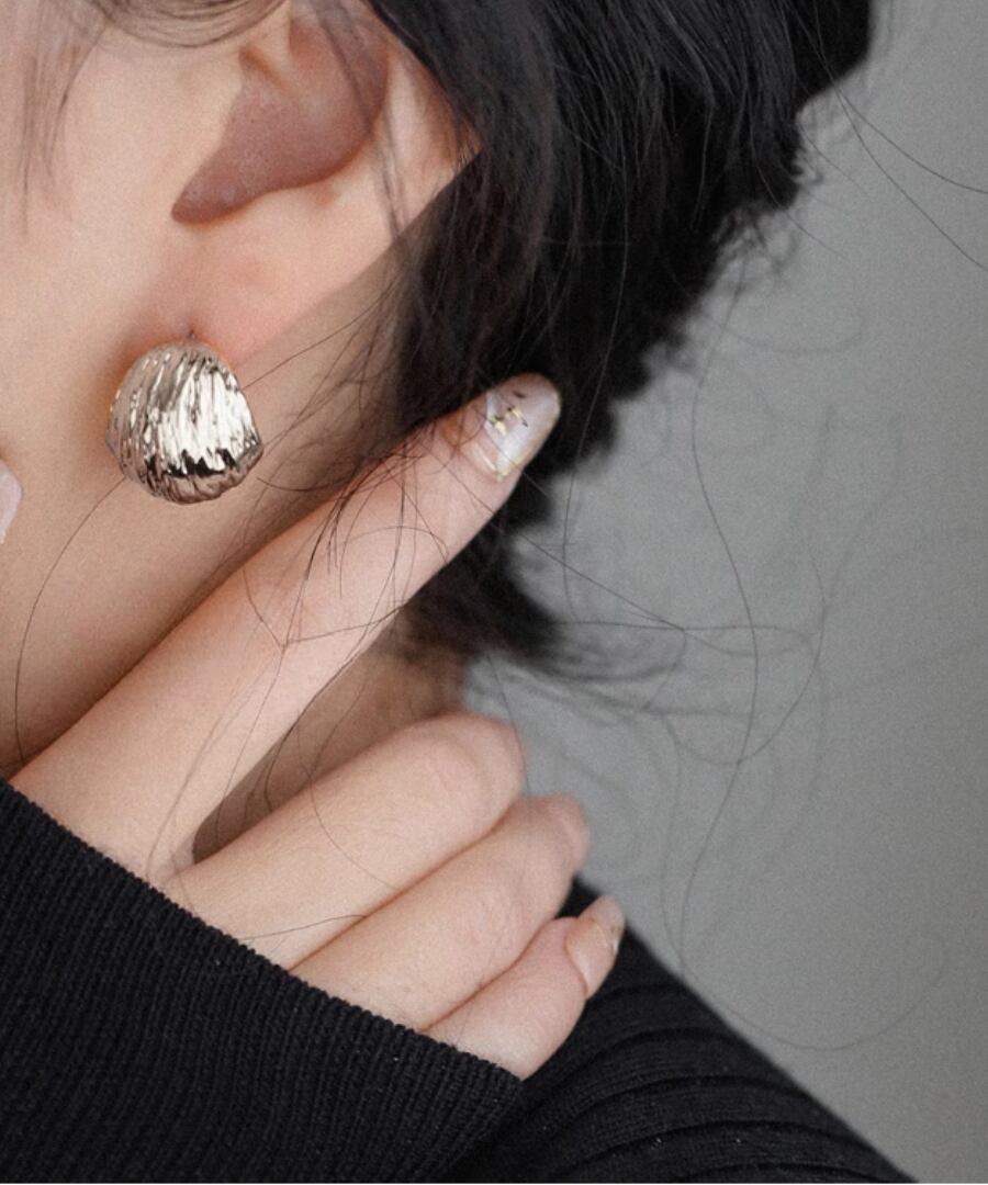半円形のC字型が施されたスタイリッシュなデザインのピアス。
