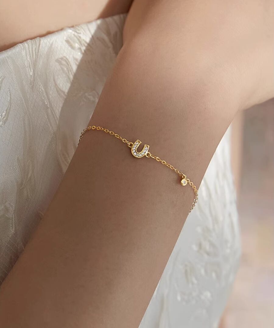 この14K製のブレスレットは、馬蹄の形をモチーフにしており、幸運のシンボルとしても人気です。