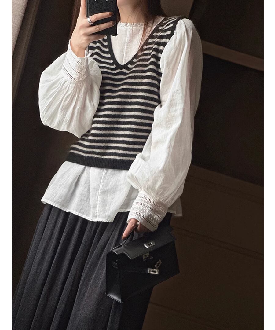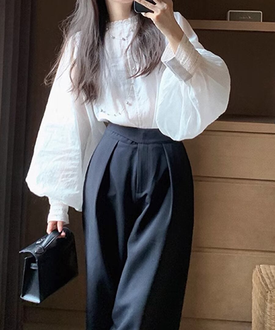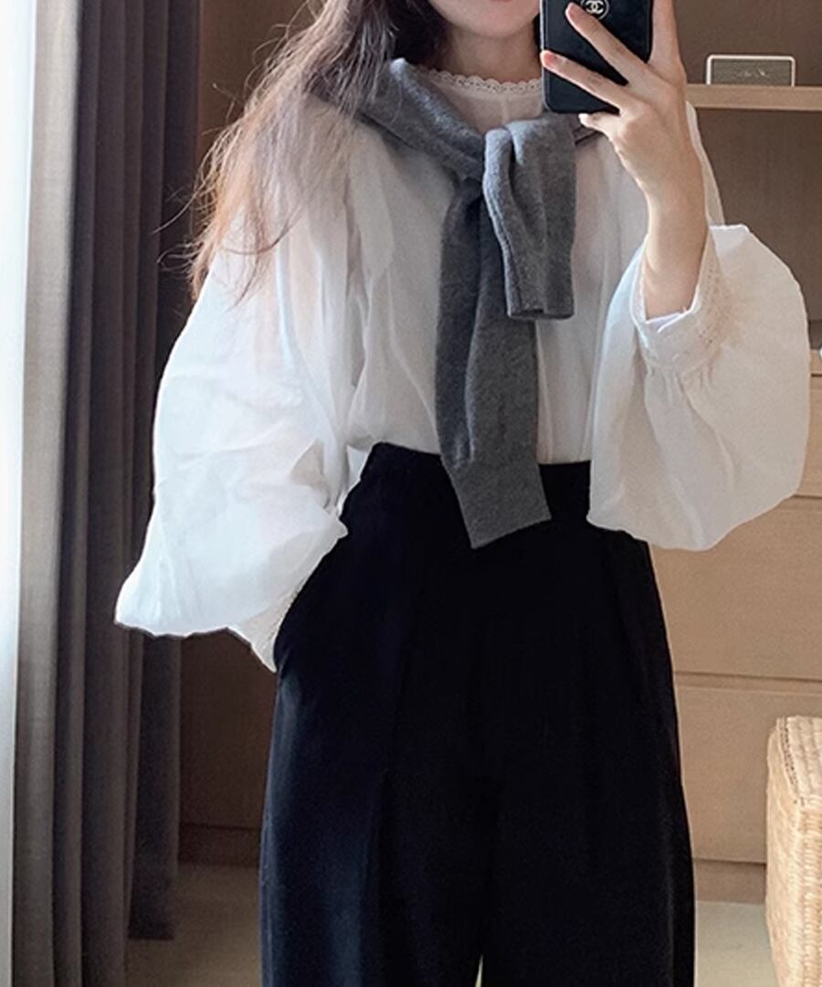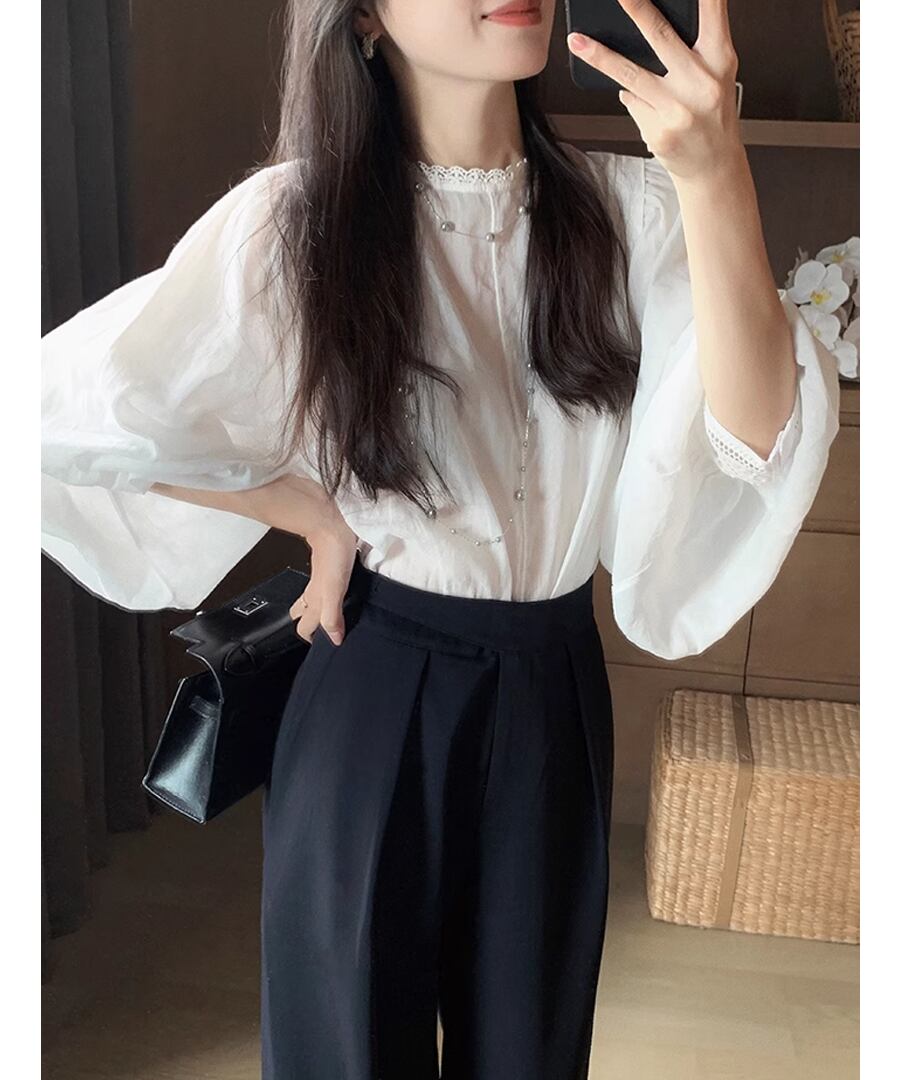 クラウドコットン◆ランタンスリーブプルオーバーシャツ【t-10157】