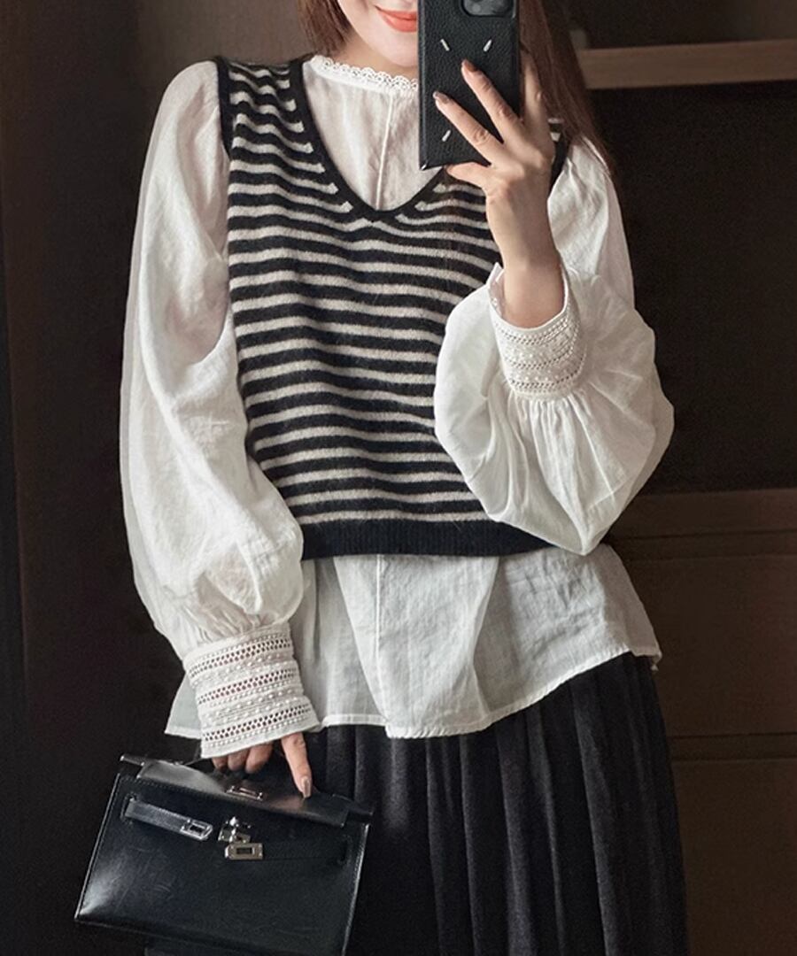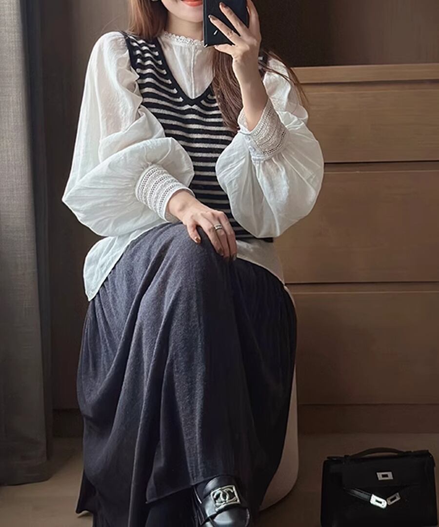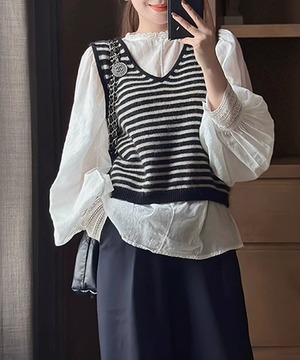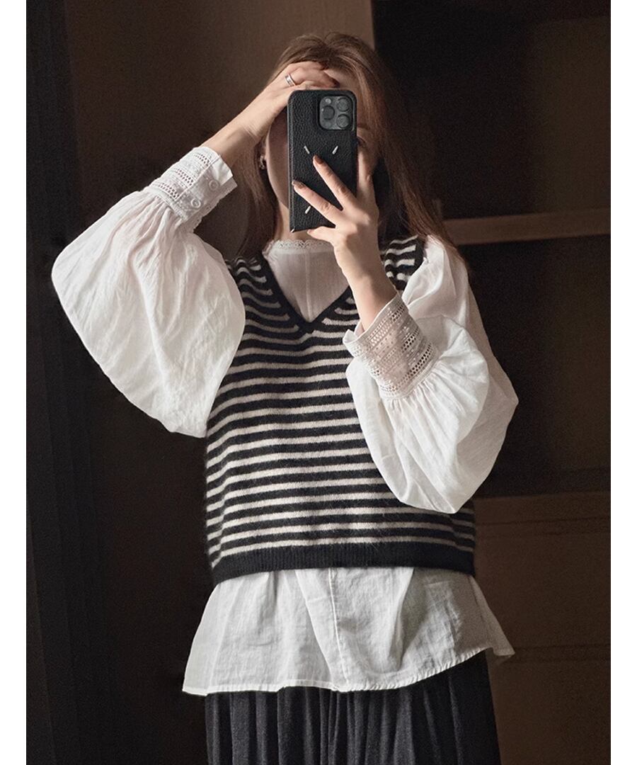 クラウドコットン◆ランタンスリーブプルオーバーシャツ【t-10157】