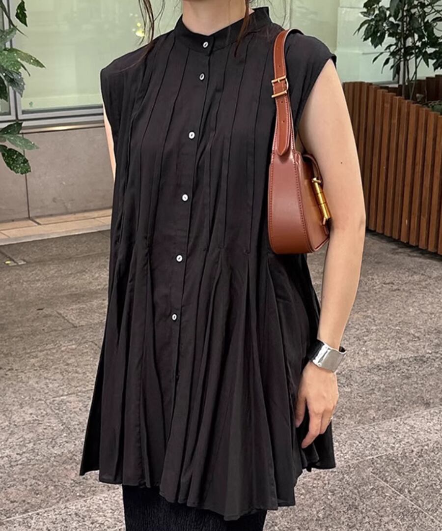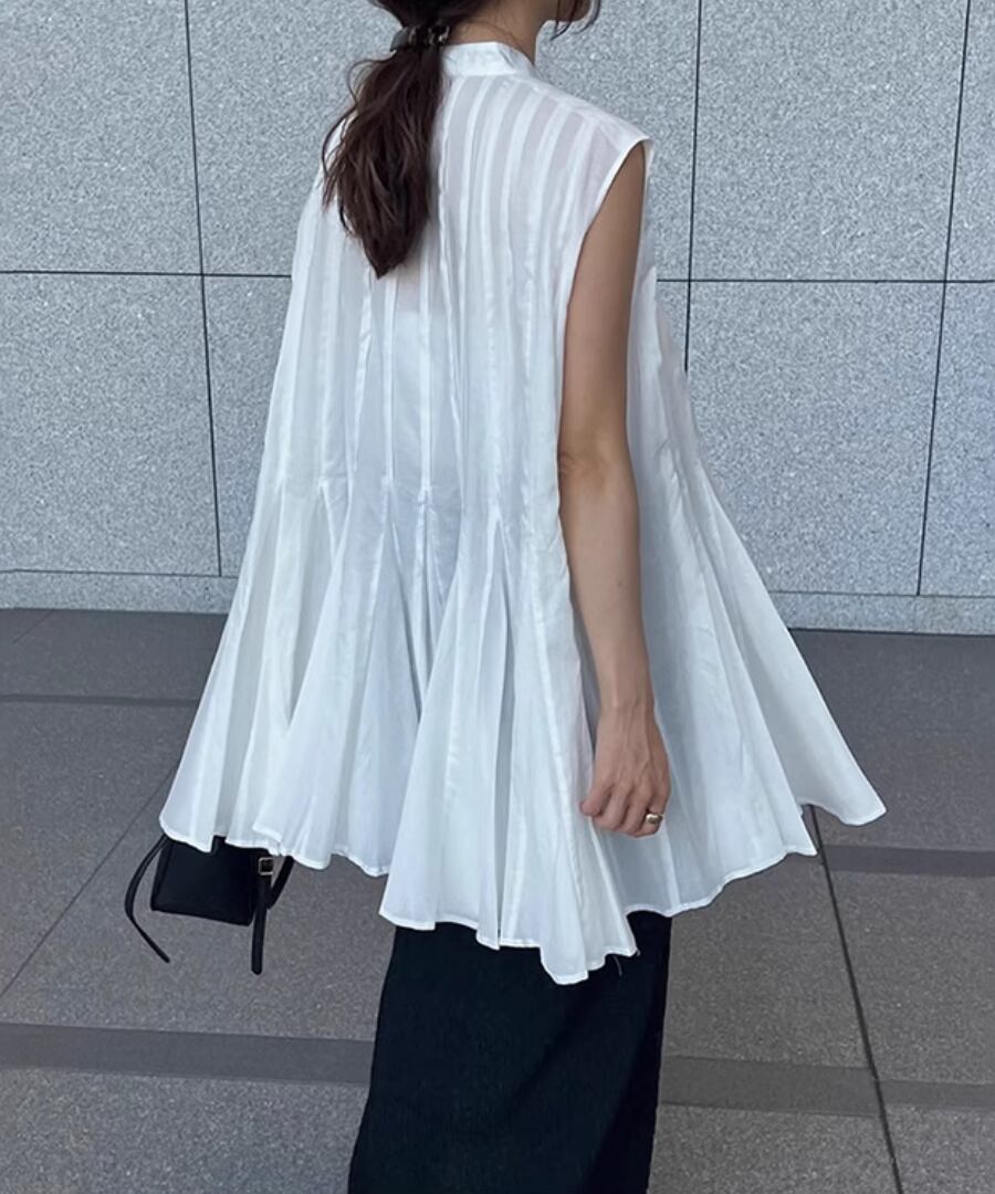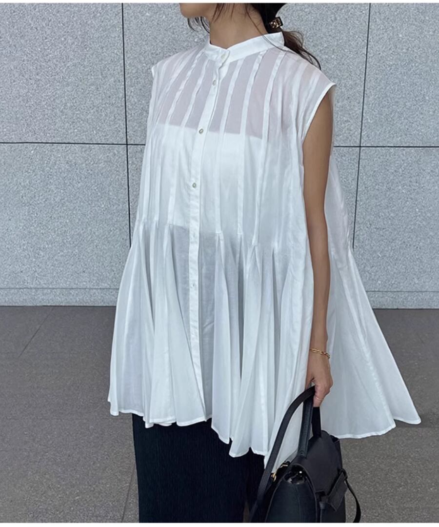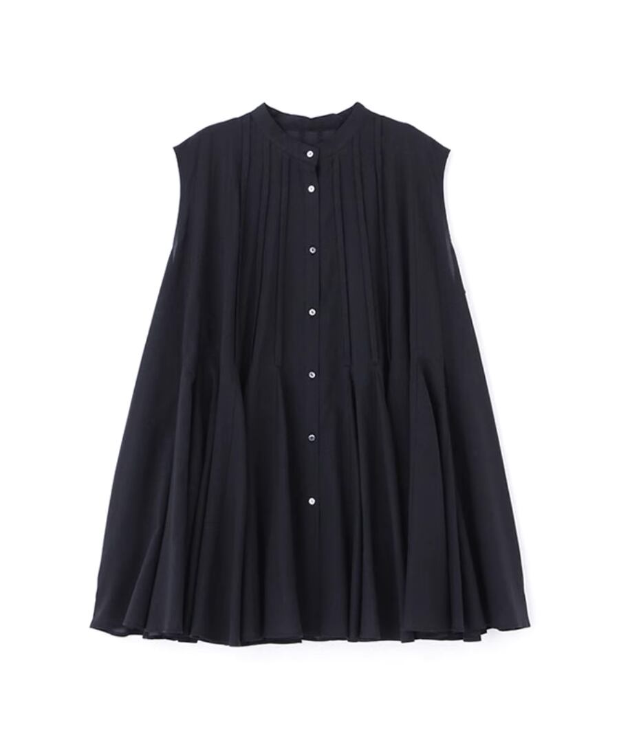ノースリーブ◆プリーツスタンドカラーシャツ【t-10968】