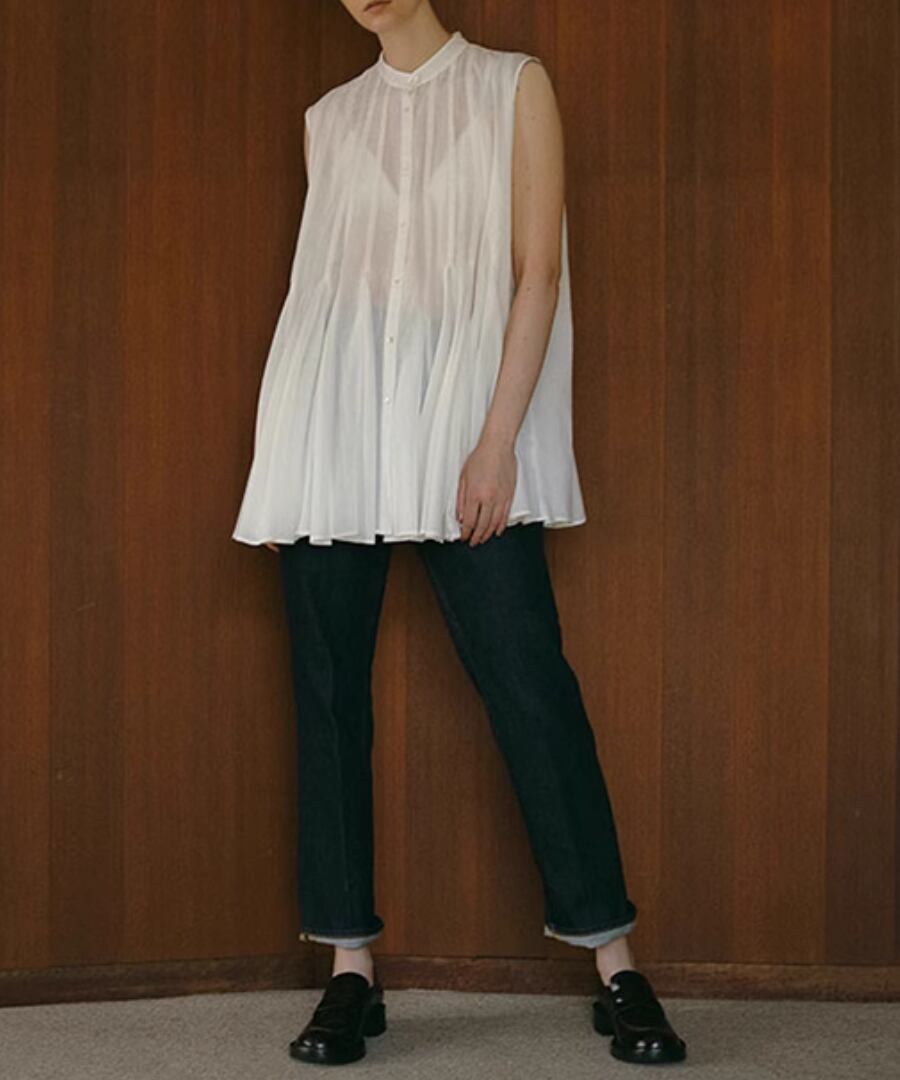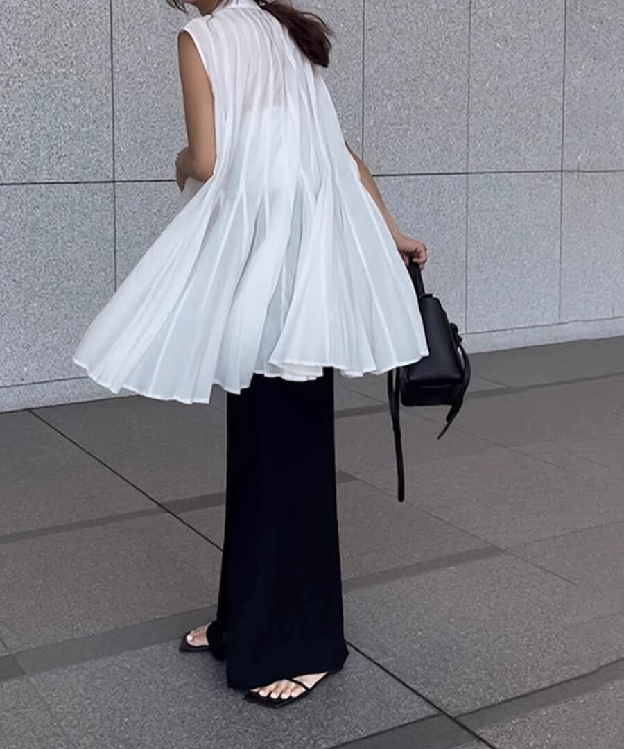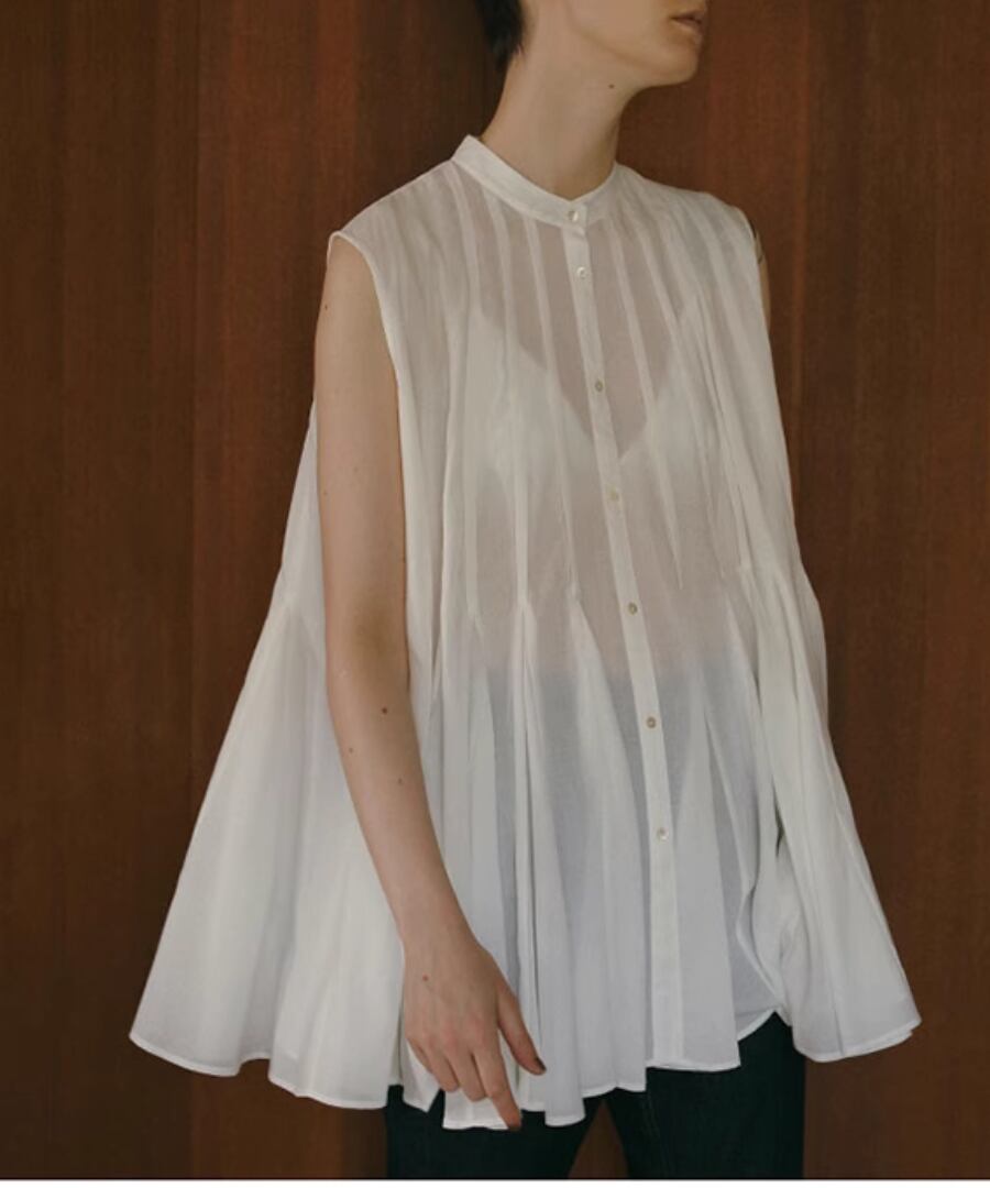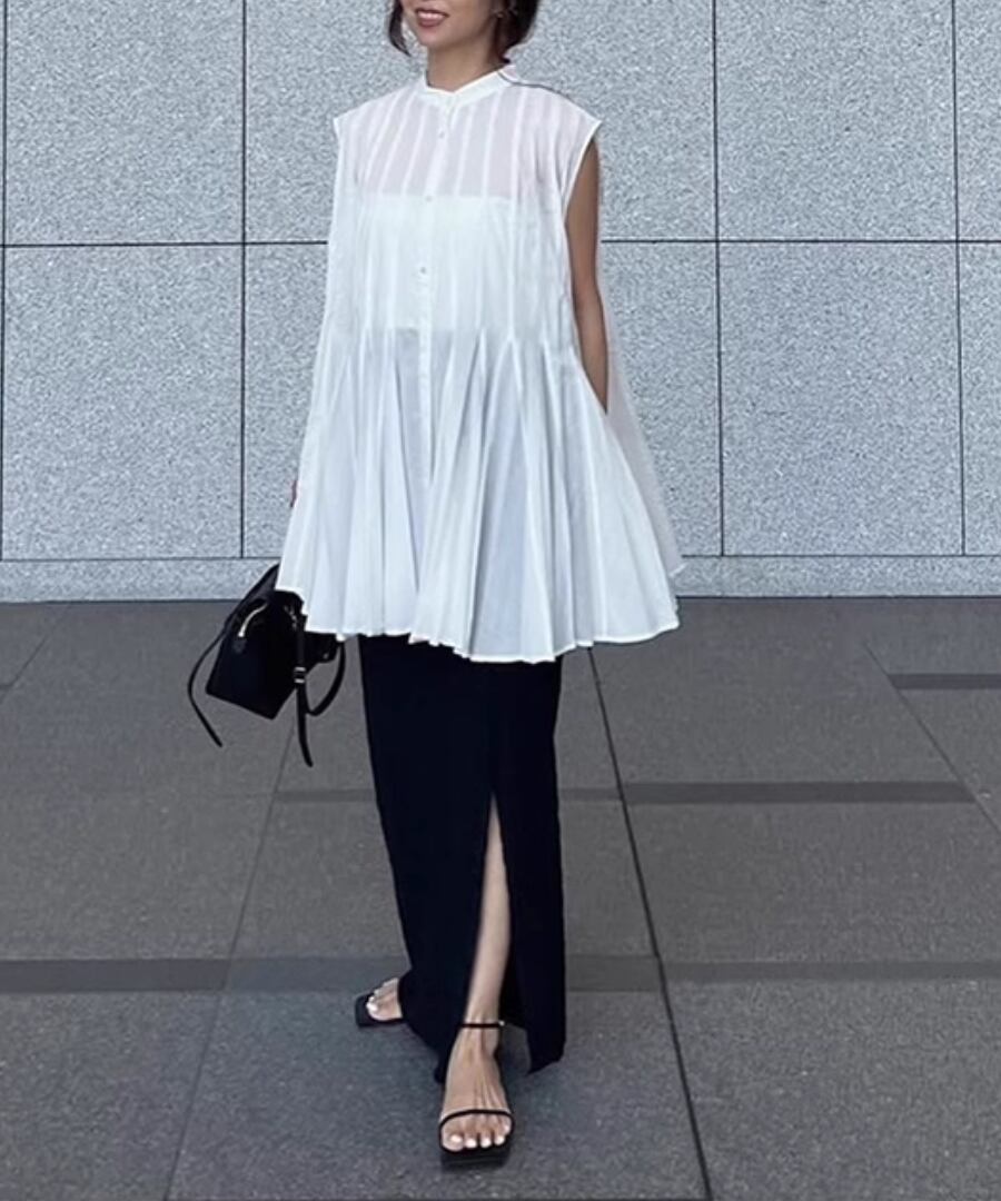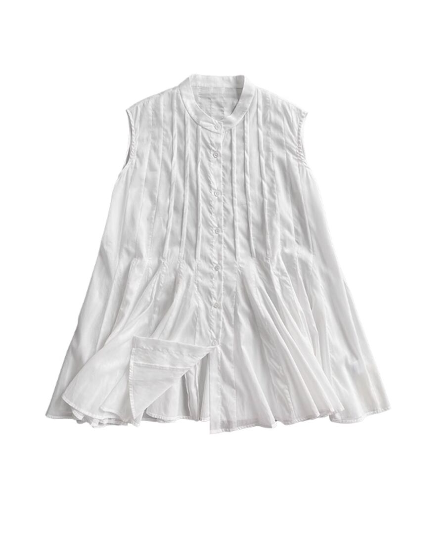 ノースリーブ◆プリーツスタンドカラーシャツ【t-10968】