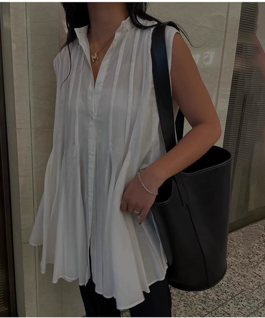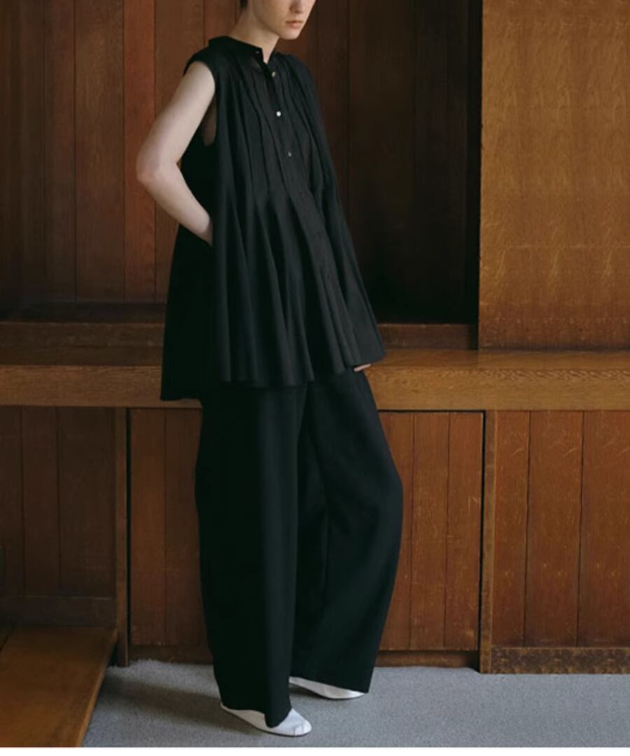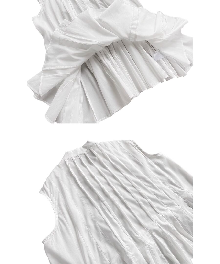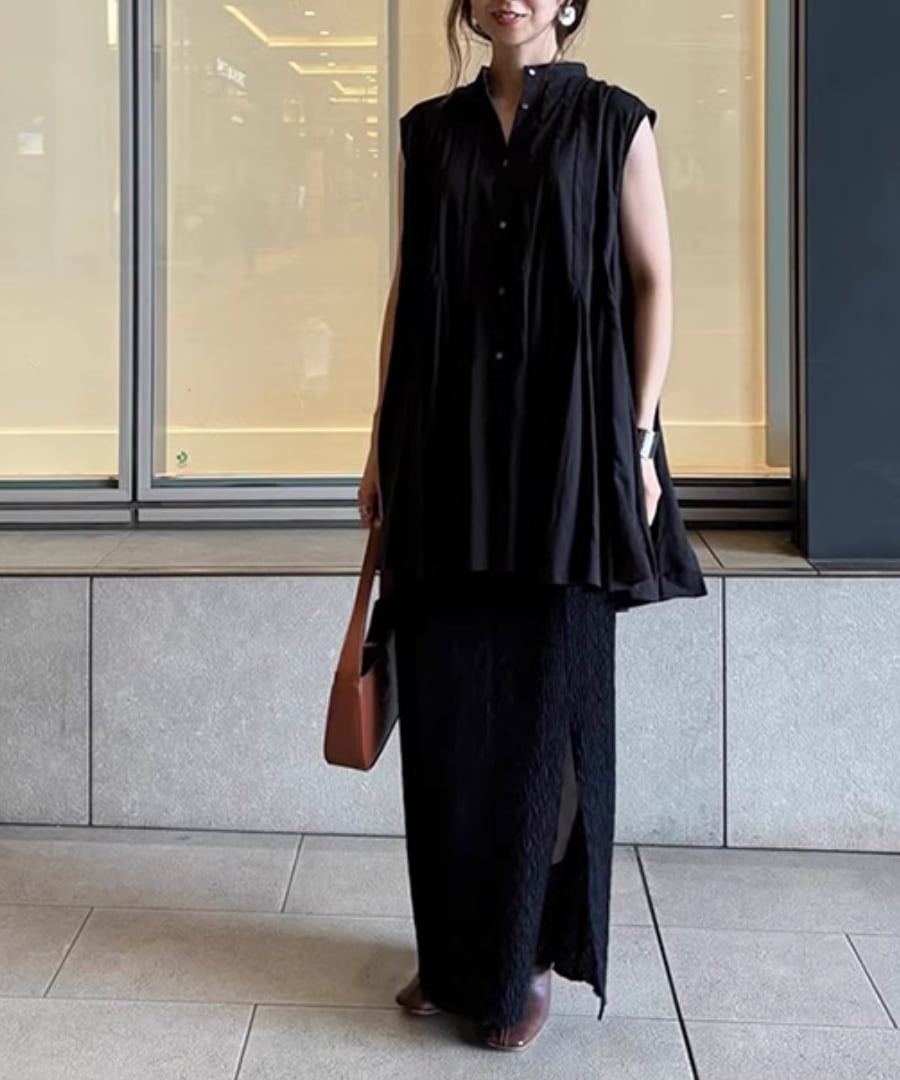 ノースリーブ◆プリーツスタンドカラーシャツ【t-10968】