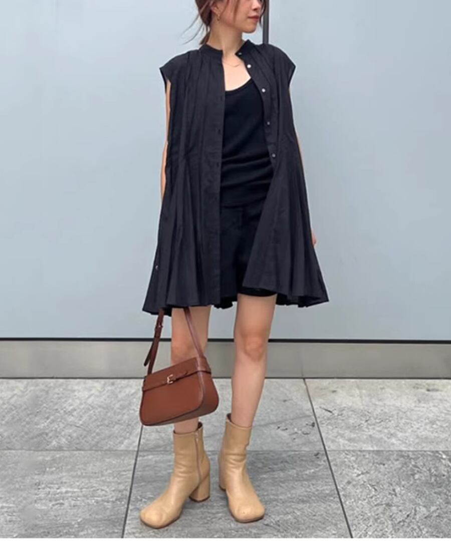 さっぱりとしたノースリーブデザインは、夏にぴったりな一枚でありながら、重ね着にも最適です。
