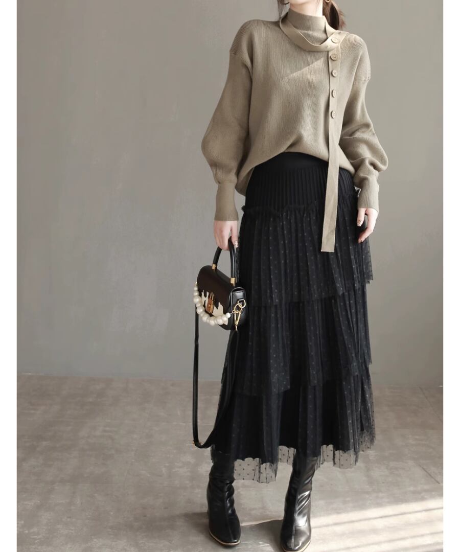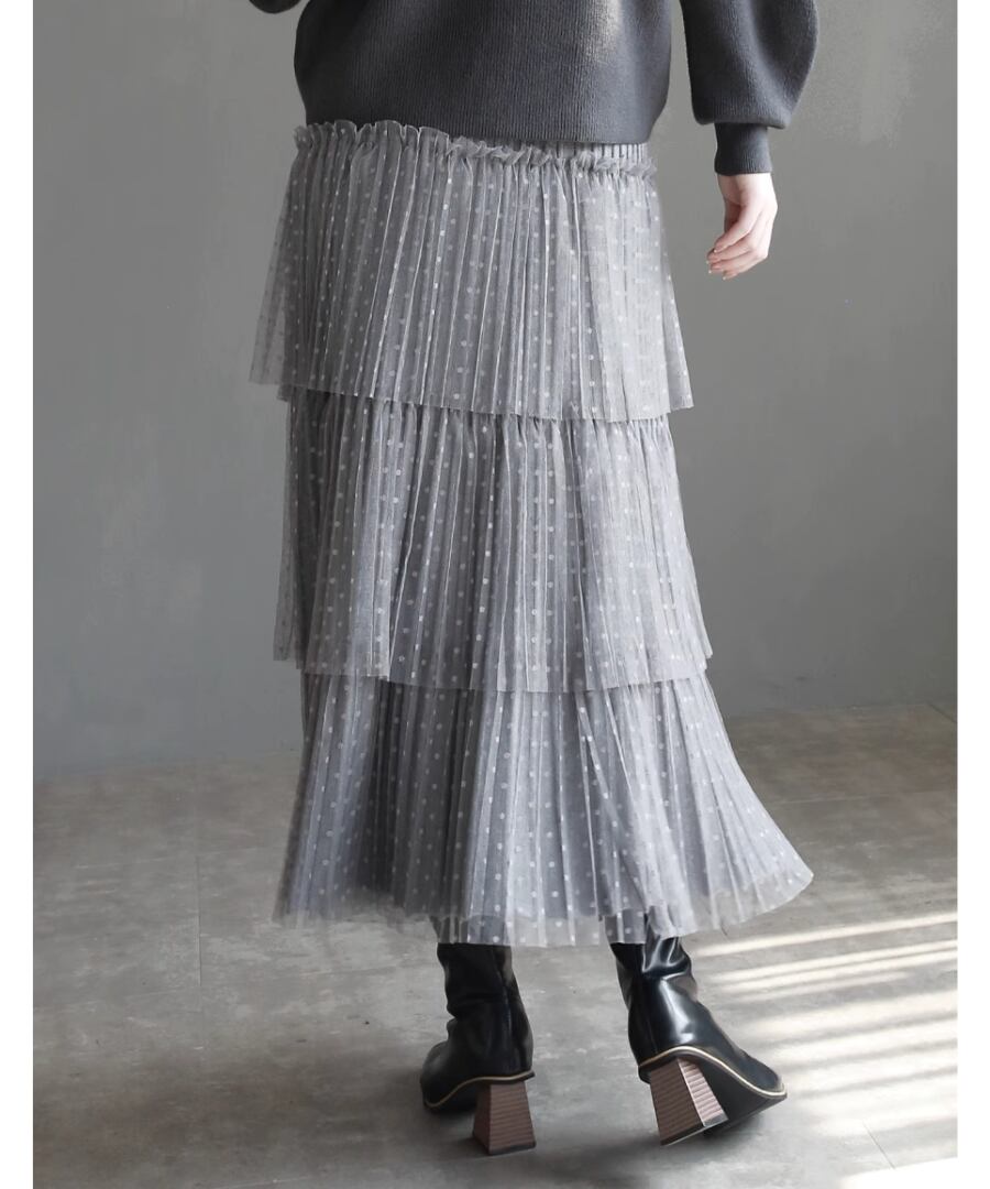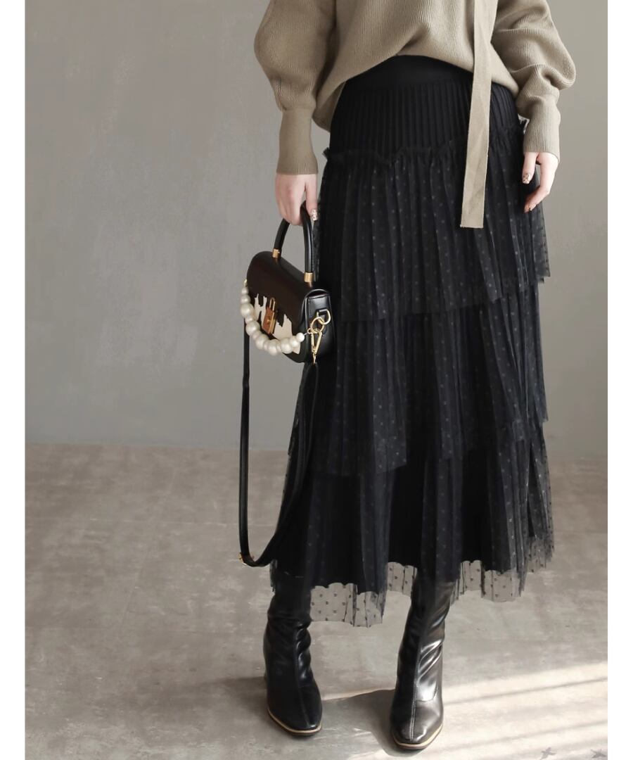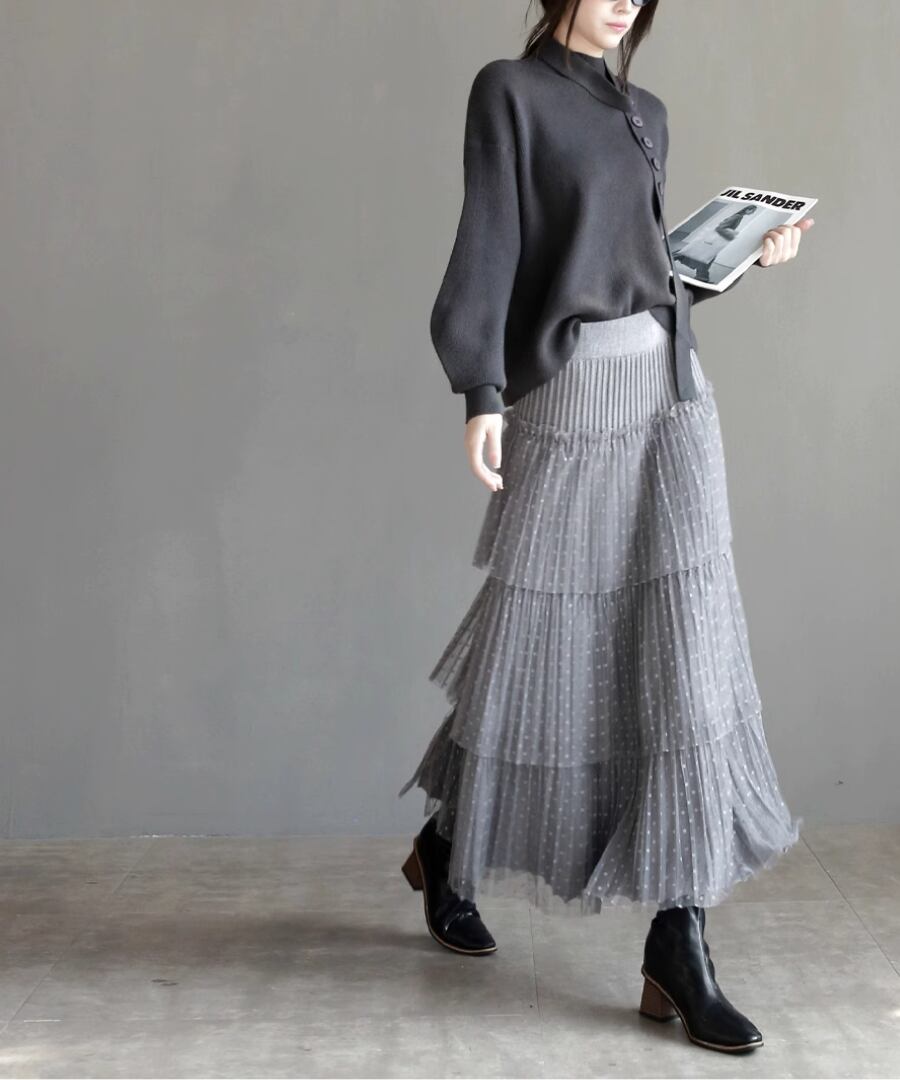 軽やかなプリーツと柔らかなニット素材が、動きに合わせて優雅に揺れ、さまざまなシーンでの活躍が期待できます。