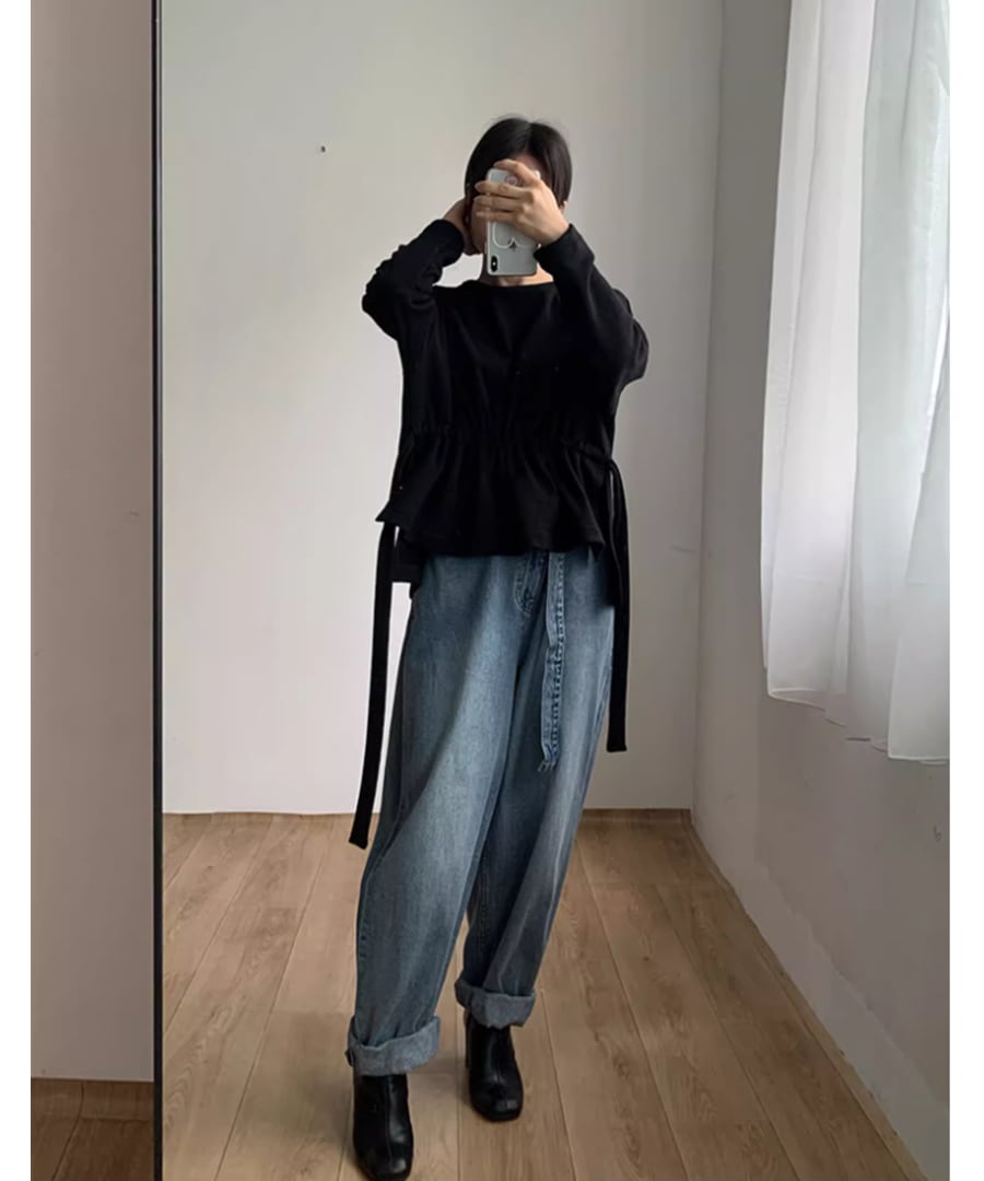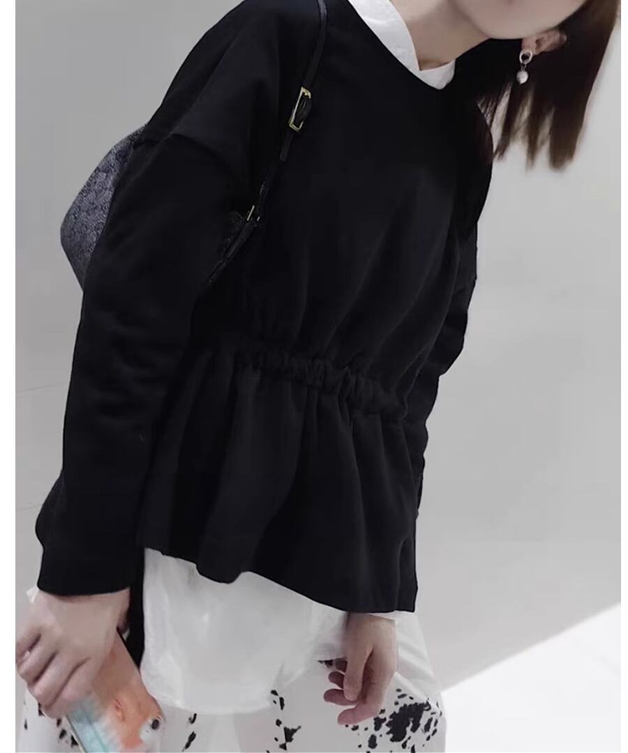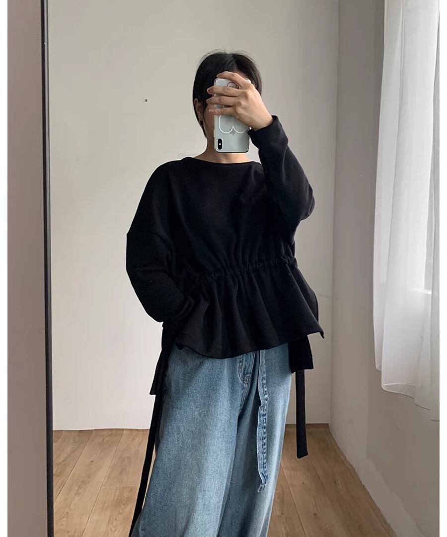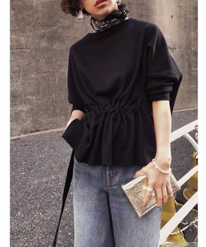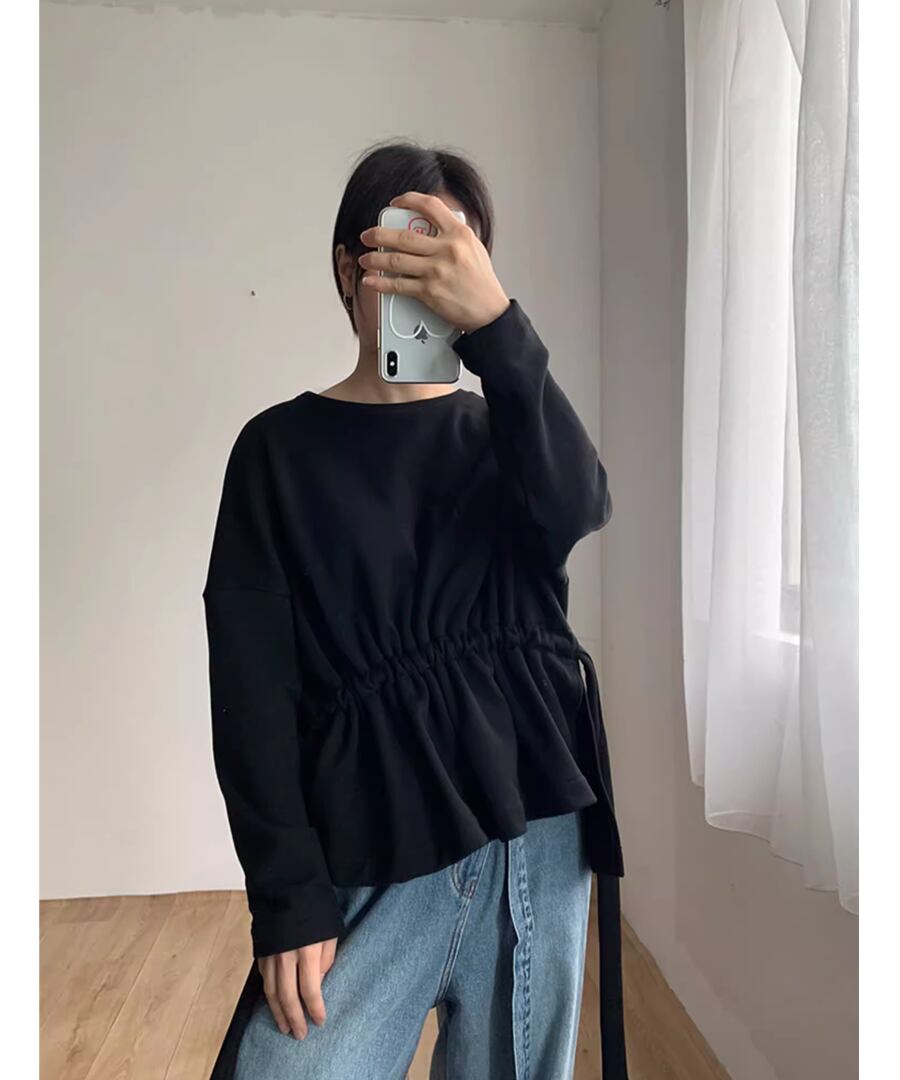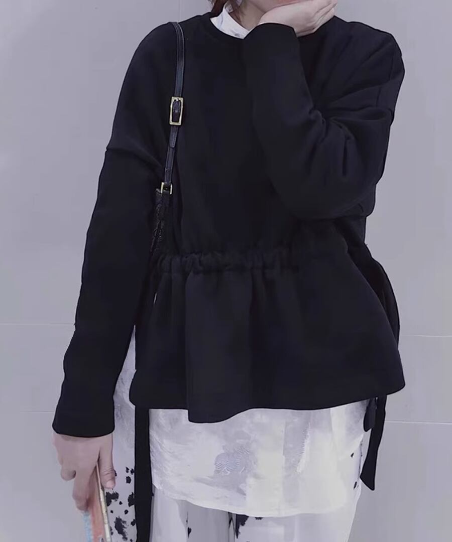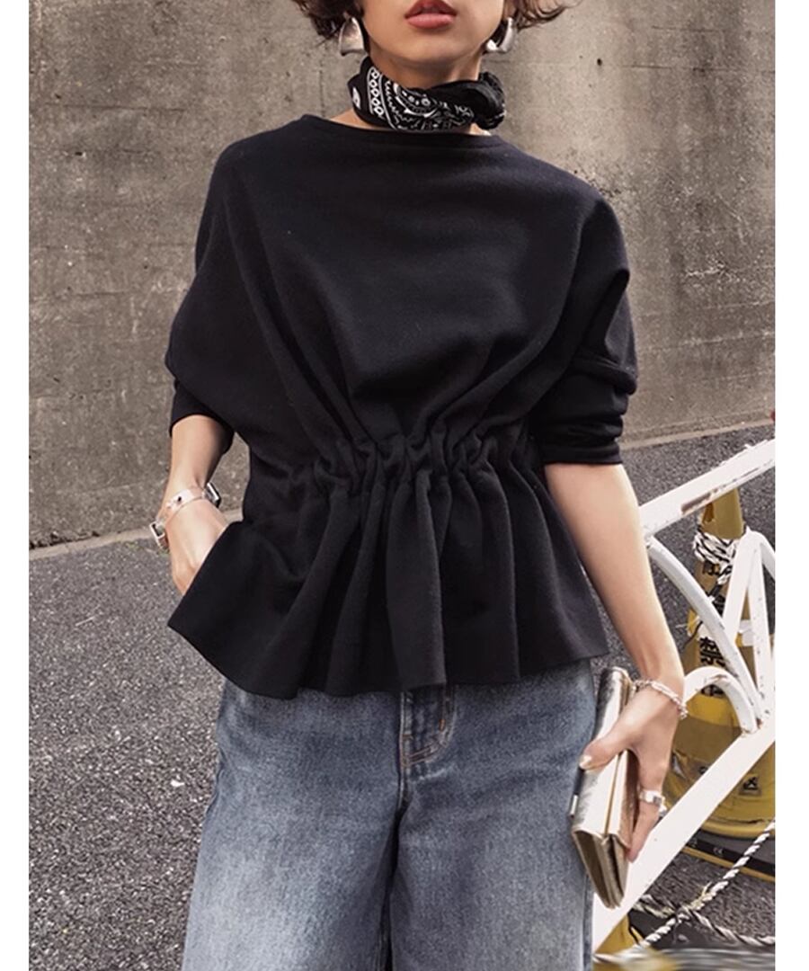 ウエストを細見えさせるデザインが魅力のスエットトップス。